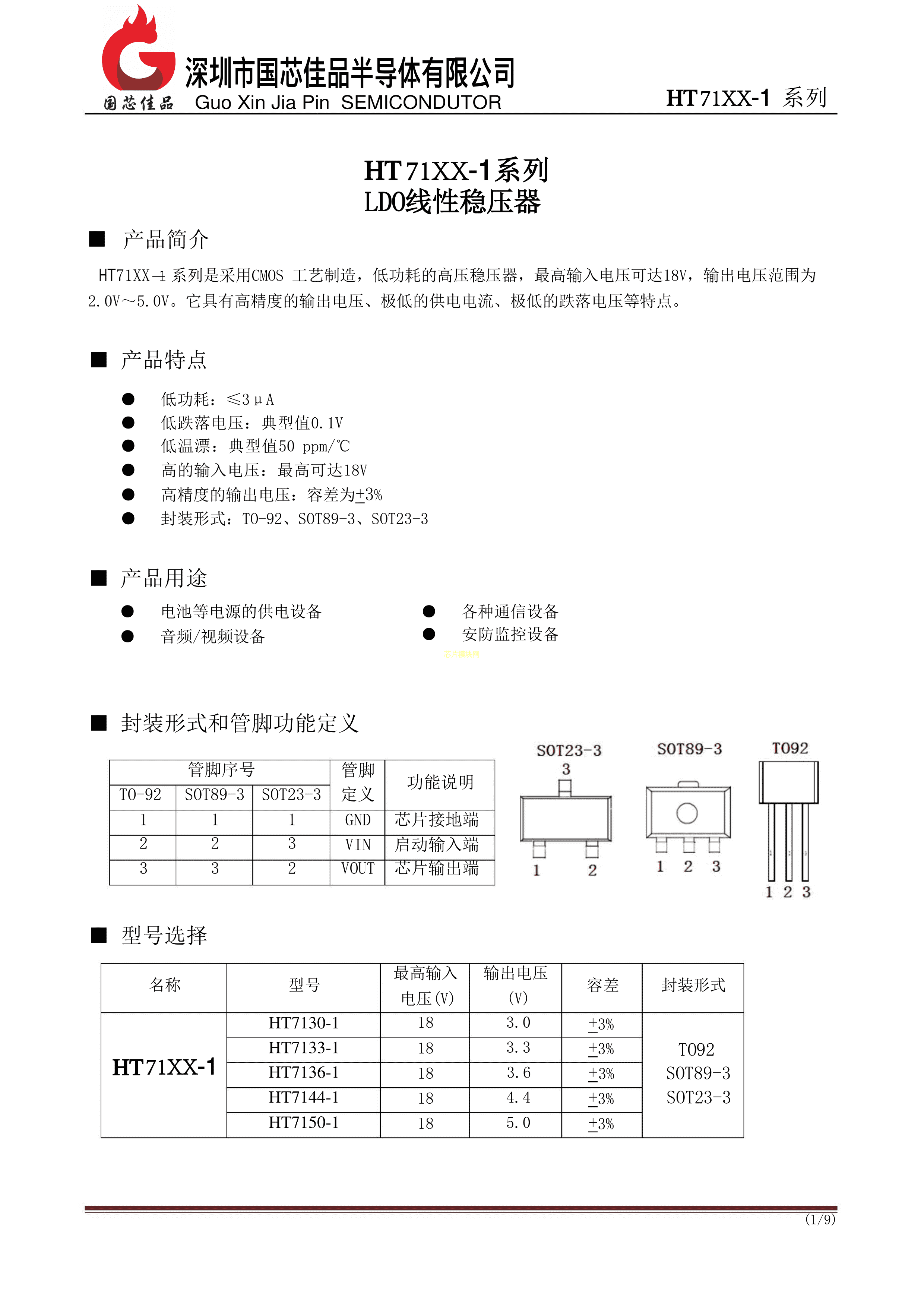 HT7130-1数据手册SOT-89封装国芯佳品PDF规格书,中英文下载