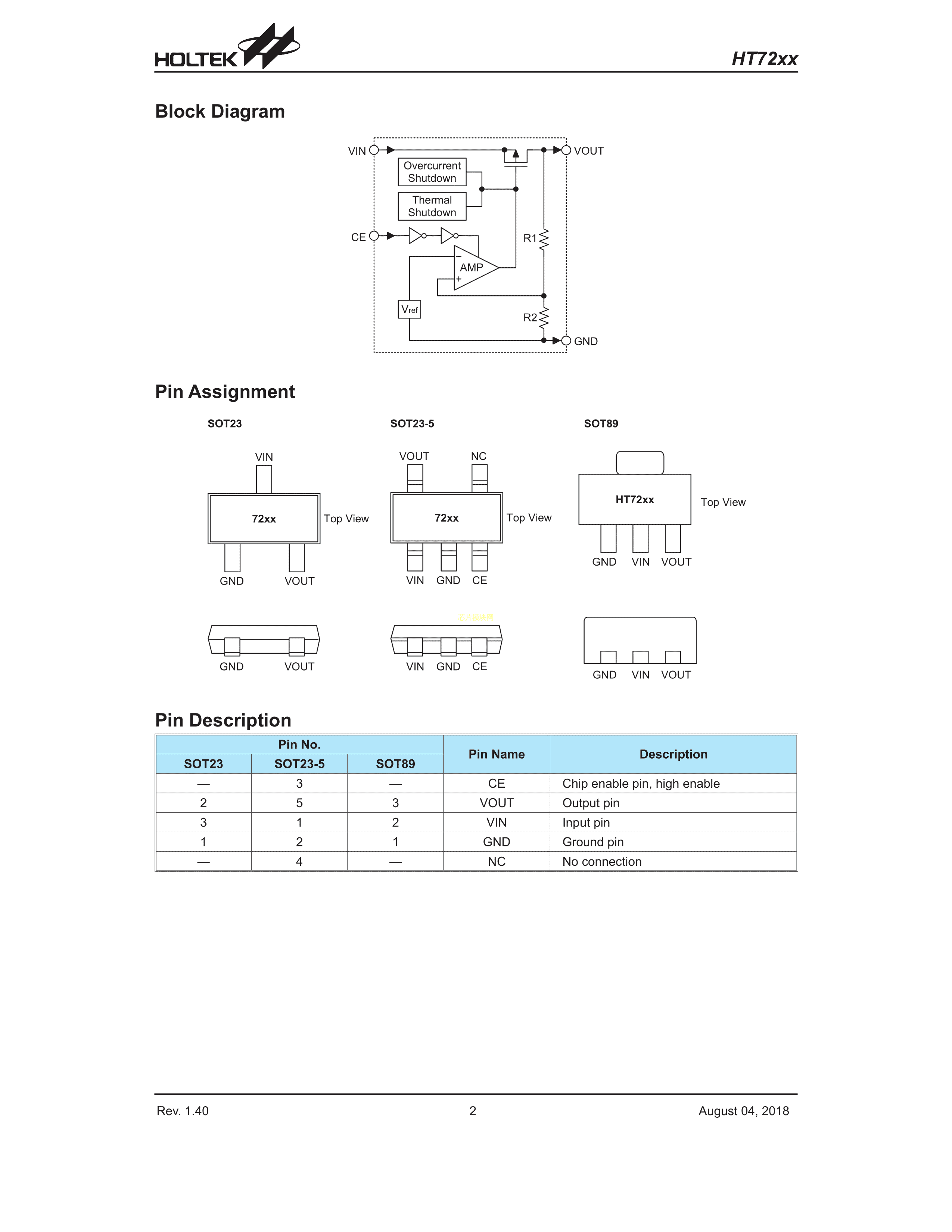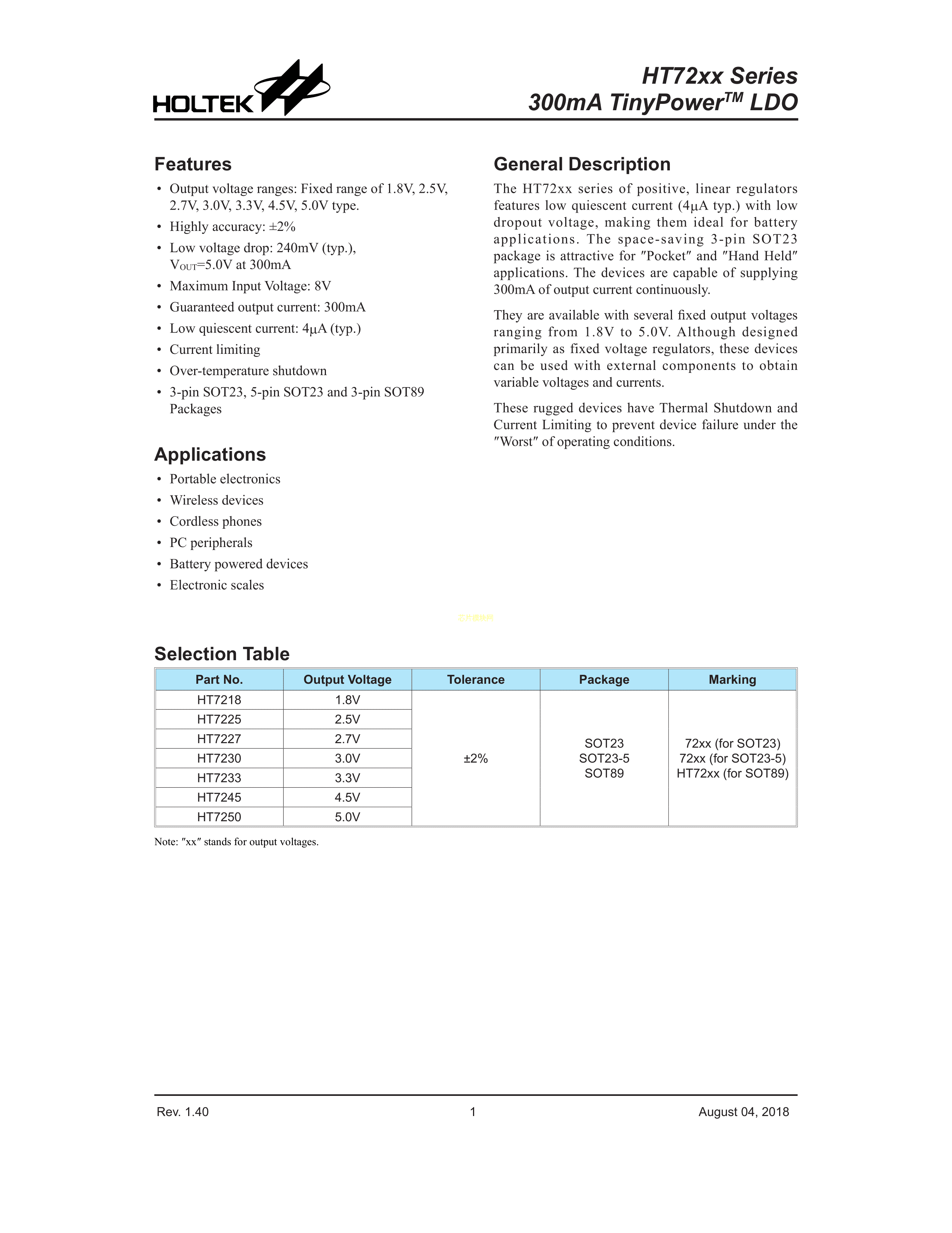 HT7218数据手册SOT-23-5封装HOLTEK(台湾合泰-盛群)PDF规格书,中英文下载