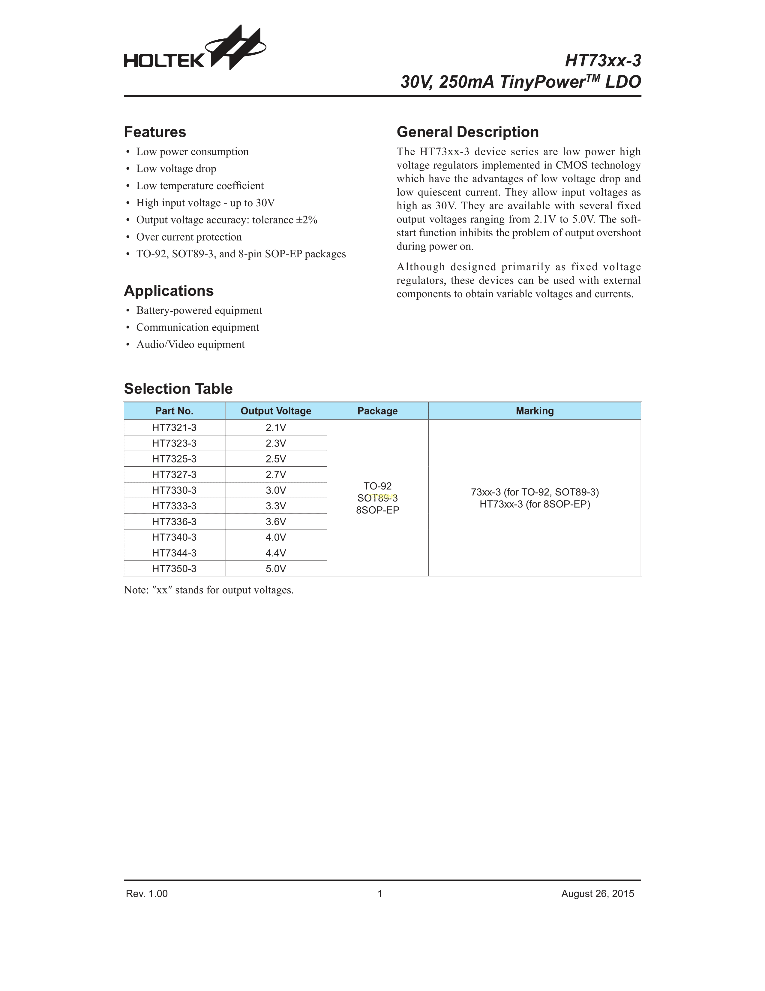 HT7333-3数据手册SOT-89(SOT-89-3)封装HOLTEK(台湾合泰-盛群)PDF规格