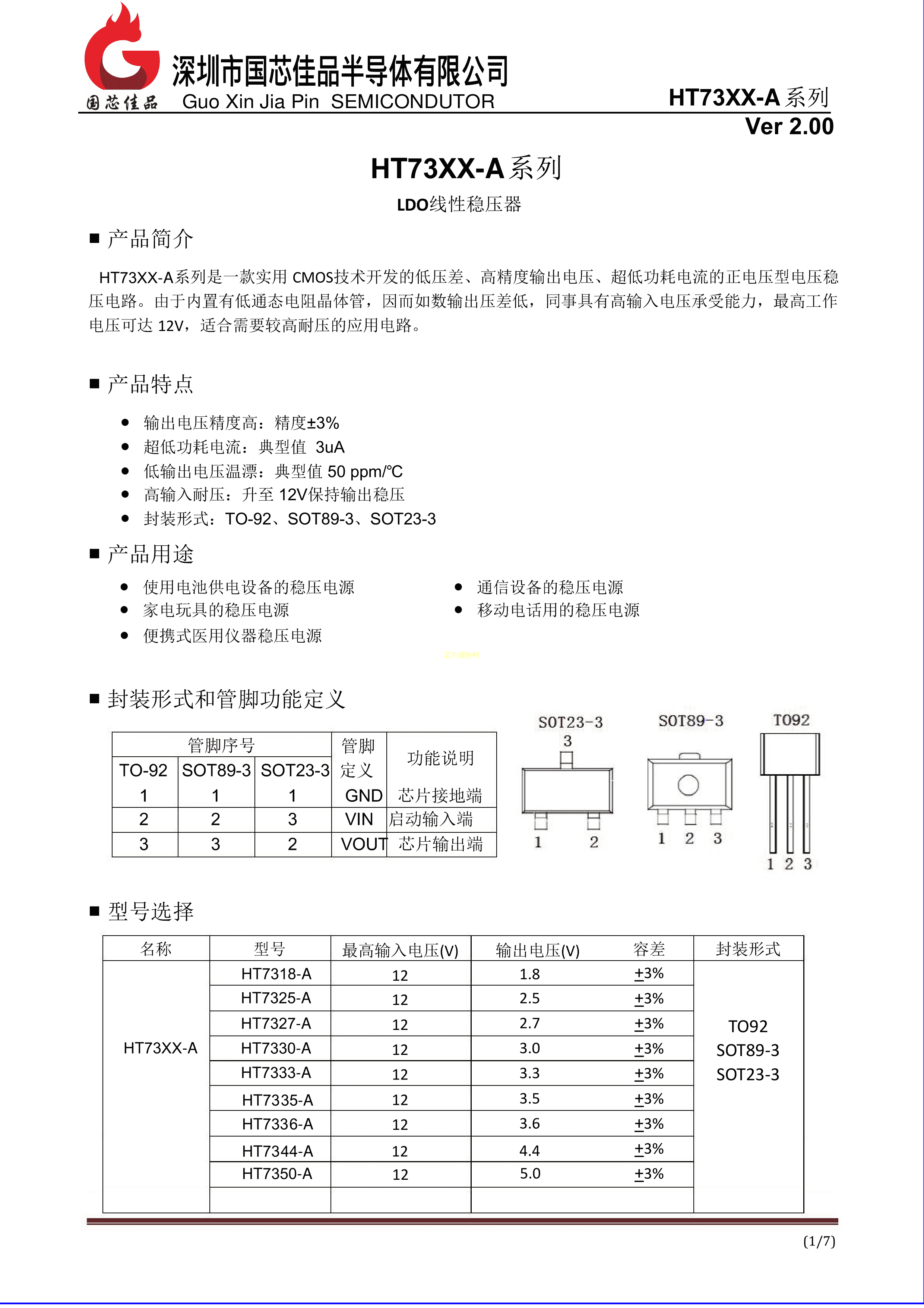 HT7333-A数据手册SOT-89封装国芯佳品PDF规格书,中英文下载