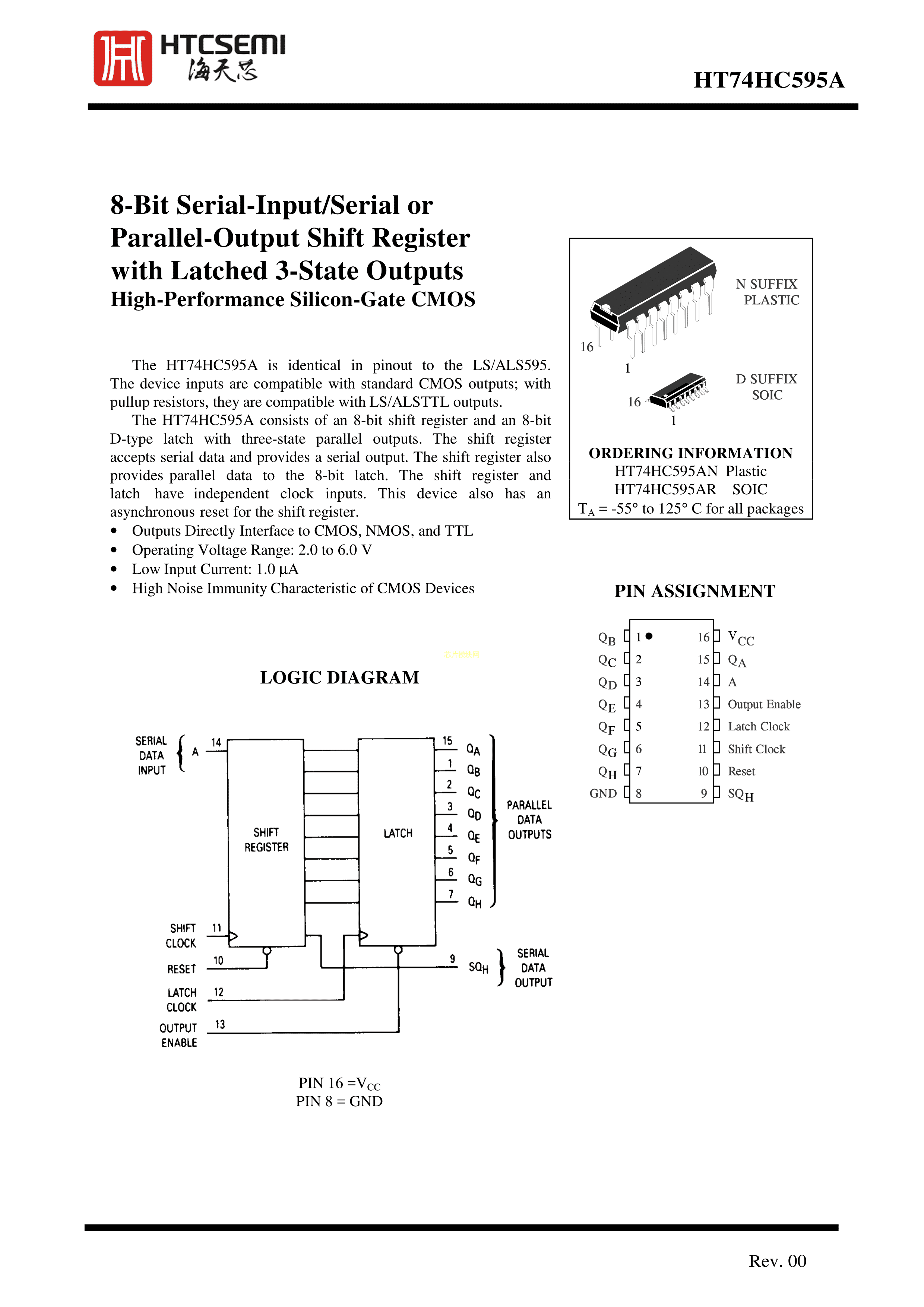 HT74HC595ARZ数据手册SOP-16封装HTCSEMI(海天芯)PDF规格书,中英文下载