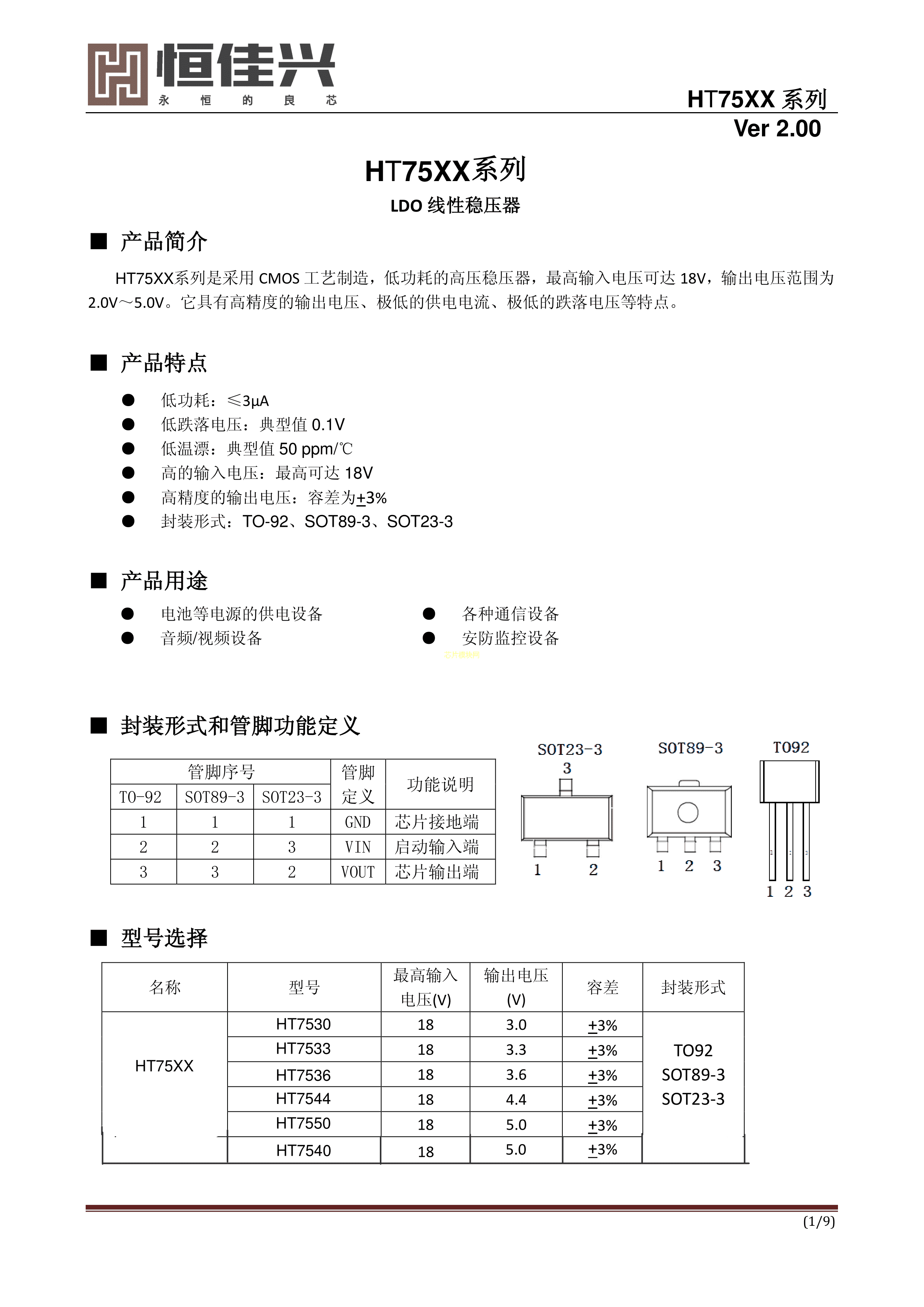 HT7536数据手册SOT-23-3封装HX(恒佳兴)PDF规格书,中英文下载