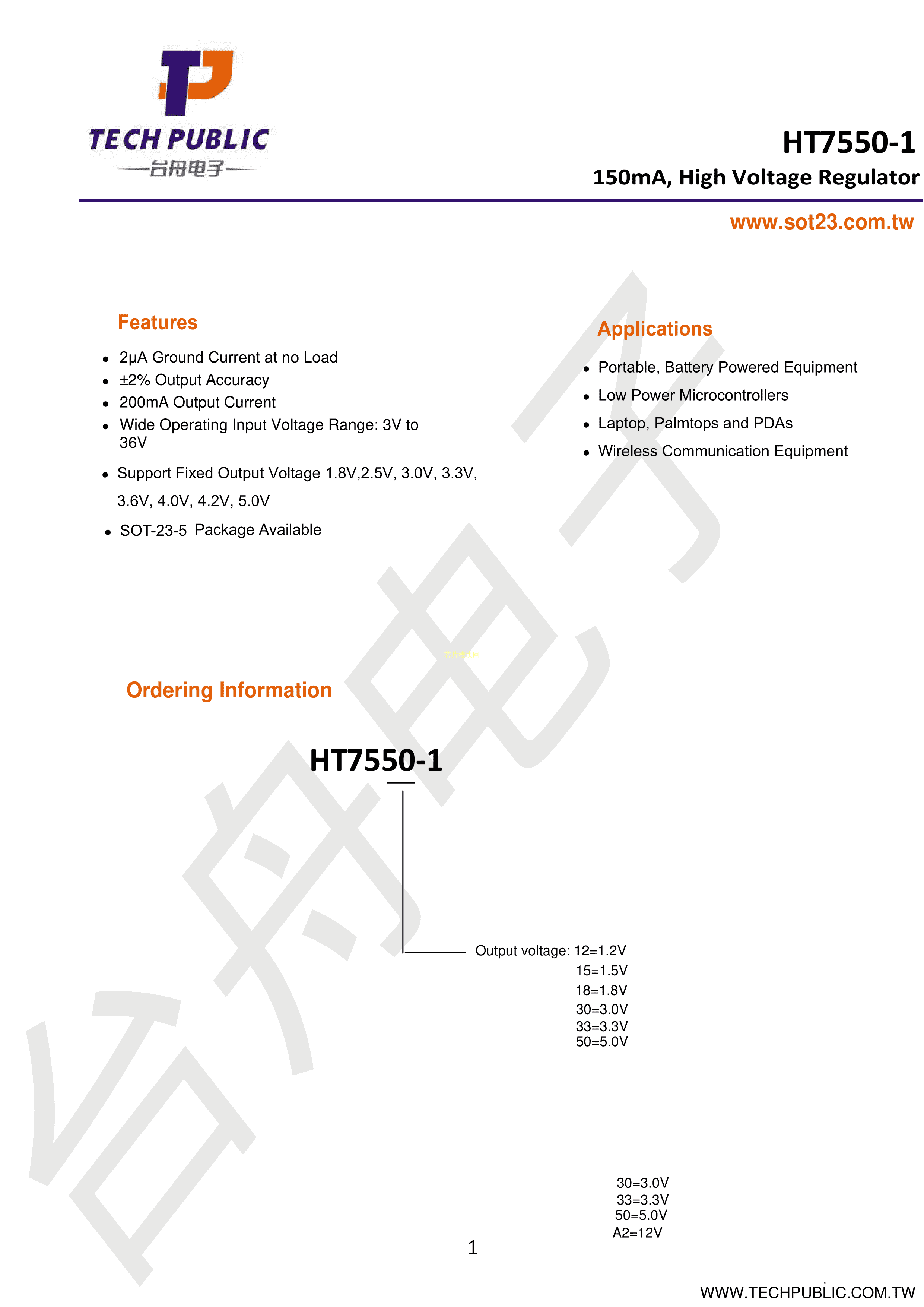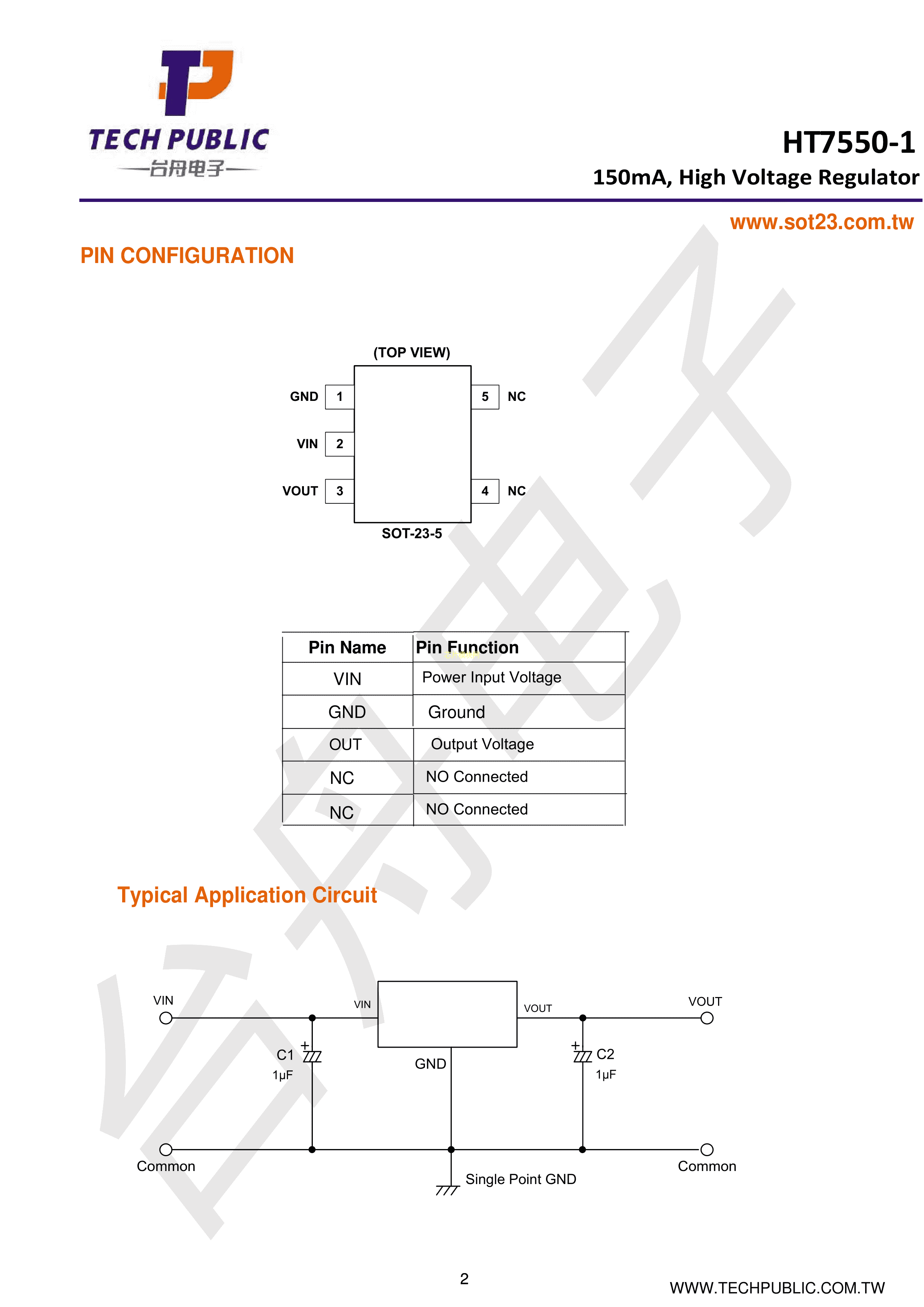 HT7550-1数据手册SOT-23-5封装TECH PUBLIC(台舟)PDF规格书,中英文下载