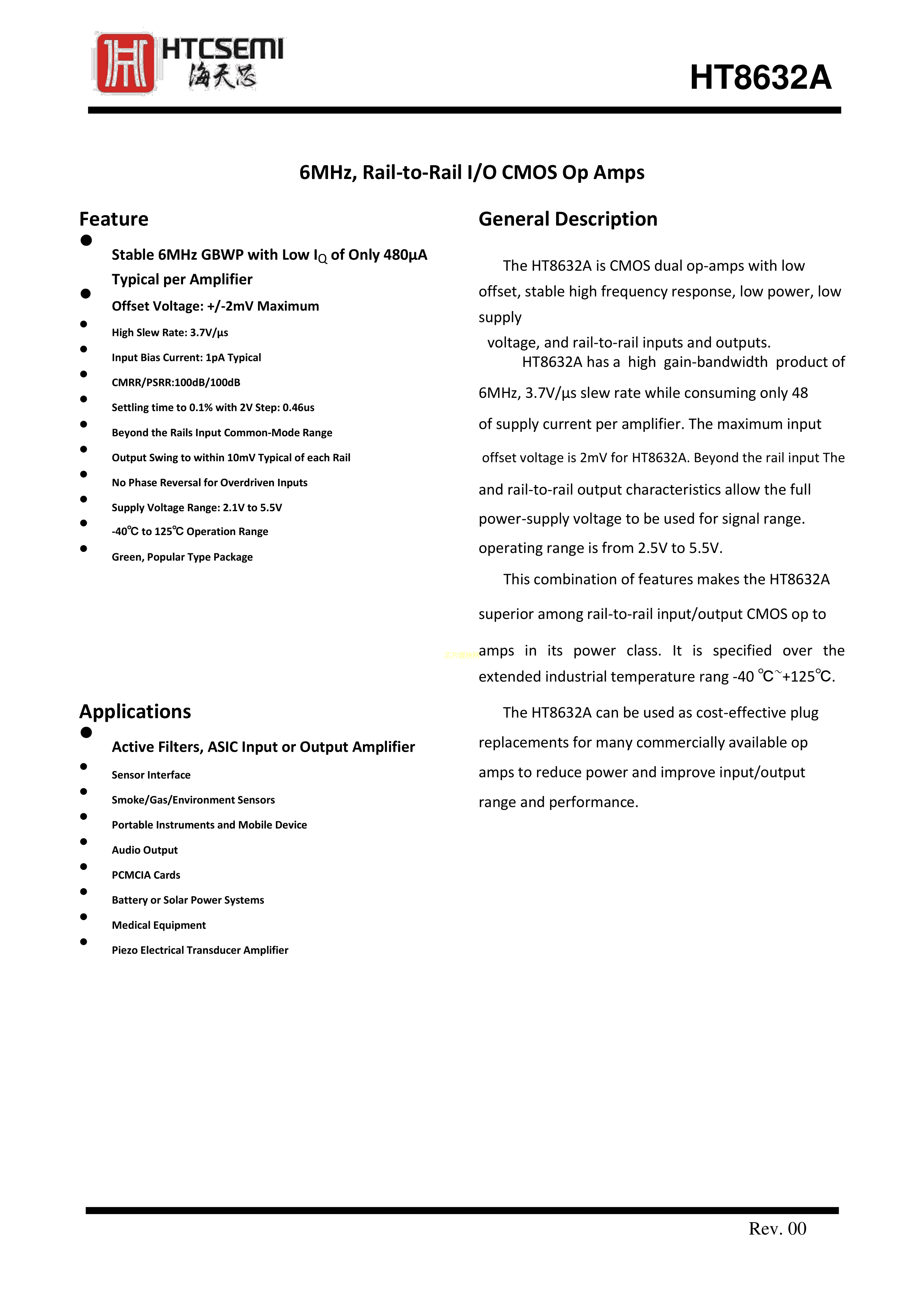 HT8632ARZ数据手册SOP-8封装HTCSEMI(海天芯)PDF规格书,中英文下载