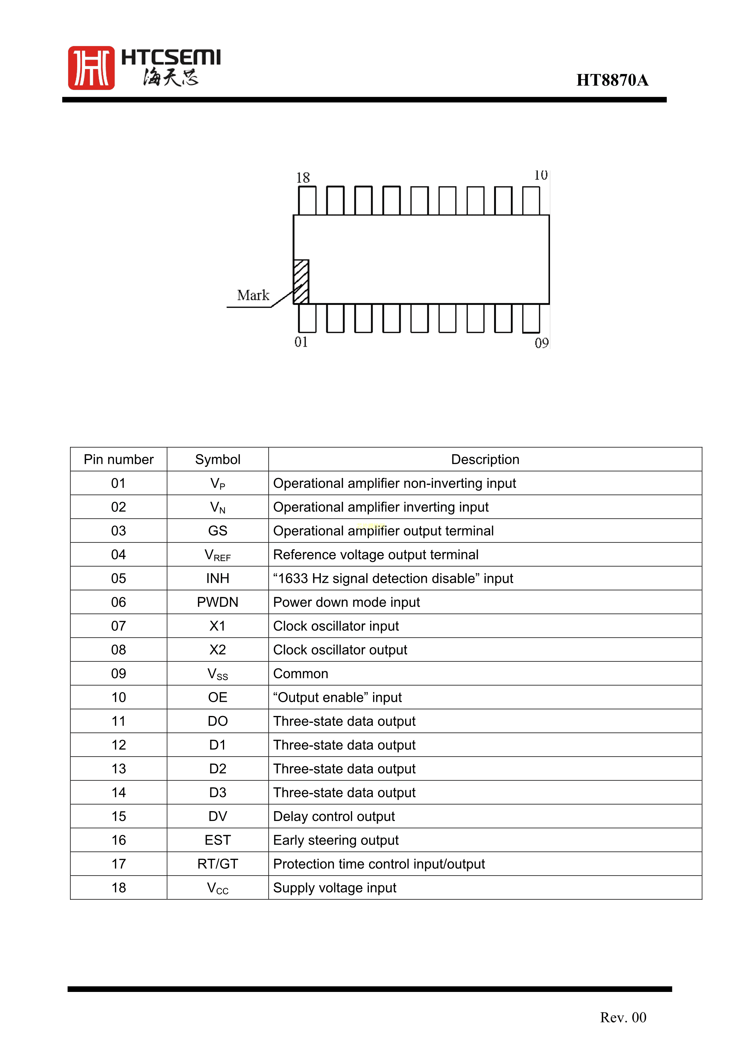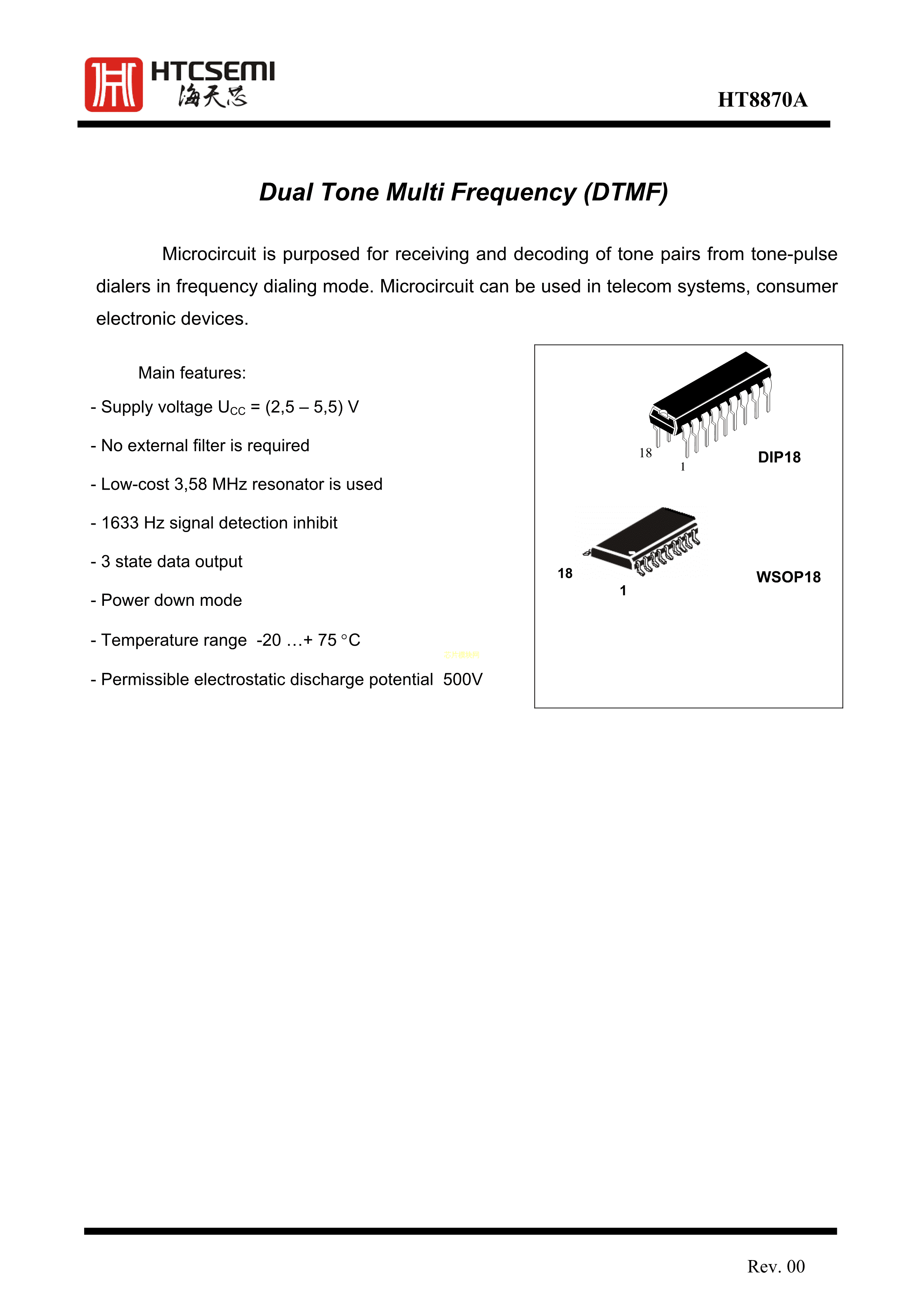 HT8870ARWZ数据手册WSOP18封装HTCSEMI(海天芯)PDF规格书,中英文下载