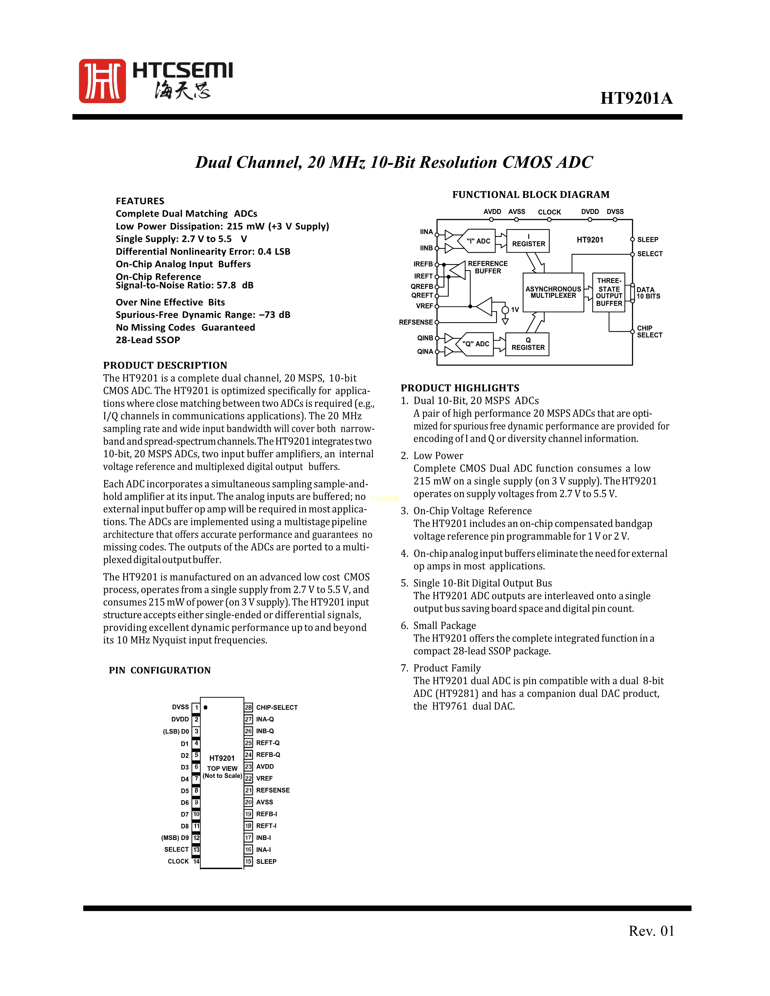 HT9201ARSZ数据手册SSOP-28封装HTCSEMI(海天芯)PDF规格书,中英文下载