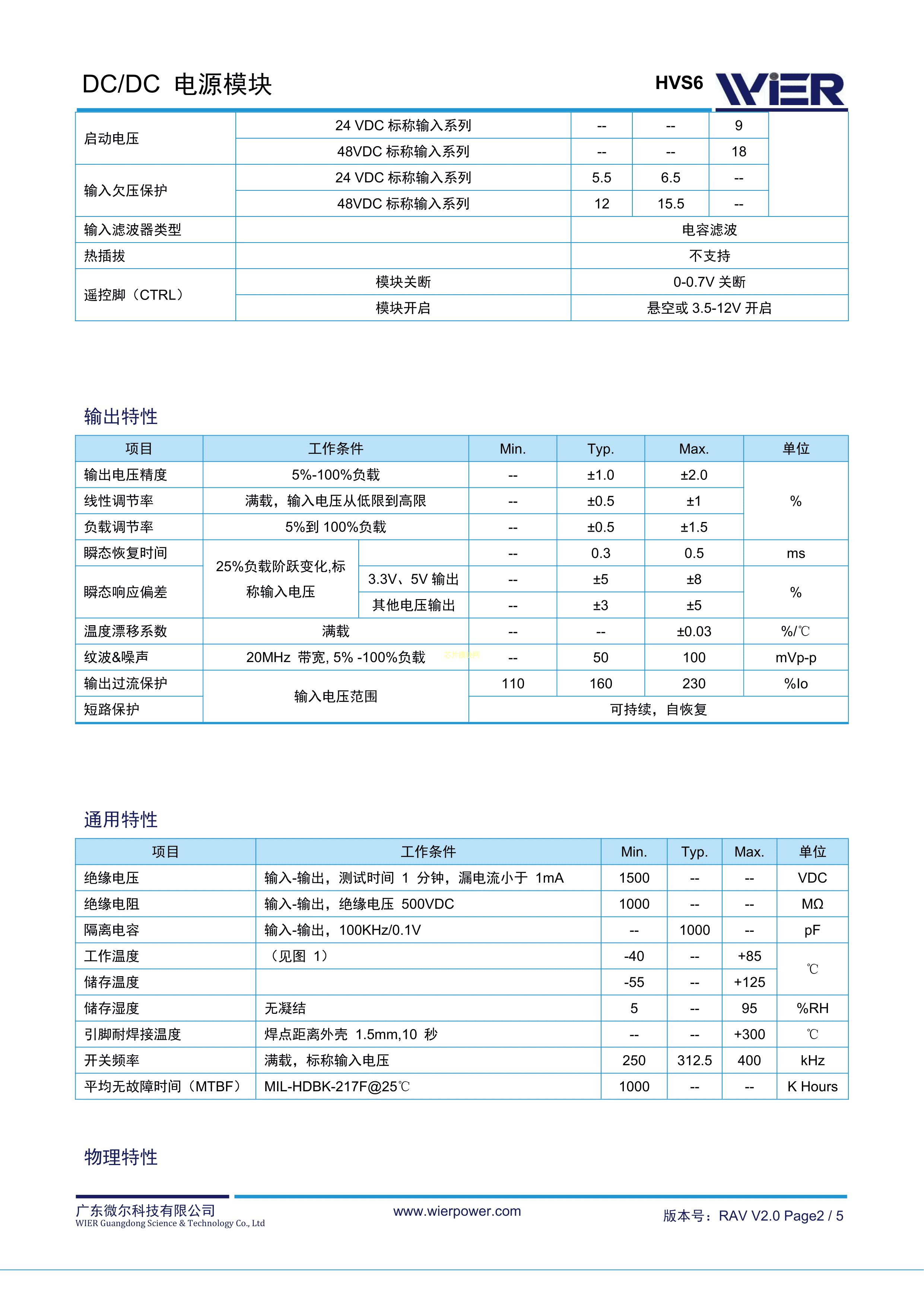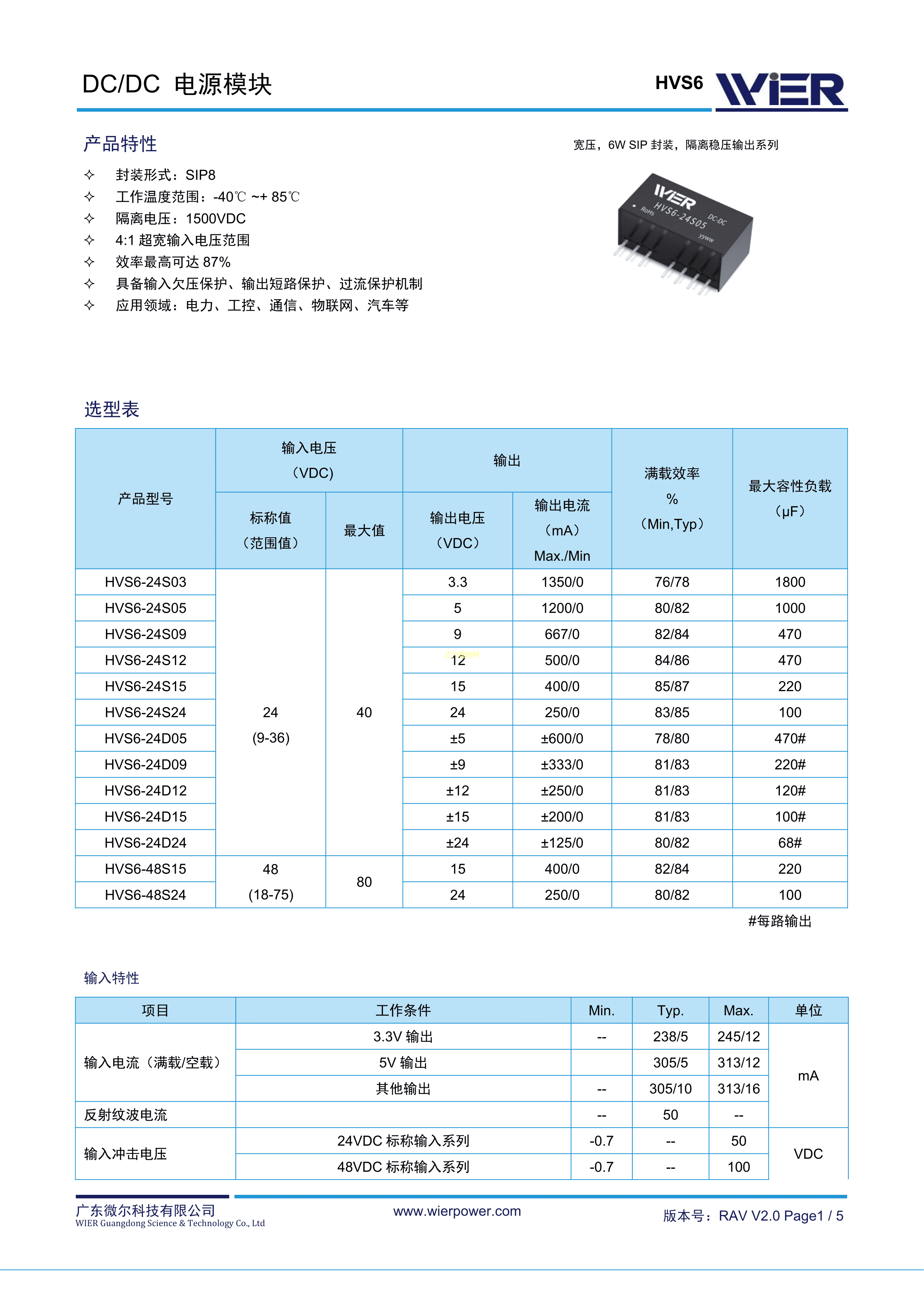 HVS6-24S03数据手册插件封装WIER(微尔)PDF规格书,中英文下载