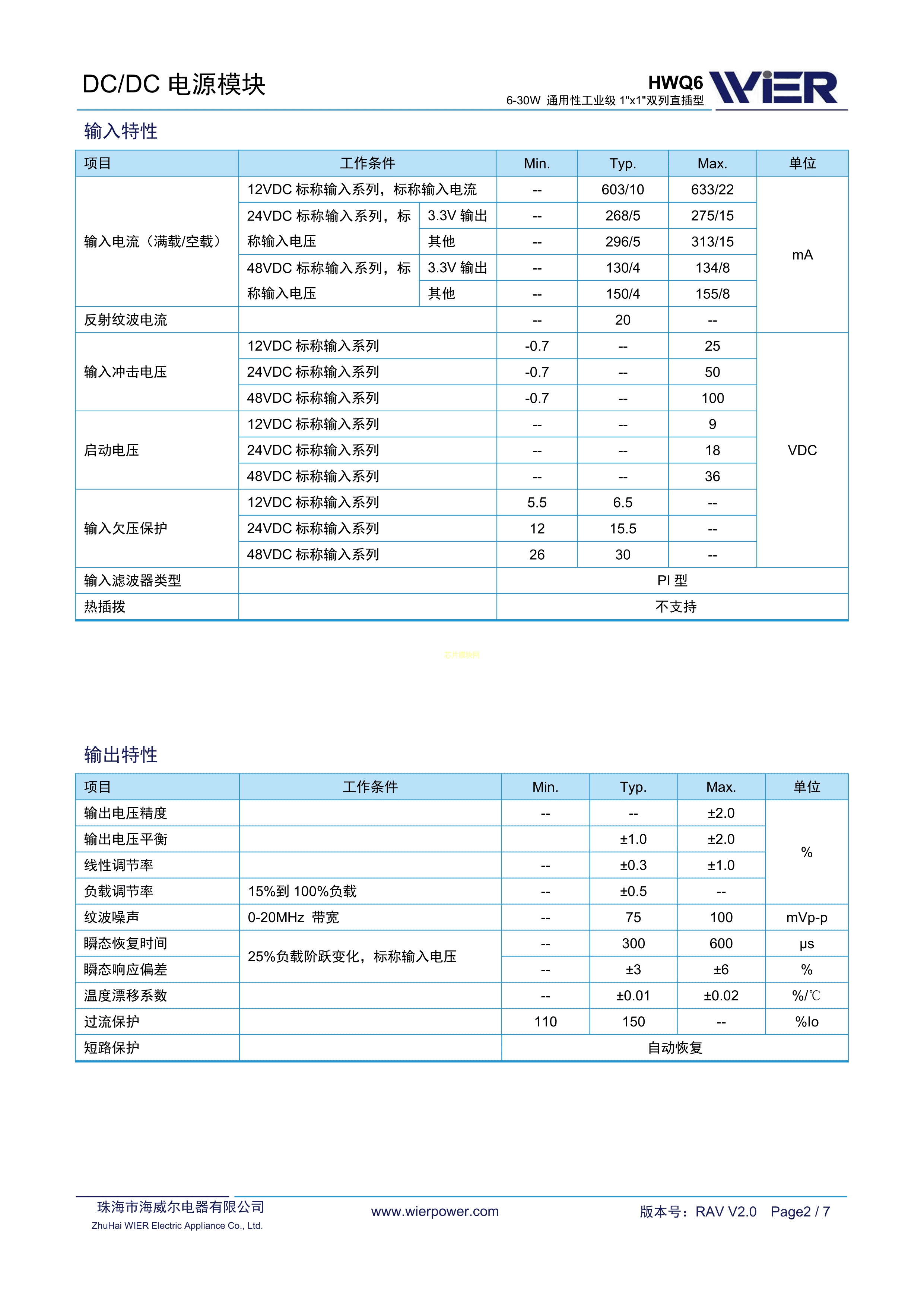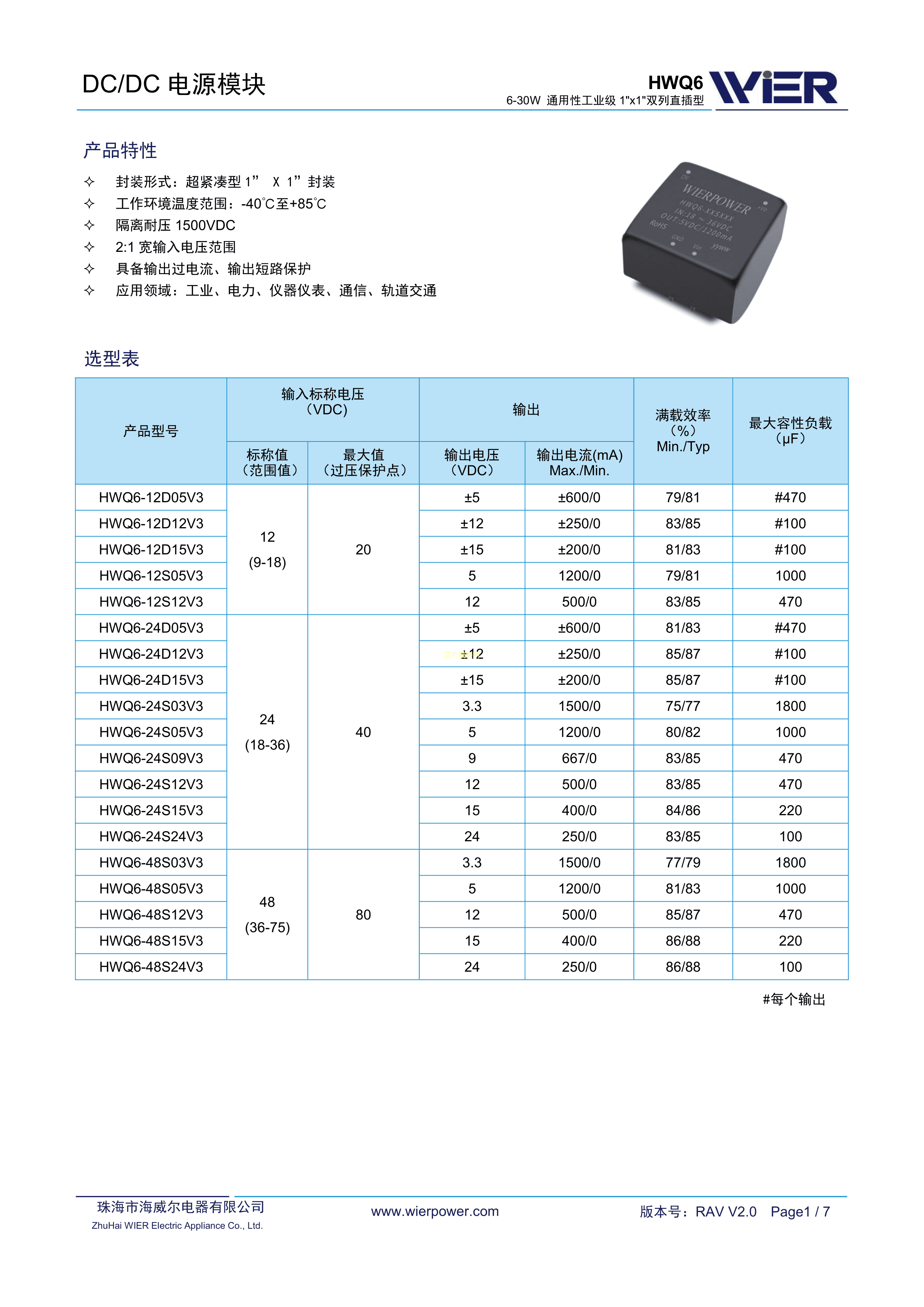 HWQ6-24S05V3数据手册-封装WIER(微尔)PDF规格书,中英文下载