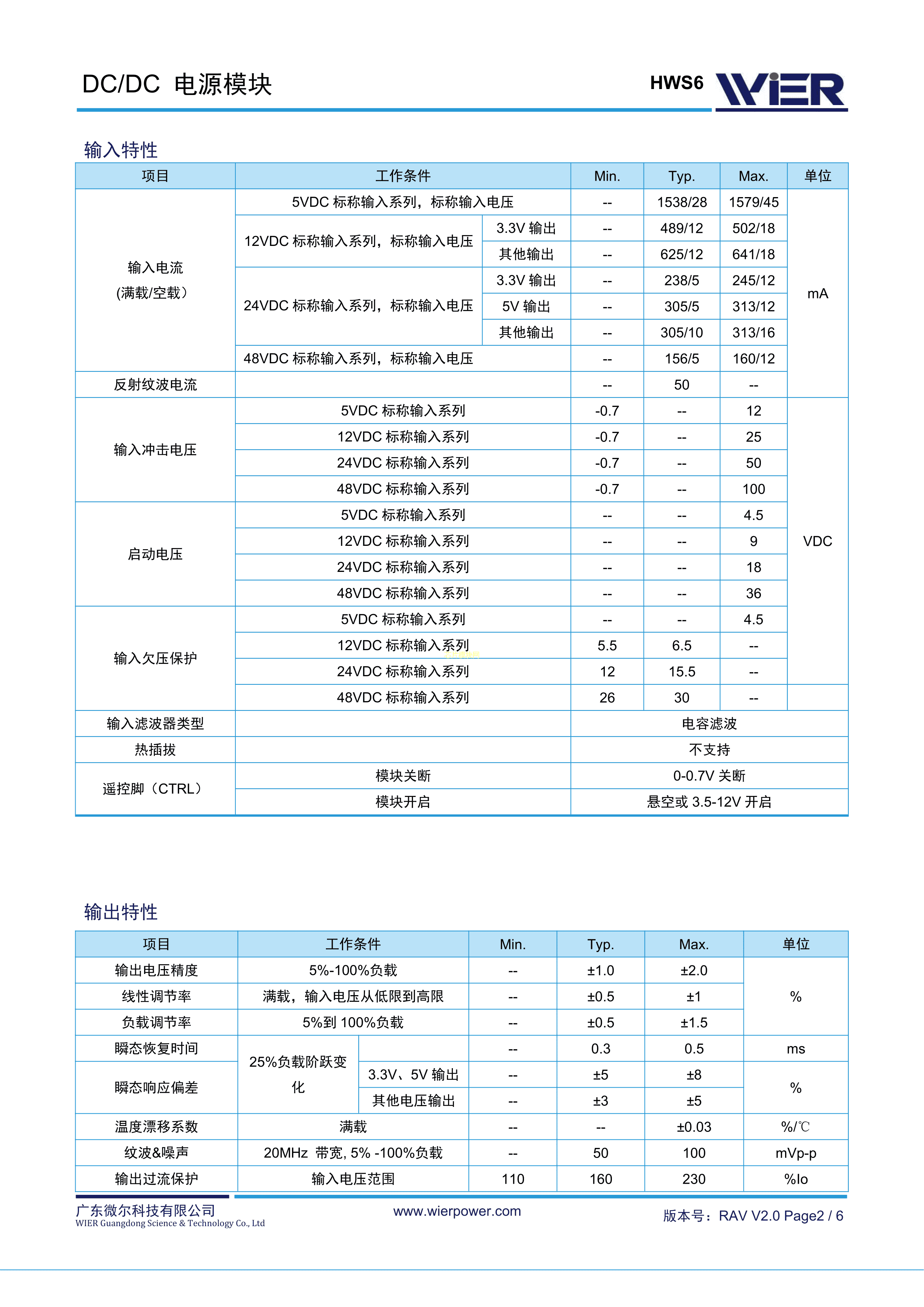 HWS6-24S09数据手册插件封装WIER(微尔)PDF规格书,中英文下载