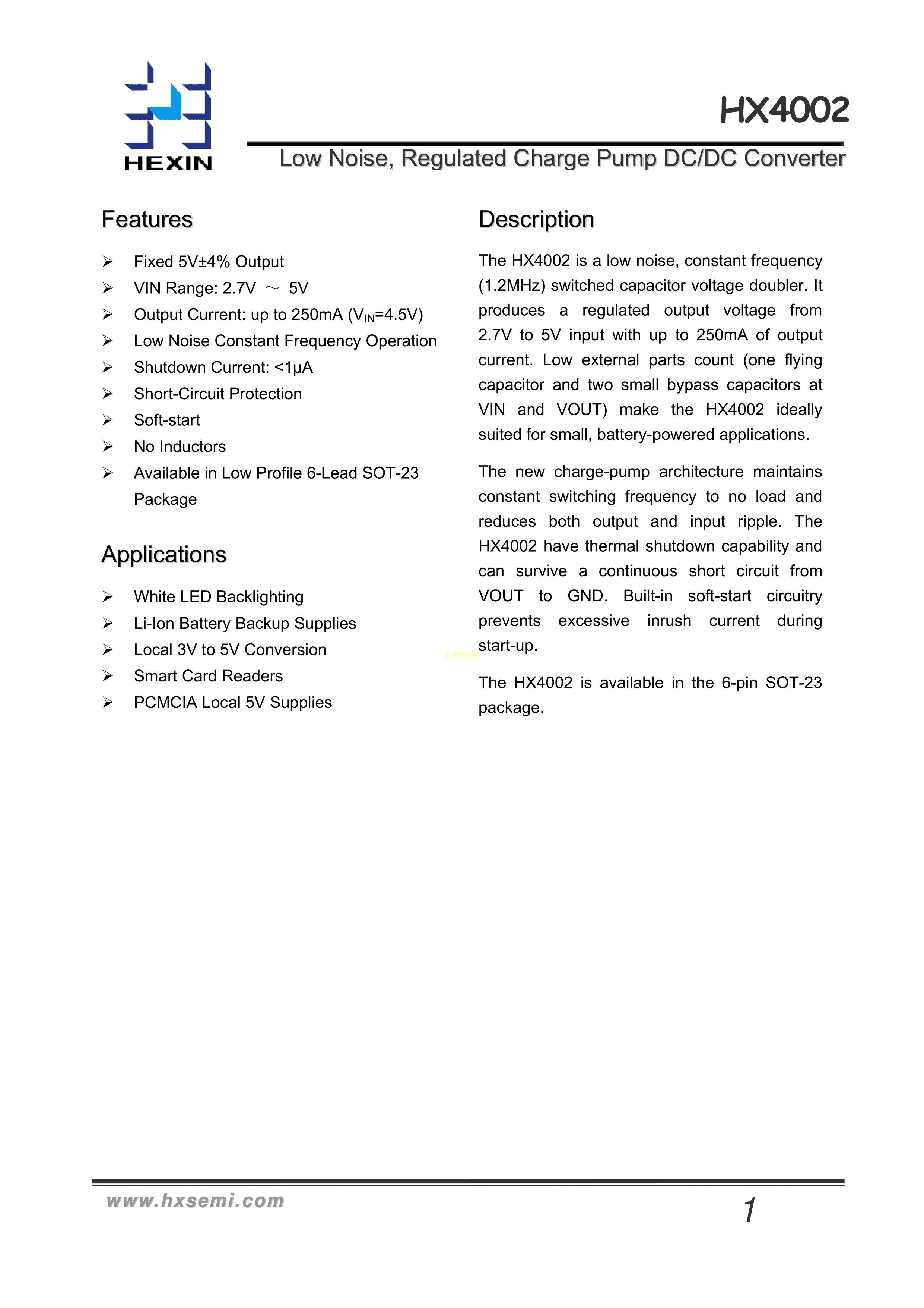 HX4002-MFC数据手册SOT-23-6封装HEXIN(禾芯微)PDF规格书,中英文下载
