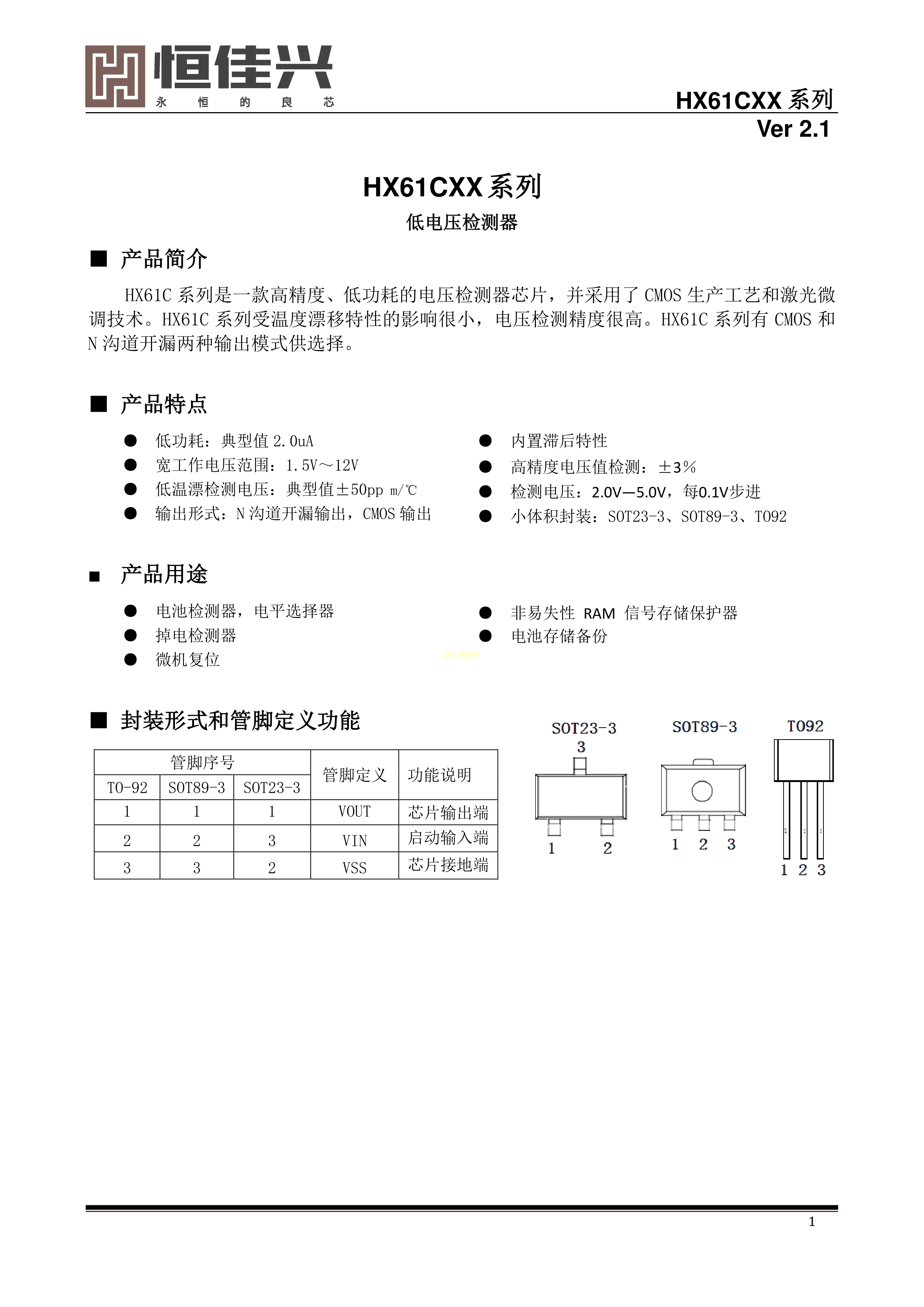 HX61CN4002MR数据手册SOT-23-3L封装HX(恒佳兴)PDF规格书,中英文下载