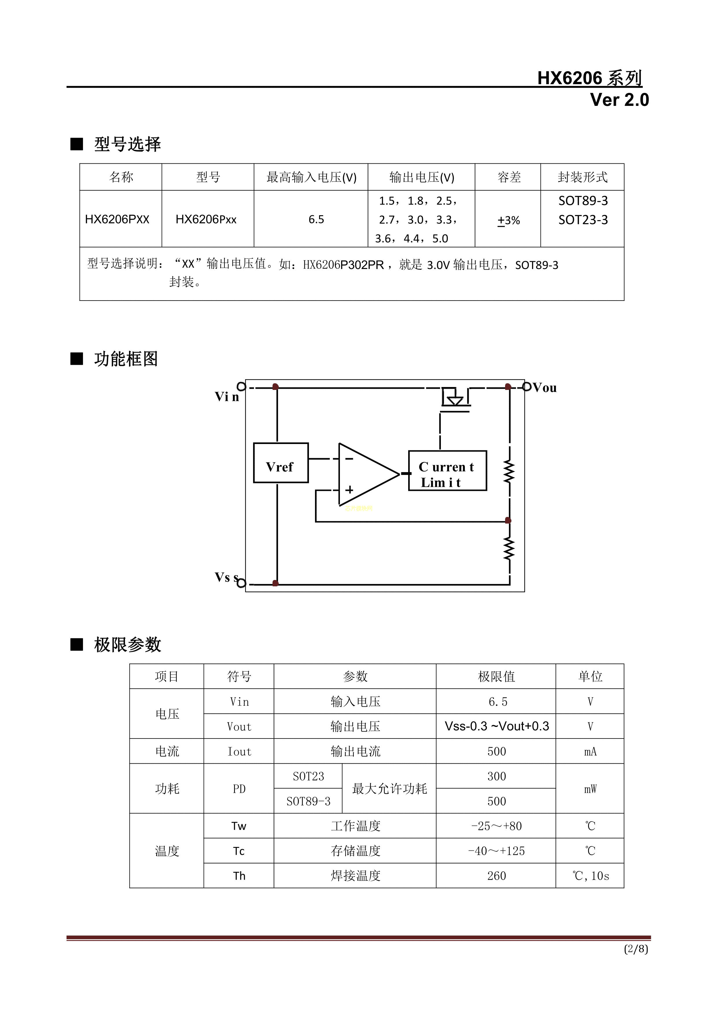 HX6206P282PR数据手册SOT-89-3封装HX(恒佳兴)PDF规格书,中英文下载