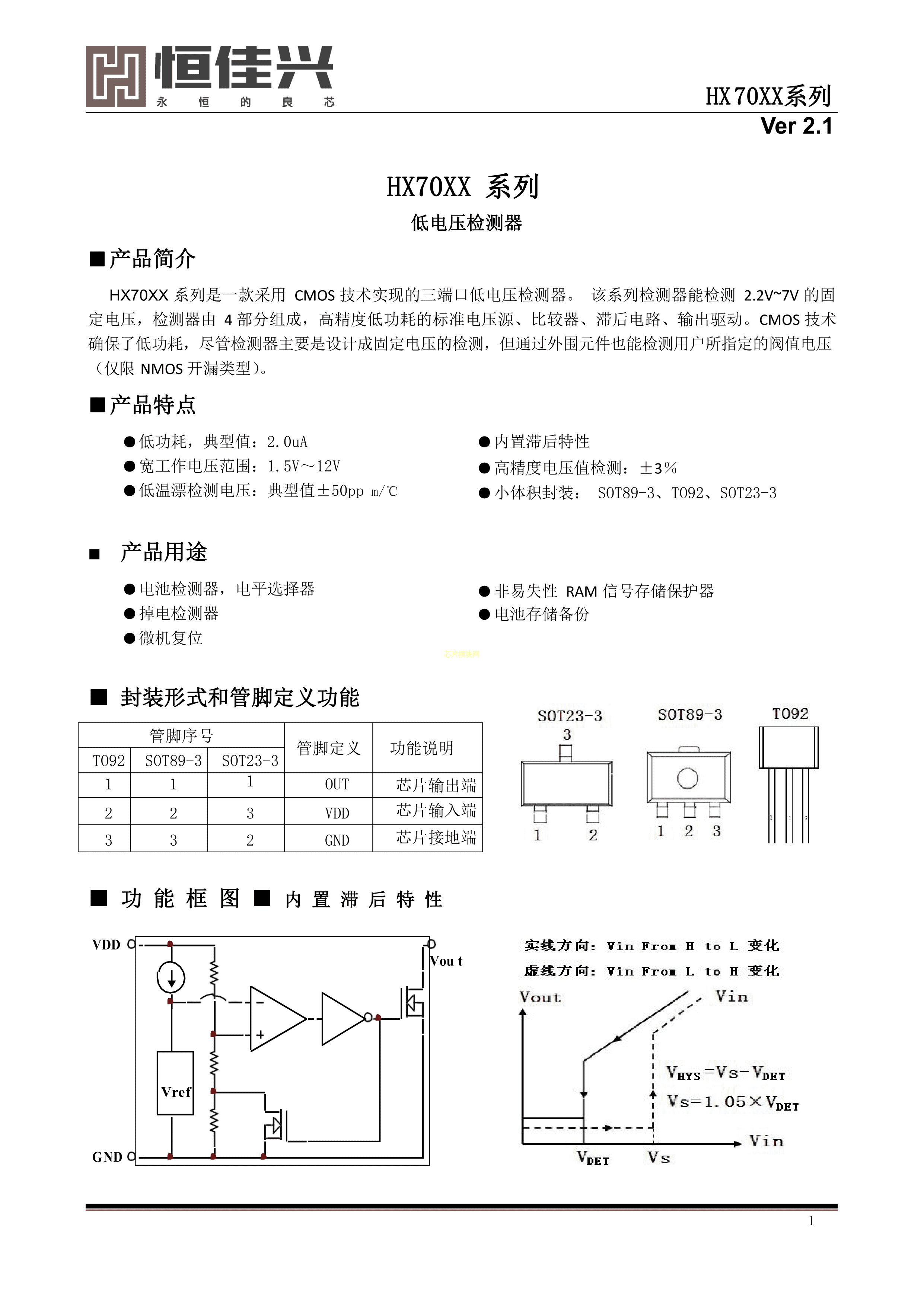 HX7033数据手册SOT-23封装HX(恒佳兴)PDF规格书,中英文下载
