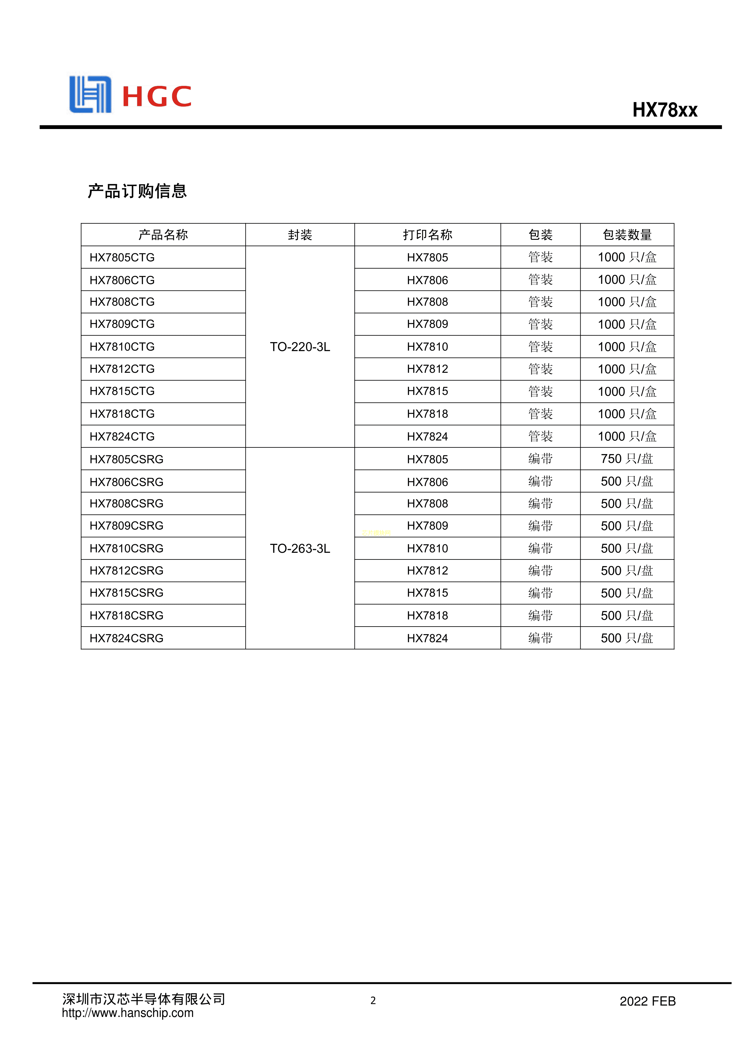 HX7812CTG数据手册TO-220-3封装HGC(深圳汉芯)PDF规格书,中英文下载
