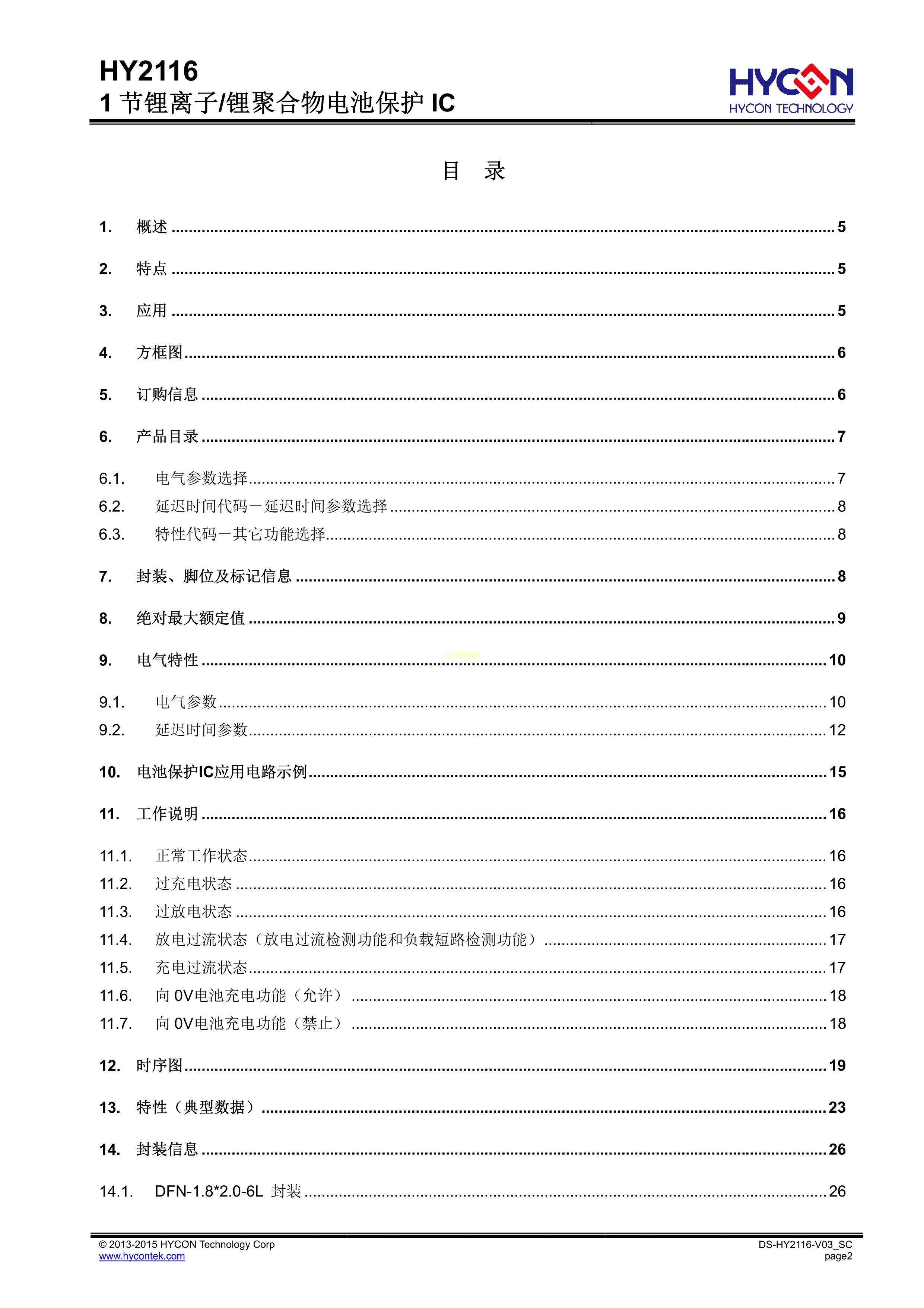 HY2116-DB6B数据手册SOT-23-6封装HYCON(台湾宏康)PDF规格书,中英文下载