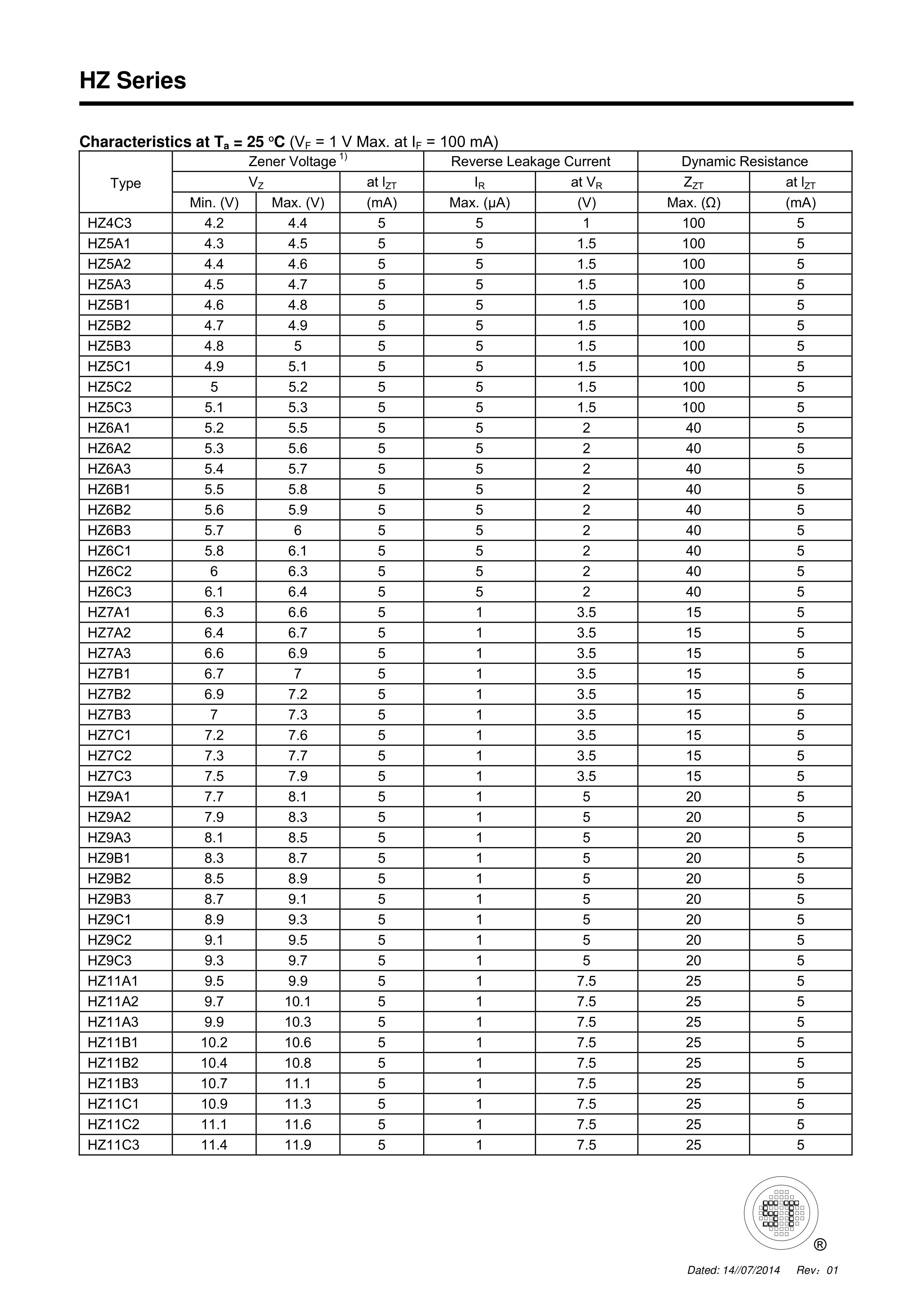 HZ3A1数据手册DO-35封装ST(先科)PDF规格书,中英文下载