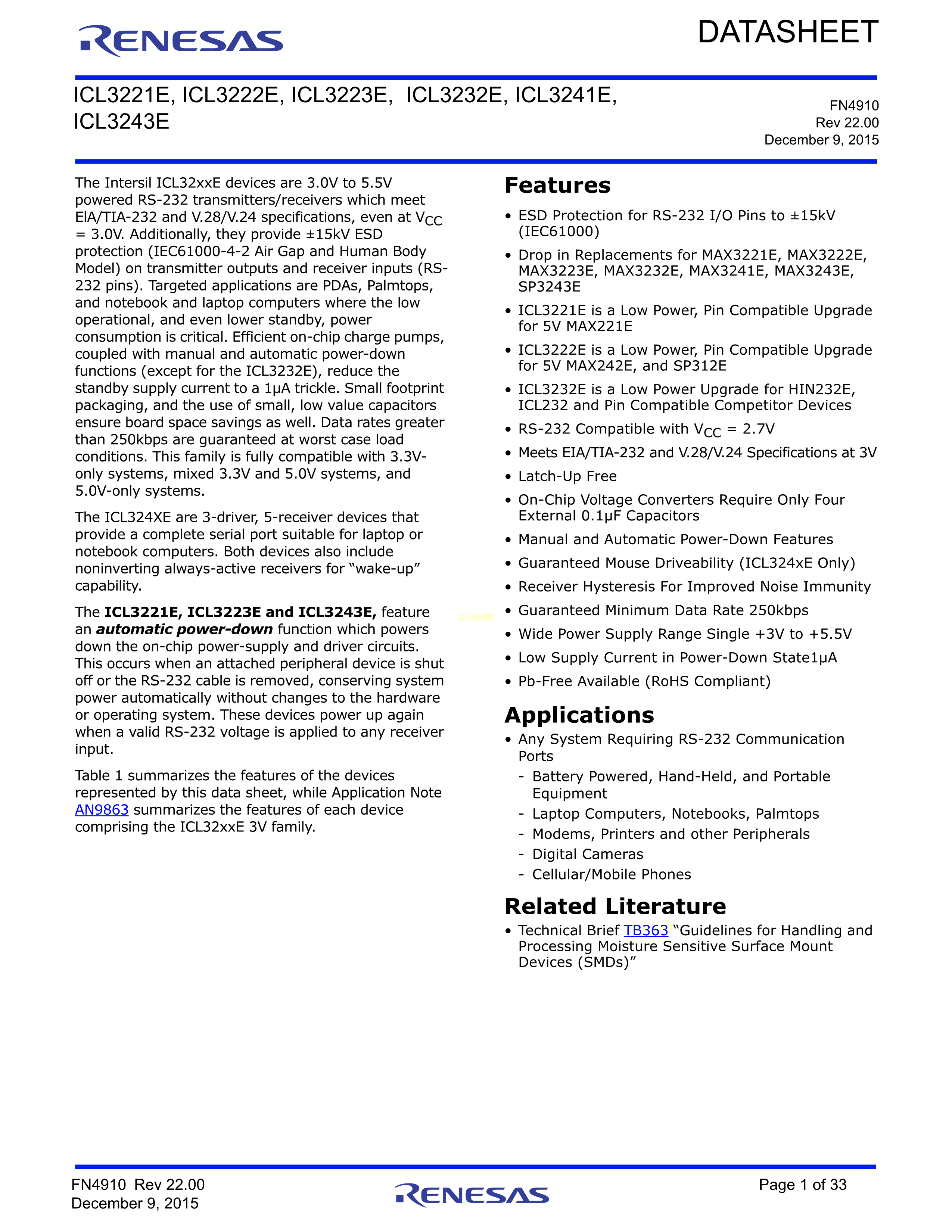 ICL3232EIV-16Z-T数据手册TSSOP-16封装RENESAS(瑞萨)-IDTPDF规格