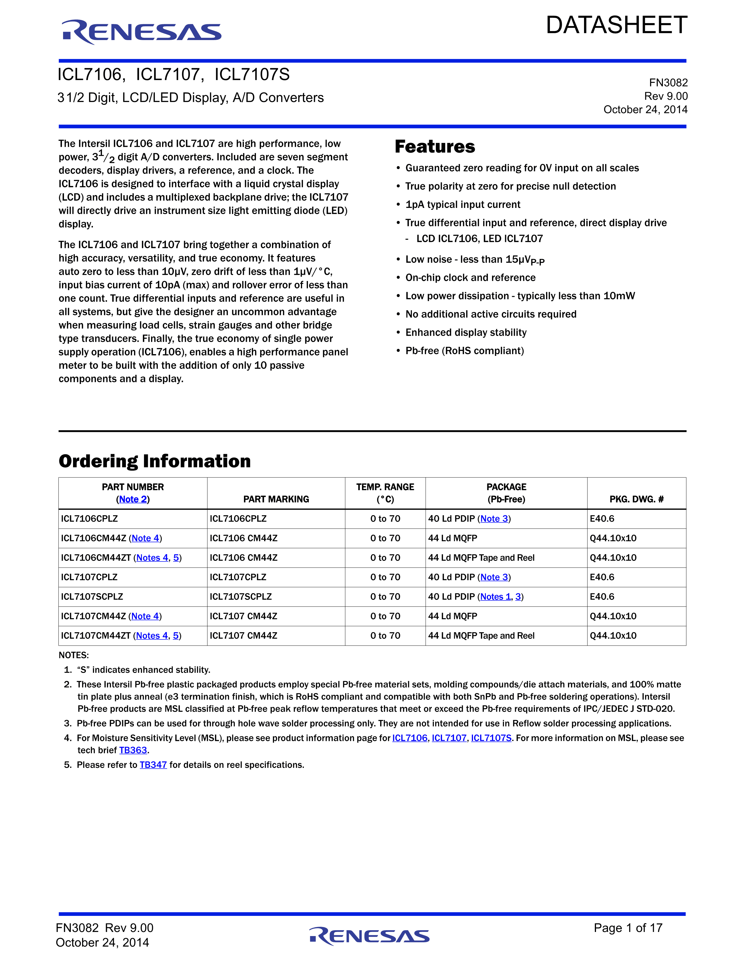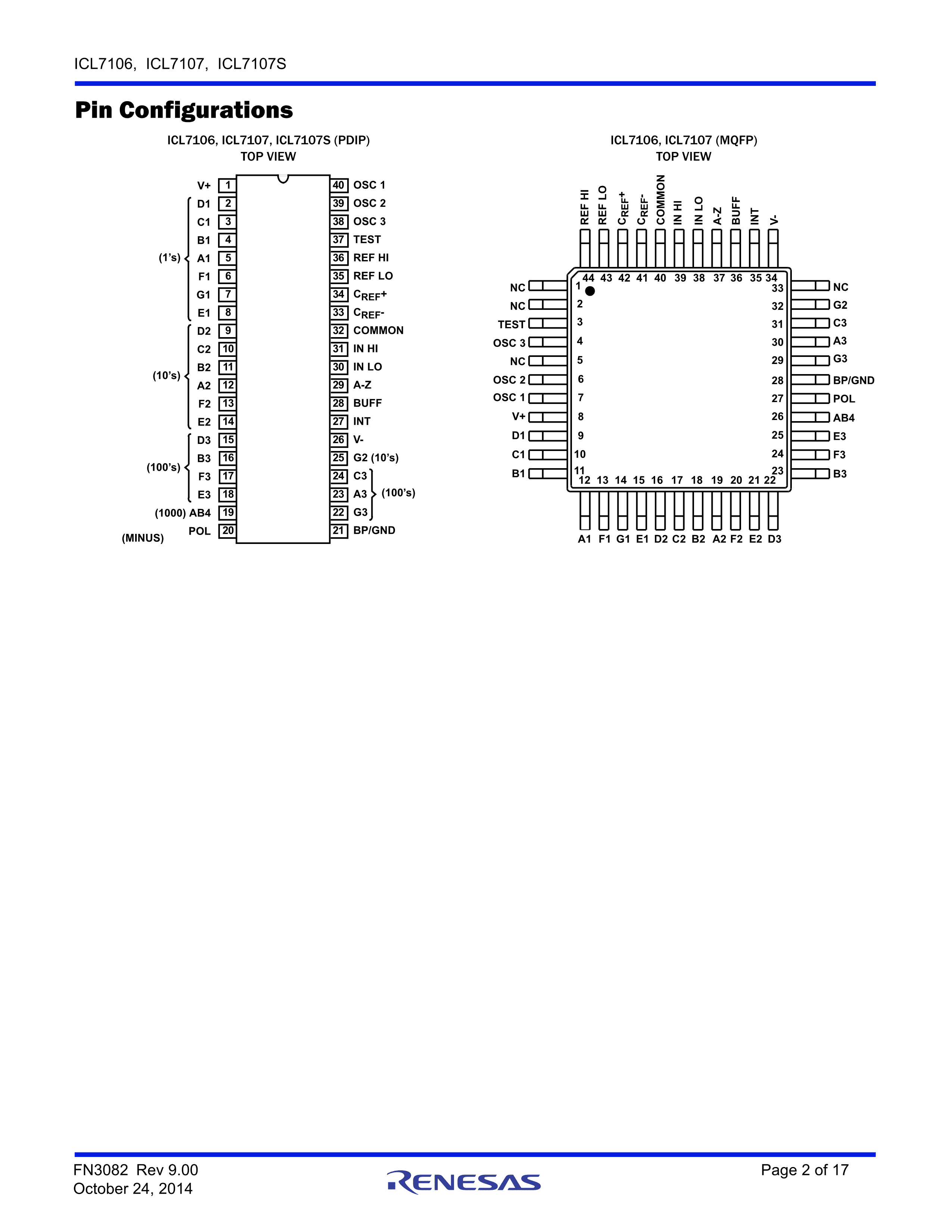 ICL7107CM44Z数据手册MQFP-44(10x10)封装RENESAS(瑞萨)-IDTPDF