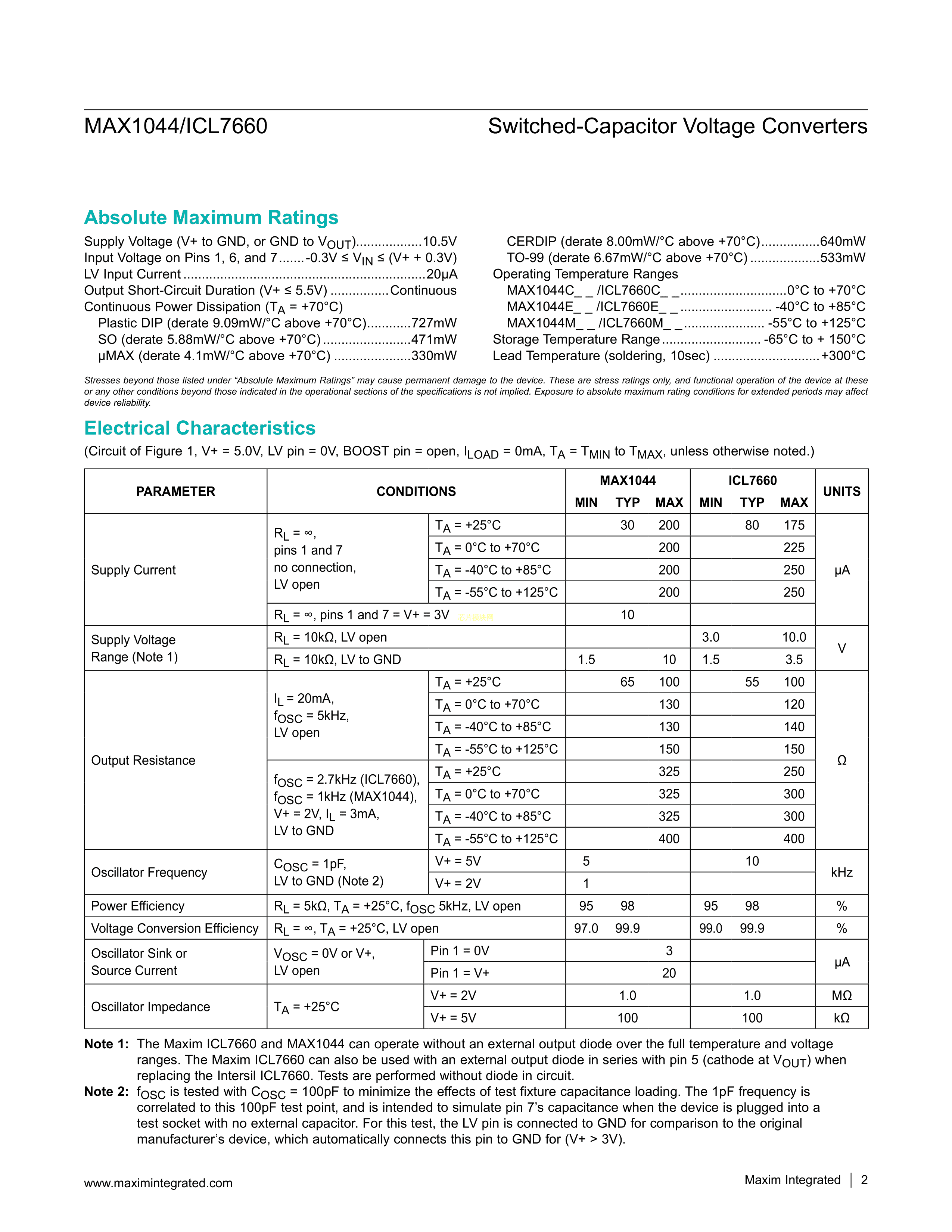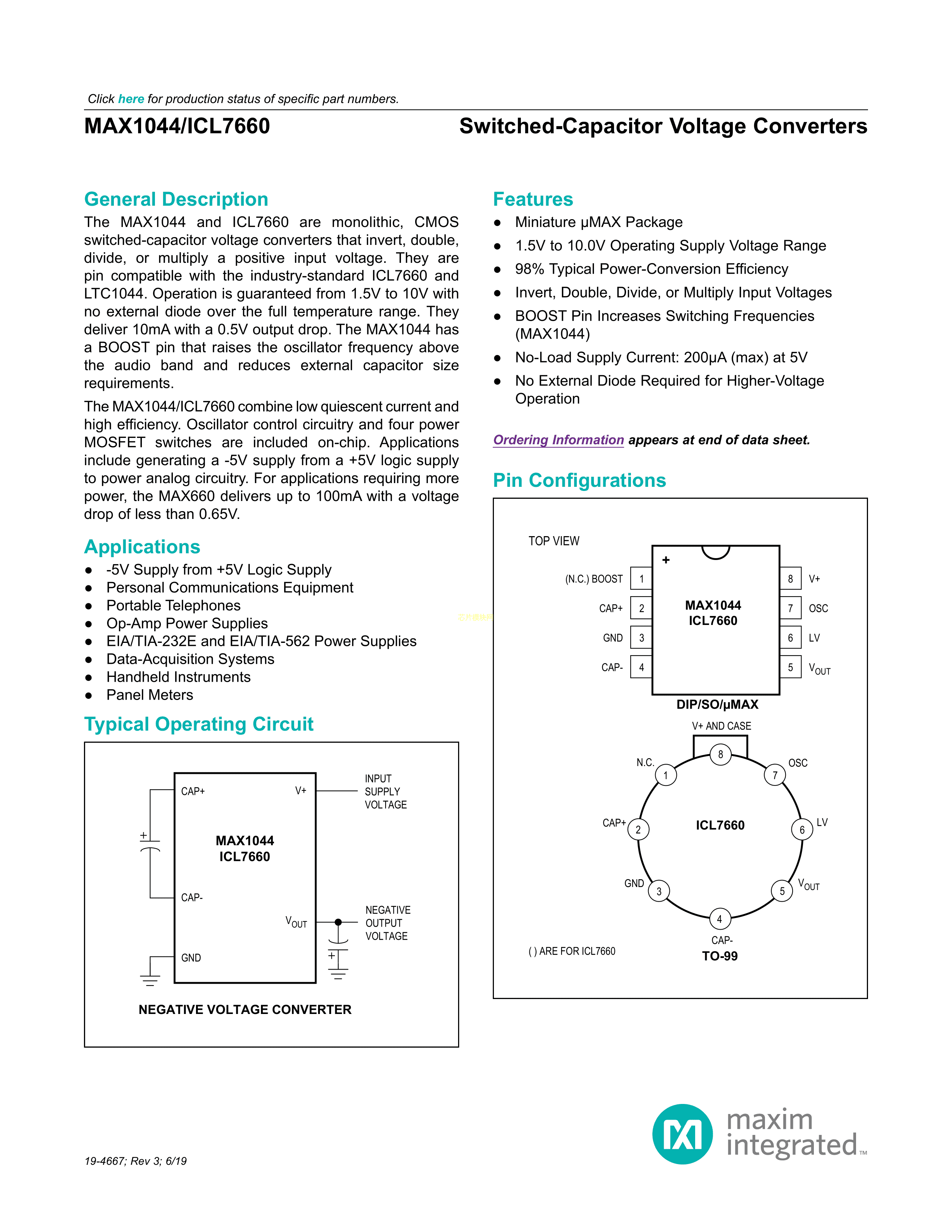 ICL7660CSA数据手册SOIC8_39MM封装MAXIM(美信)PDF规格书,中英文下载