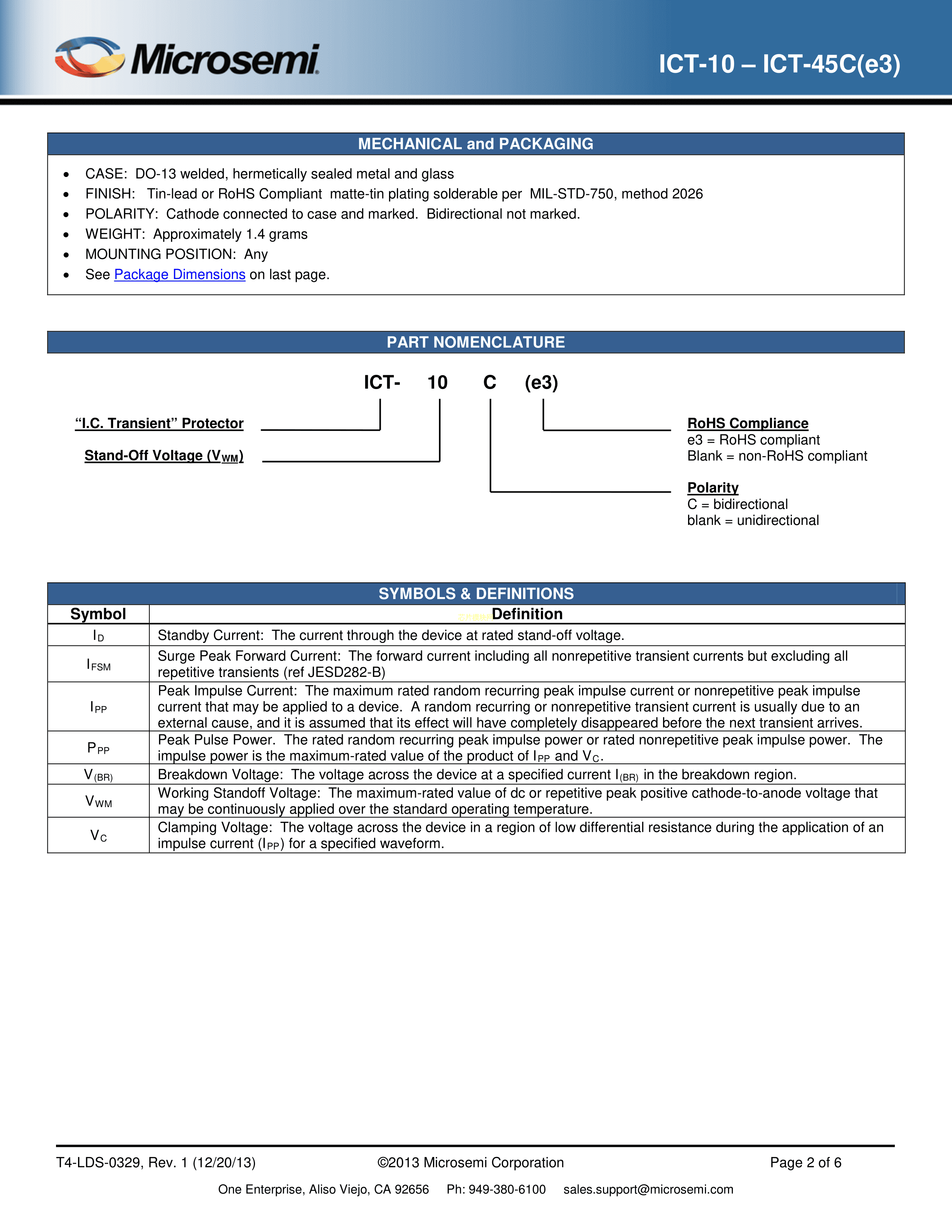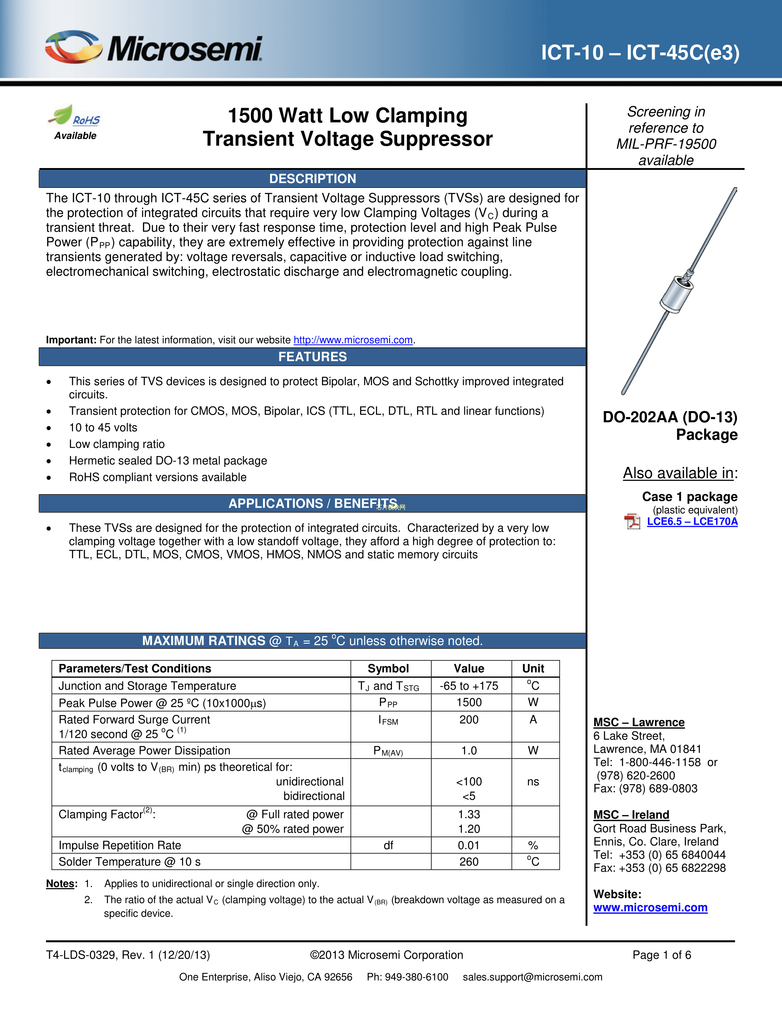 ICT-45C数据手册DO-13封装Microsemi(美高森美)PDF规格书,中英文下载