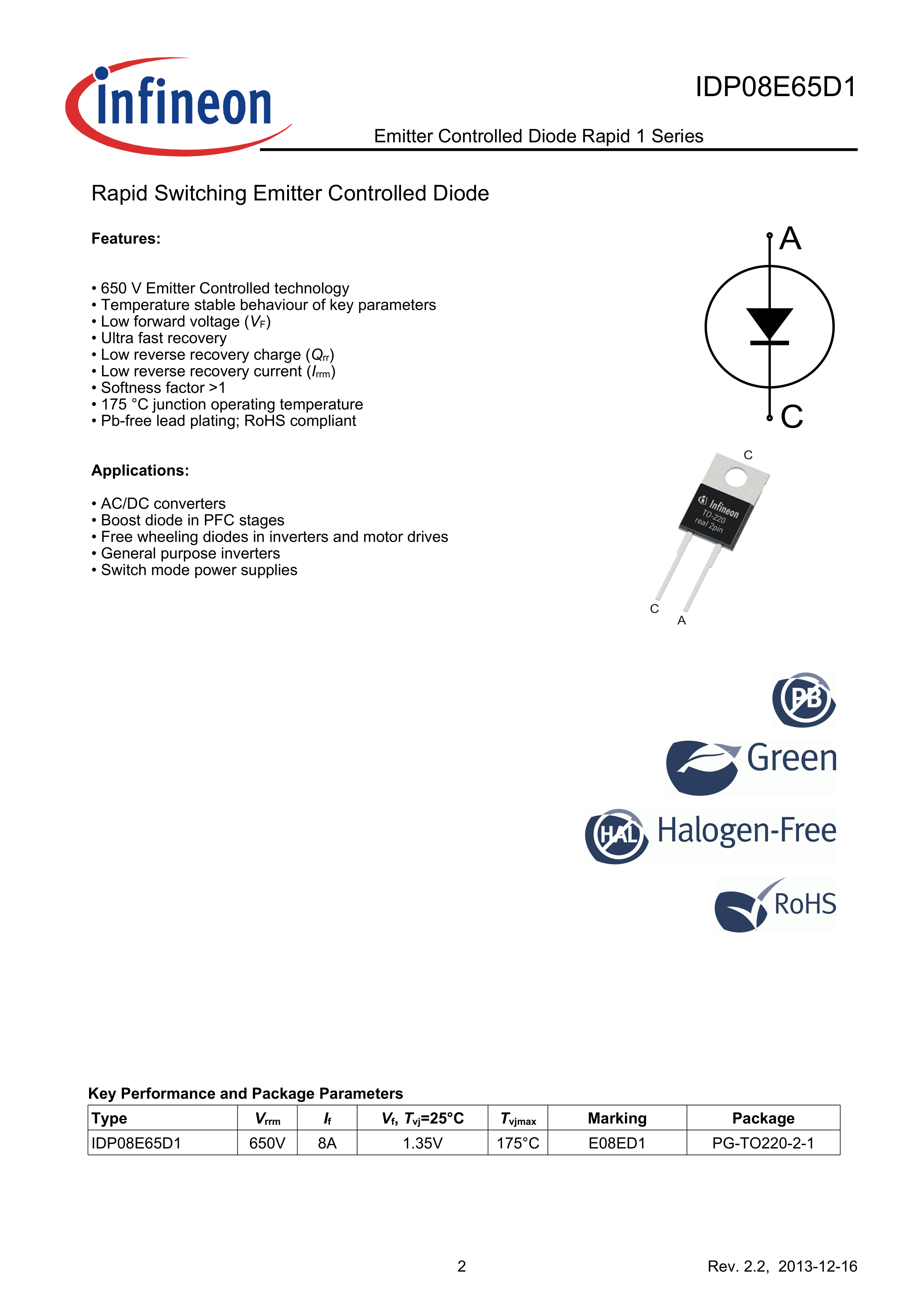IDP08E65D1数据手册PG-TO220-2-1封装Infineon(英飞凌)PDF规格书,中英