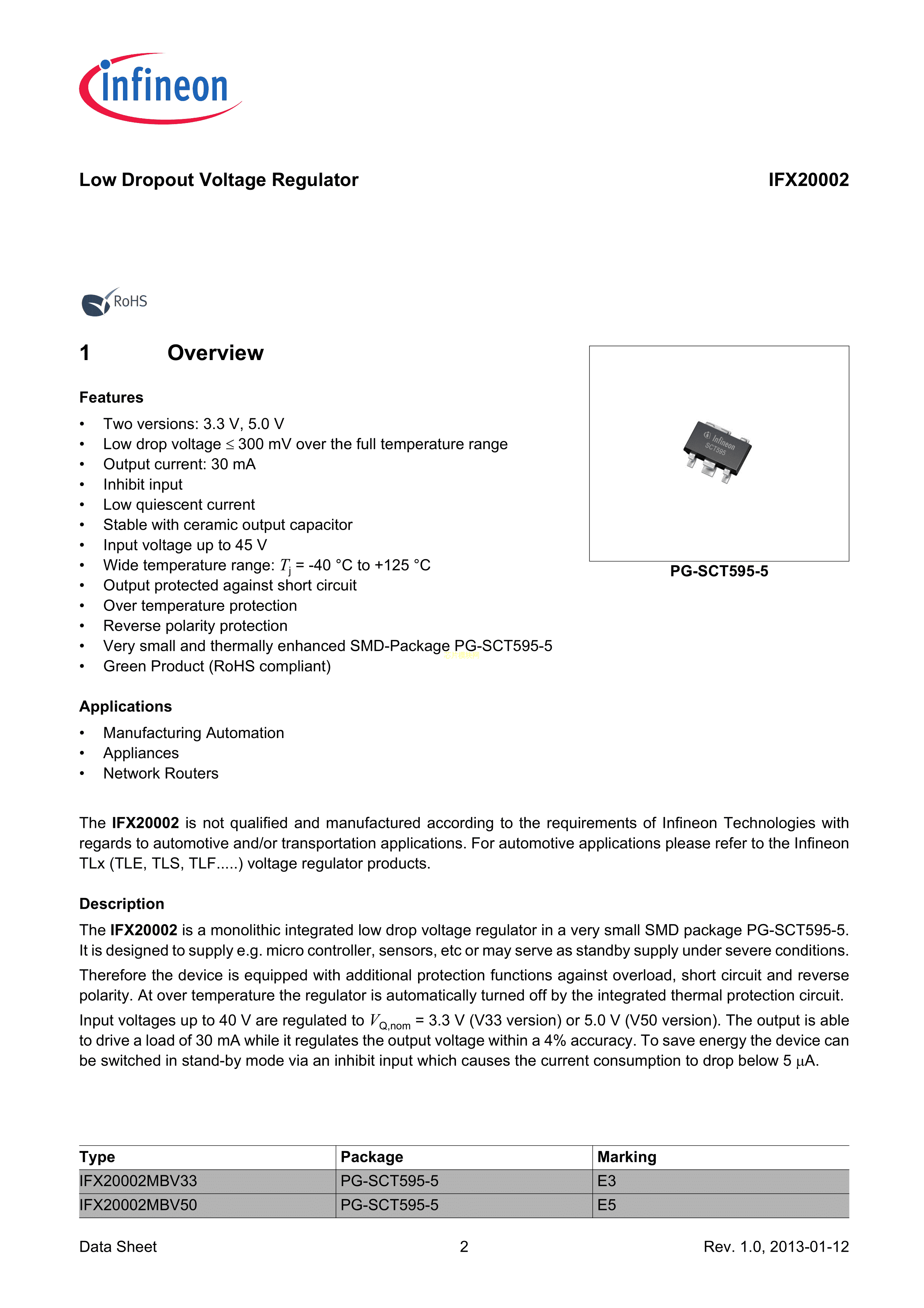 IFX20002MBV50数据手册PG-SCT595-5封装Infineon(英飞凌)PDF规格书,