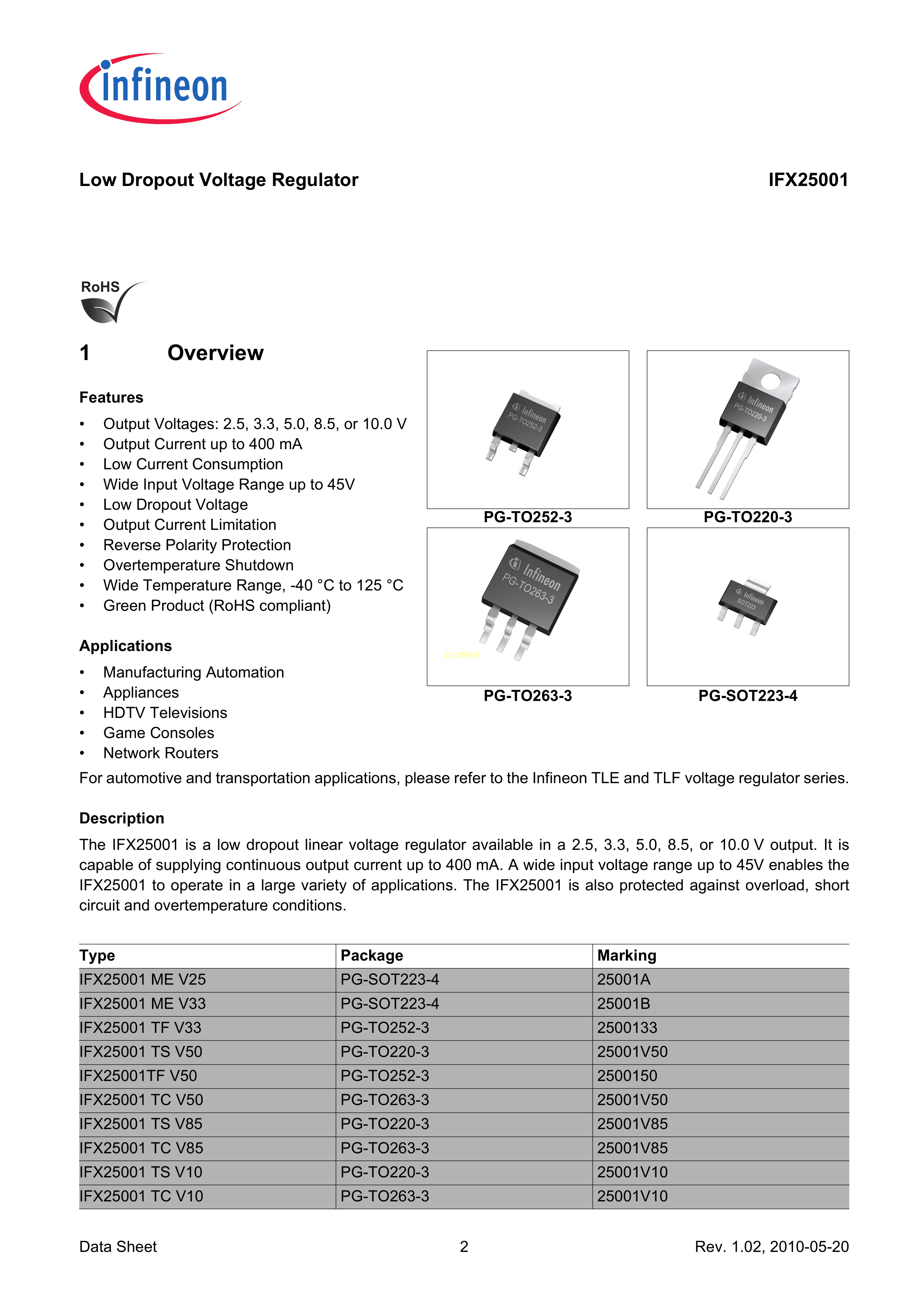 IFX25001ME V33数据手册SOT-223封装Infineon(英飞凌)PDF规格书,中英文