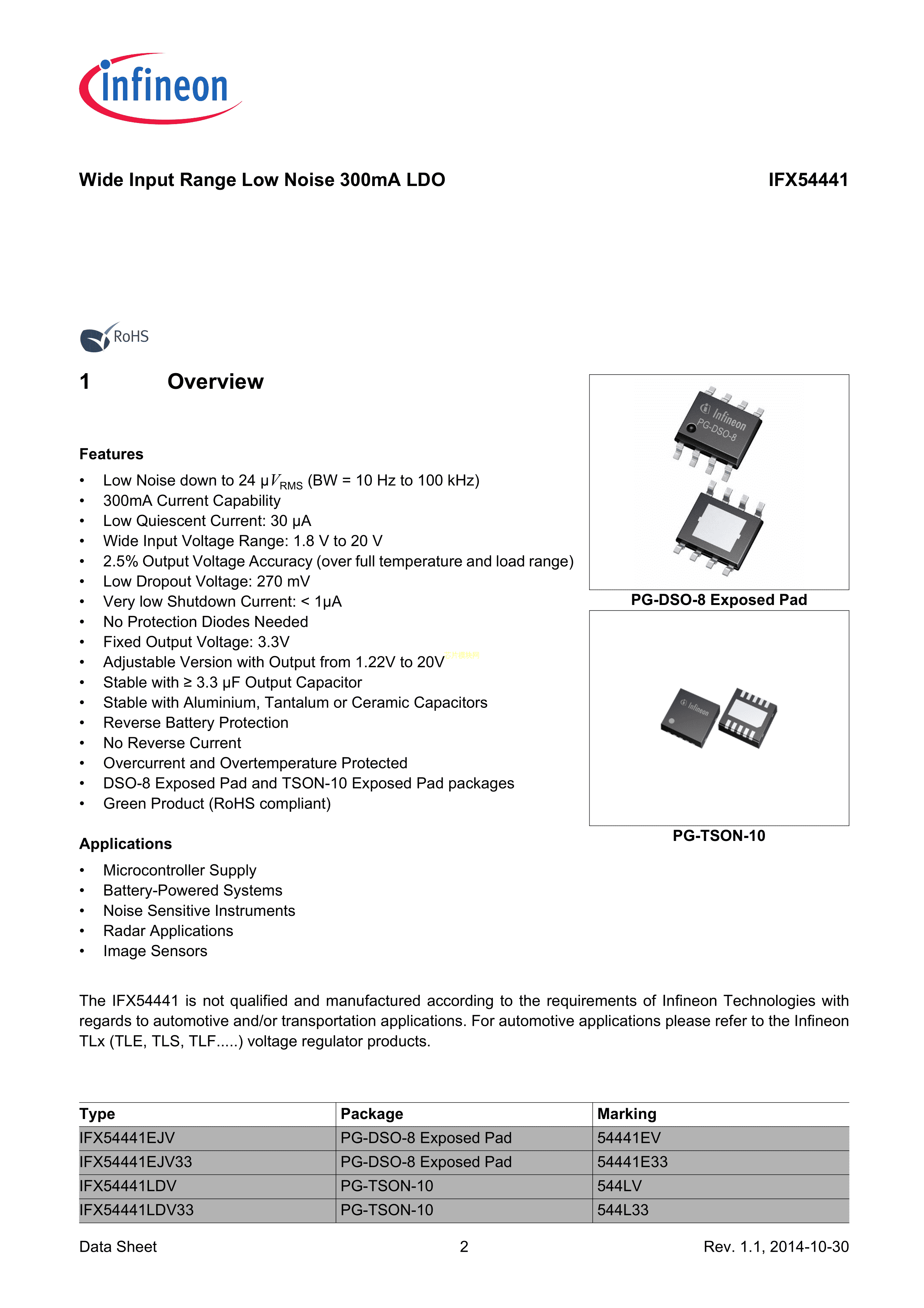 IFX54441EJ V33数据手册PG-DSO-8封装Infineon(英飞凌)PDF规格书,中英