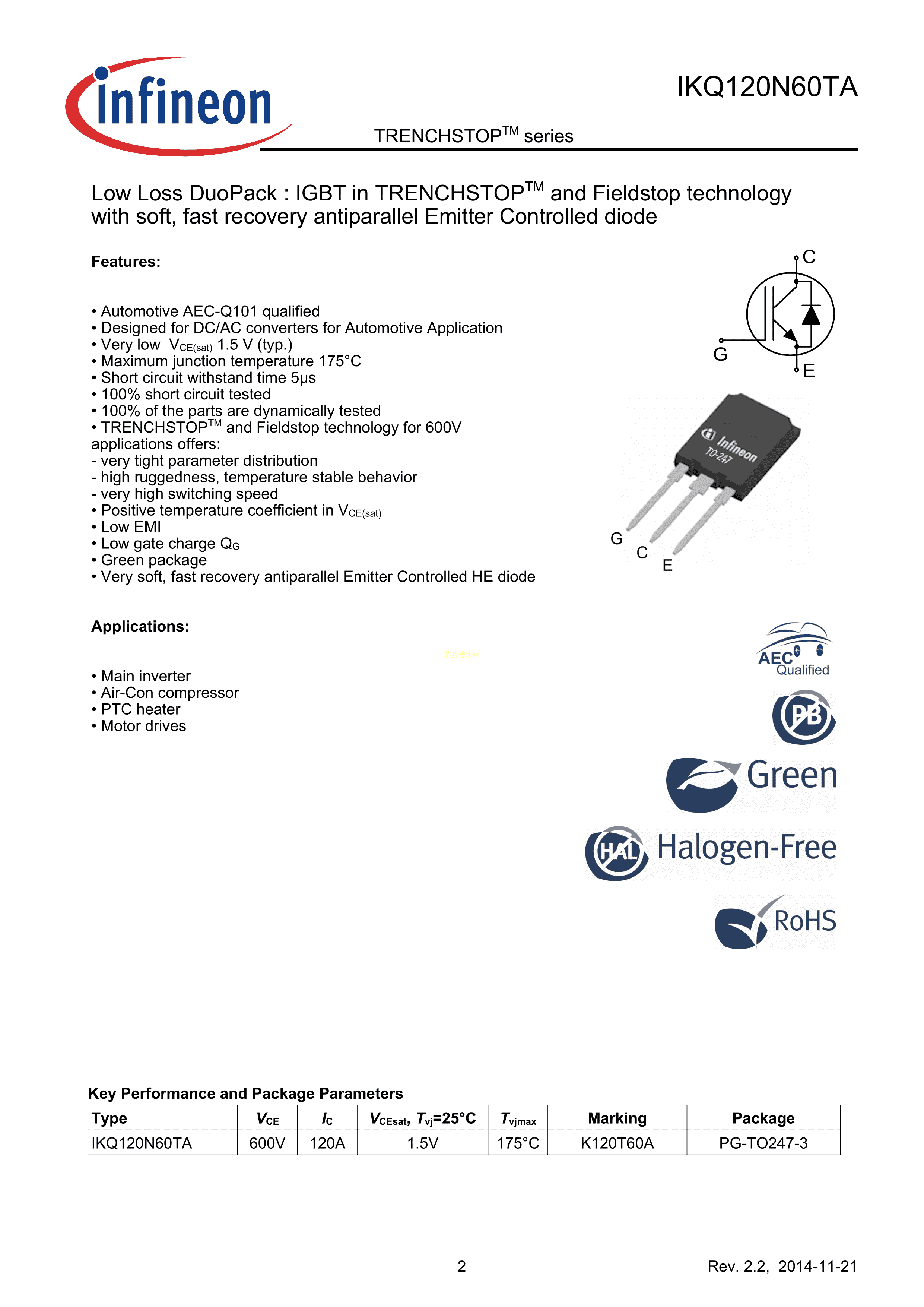 IKQ120N60TA数据手册PG-TO247-3封装Infineon(英飞凌)PDF规格书,中英文下载