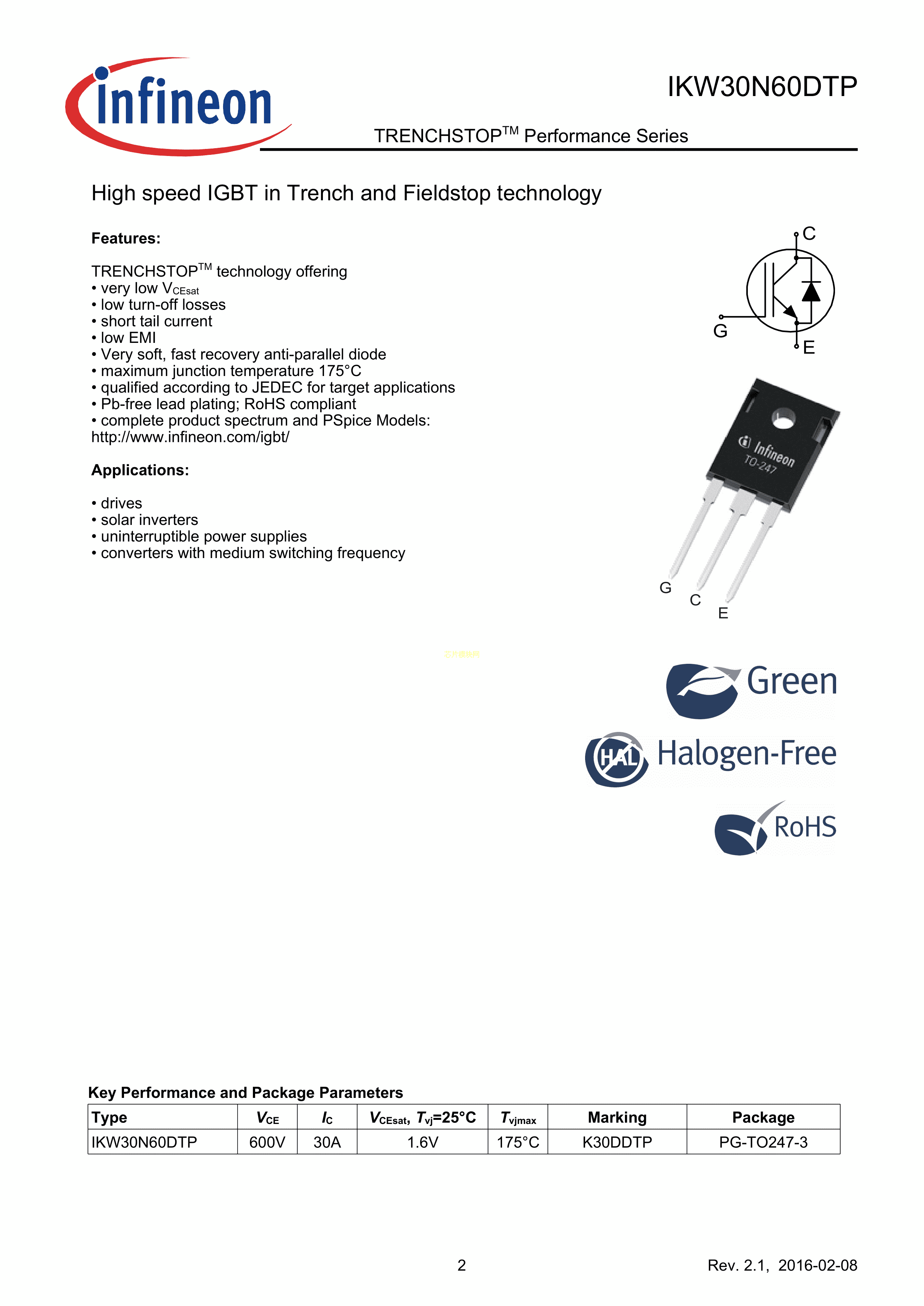 IKW30N60DTP数据手册PG-TO247-3封装Infineon(英飞凌)PDF规格书,中英文下载