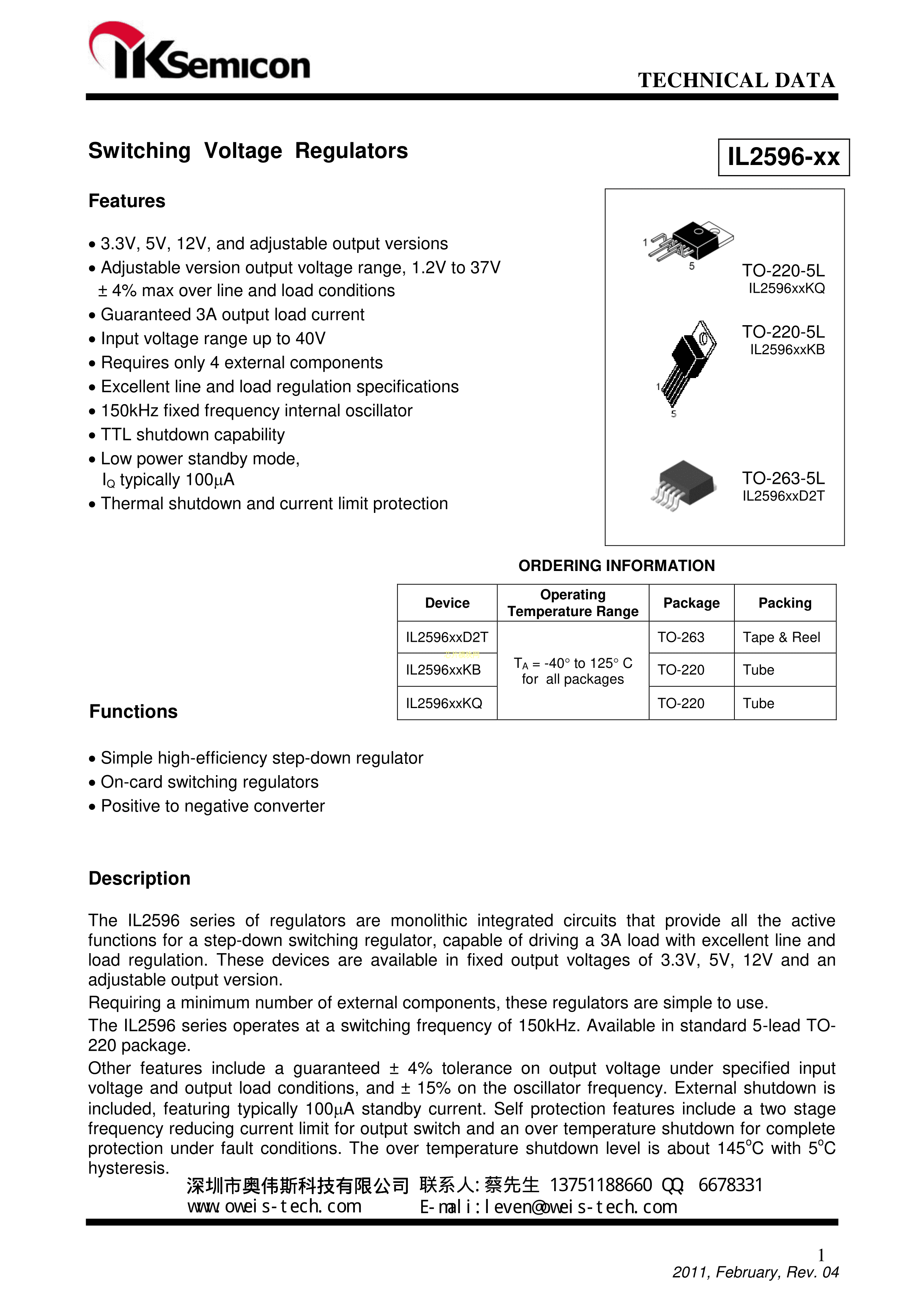 IL2596-5.0KB-P数据手册TO-220-5L封装IKSEMICONPDF规格书,中英文下载