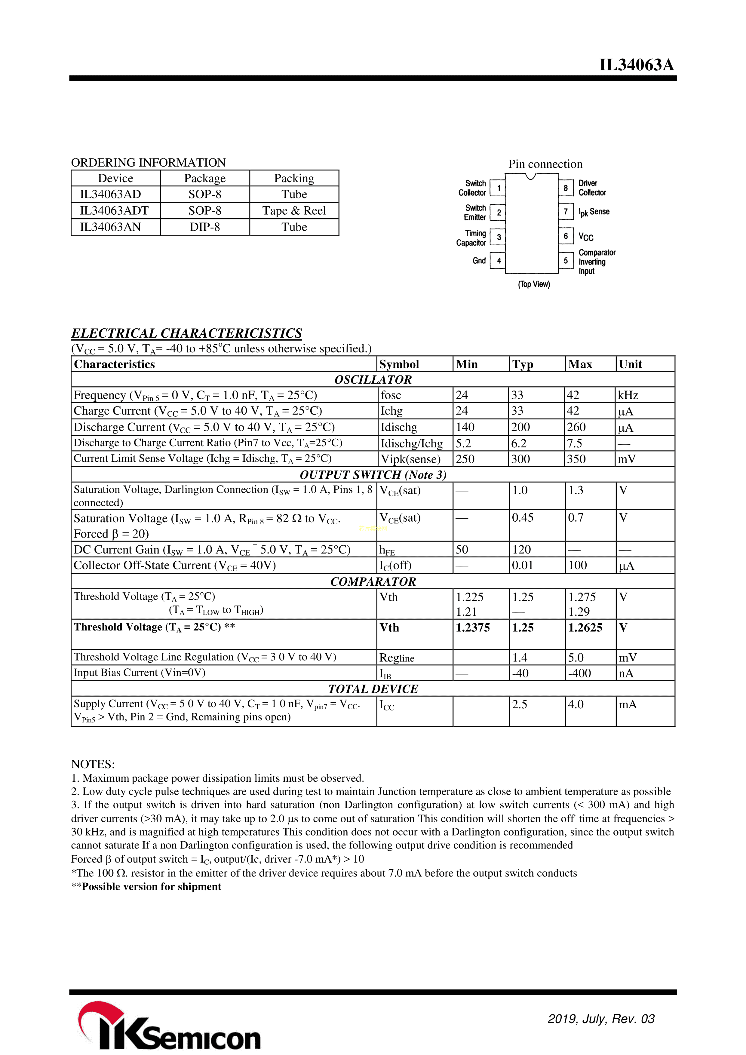 IL34063ADT数据手册SOP-8封装IKSEMICONPDF规格书,中英文下载