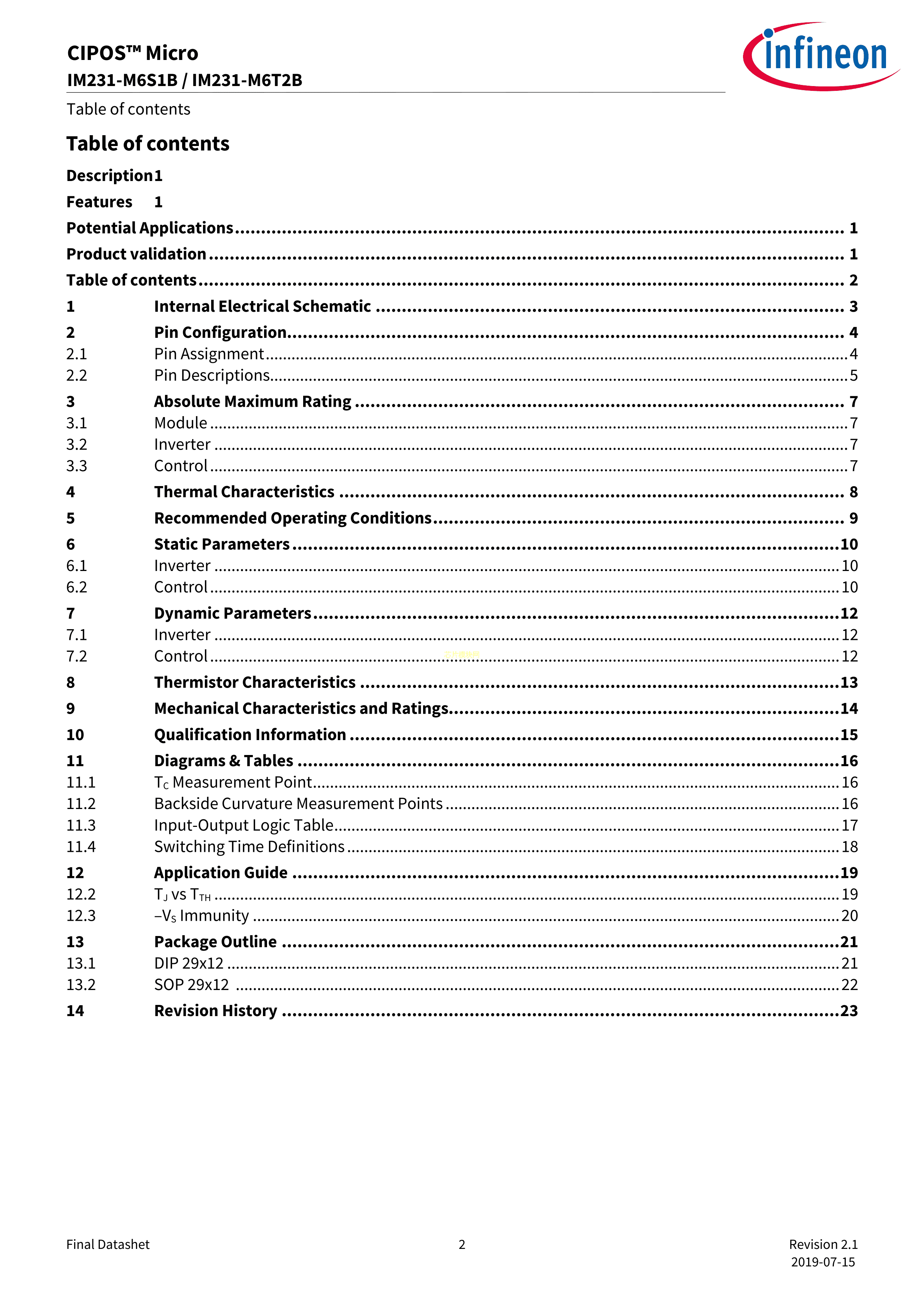 IM231M6S1BAUMA1数据手册SOP-23封装Infineon(英飞凌)PDF规格书,中英文