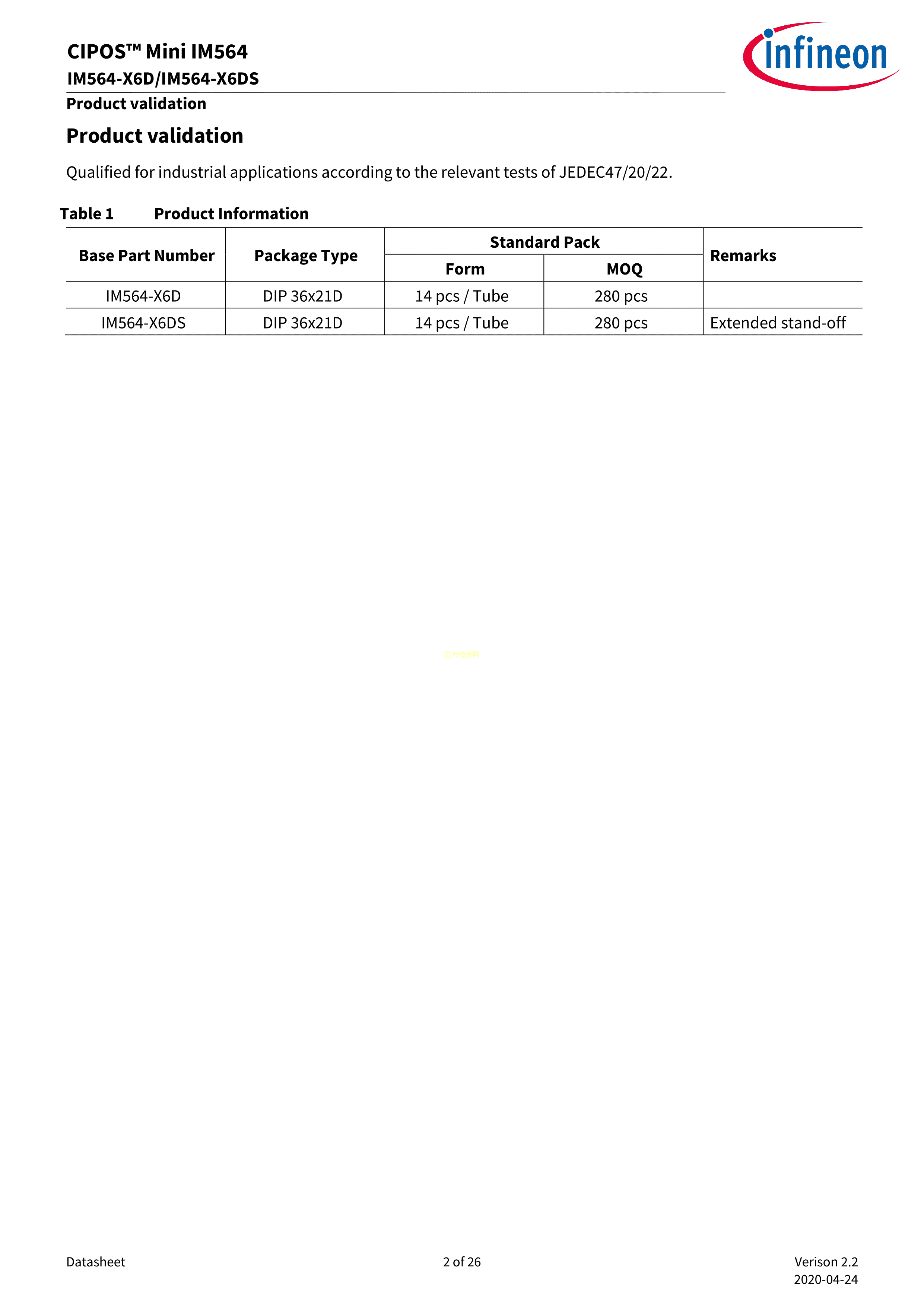 IM564-X6D数据手册DIP36x21D封装Infineon(英飞凌)PDF规格书,中英文下载