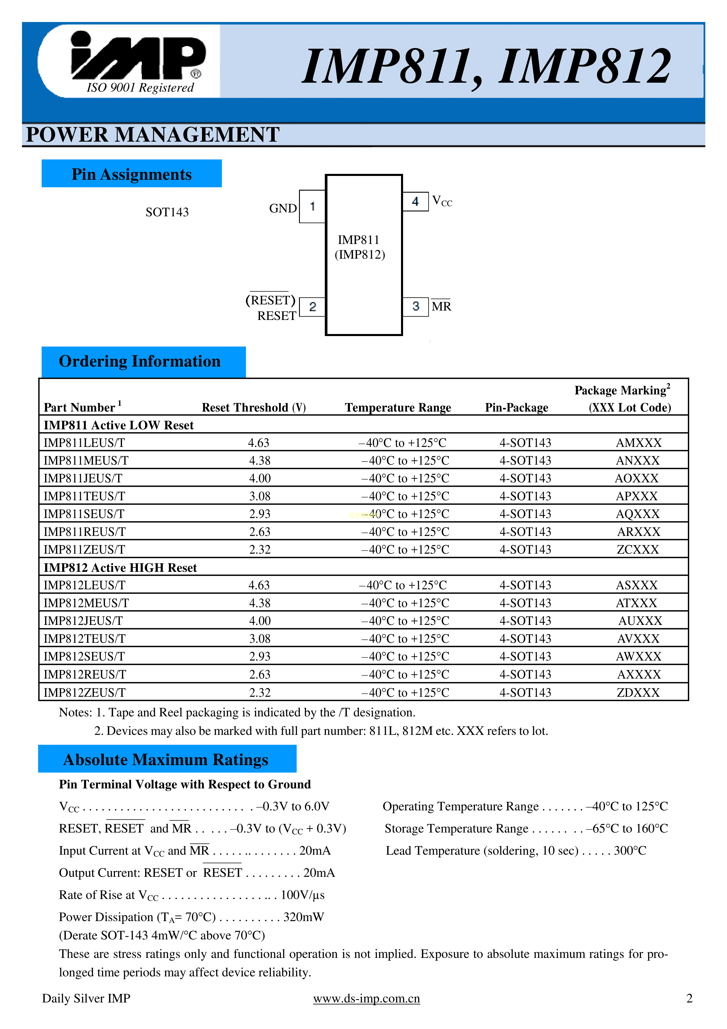 IMP812LEUS-T数据手册SOT-143封装IMP(日银IMP微电子)PDF规格书,中英文下载
