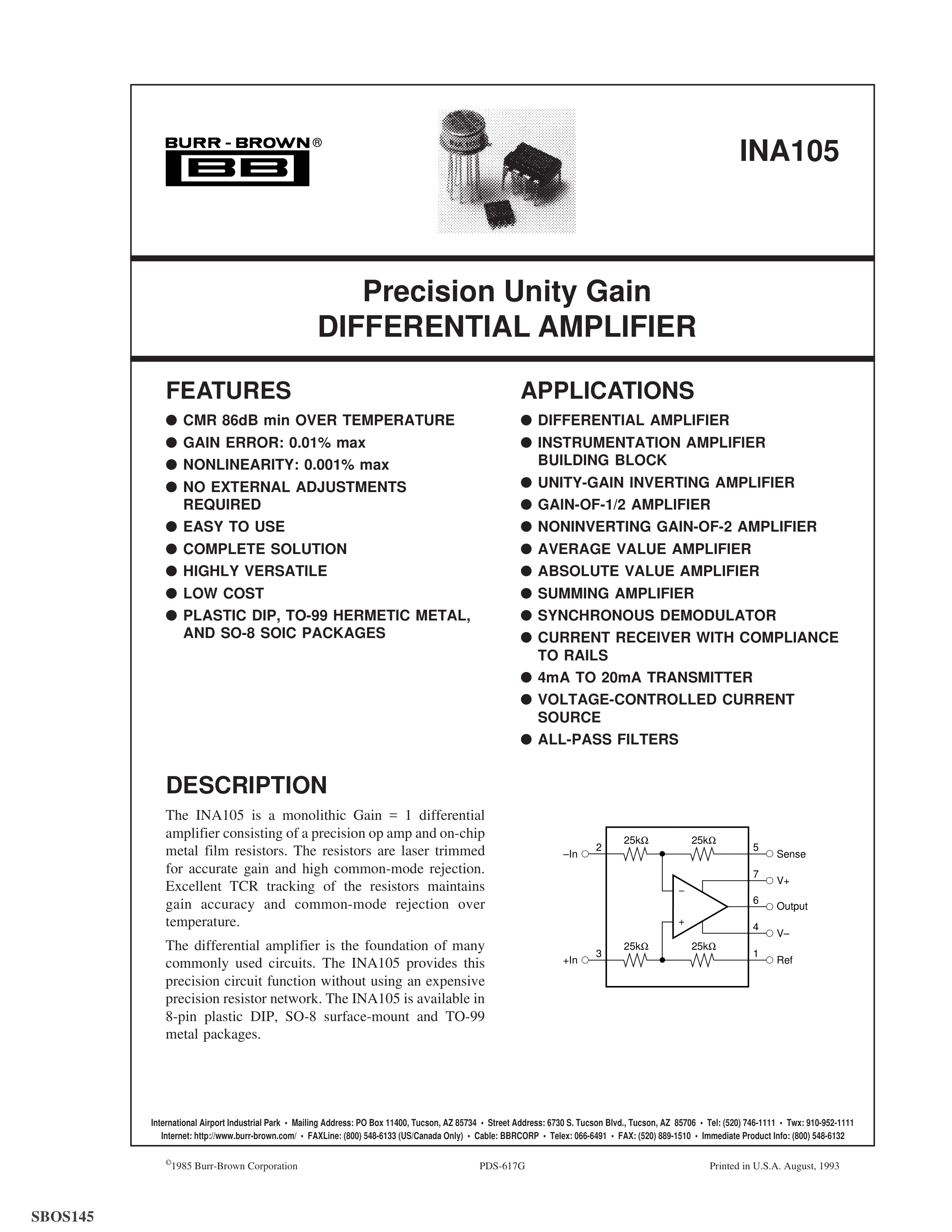 INA105KU-2K5数据手册SOIC-8封装TI(德州仪器)PDF规格书,中英文下载