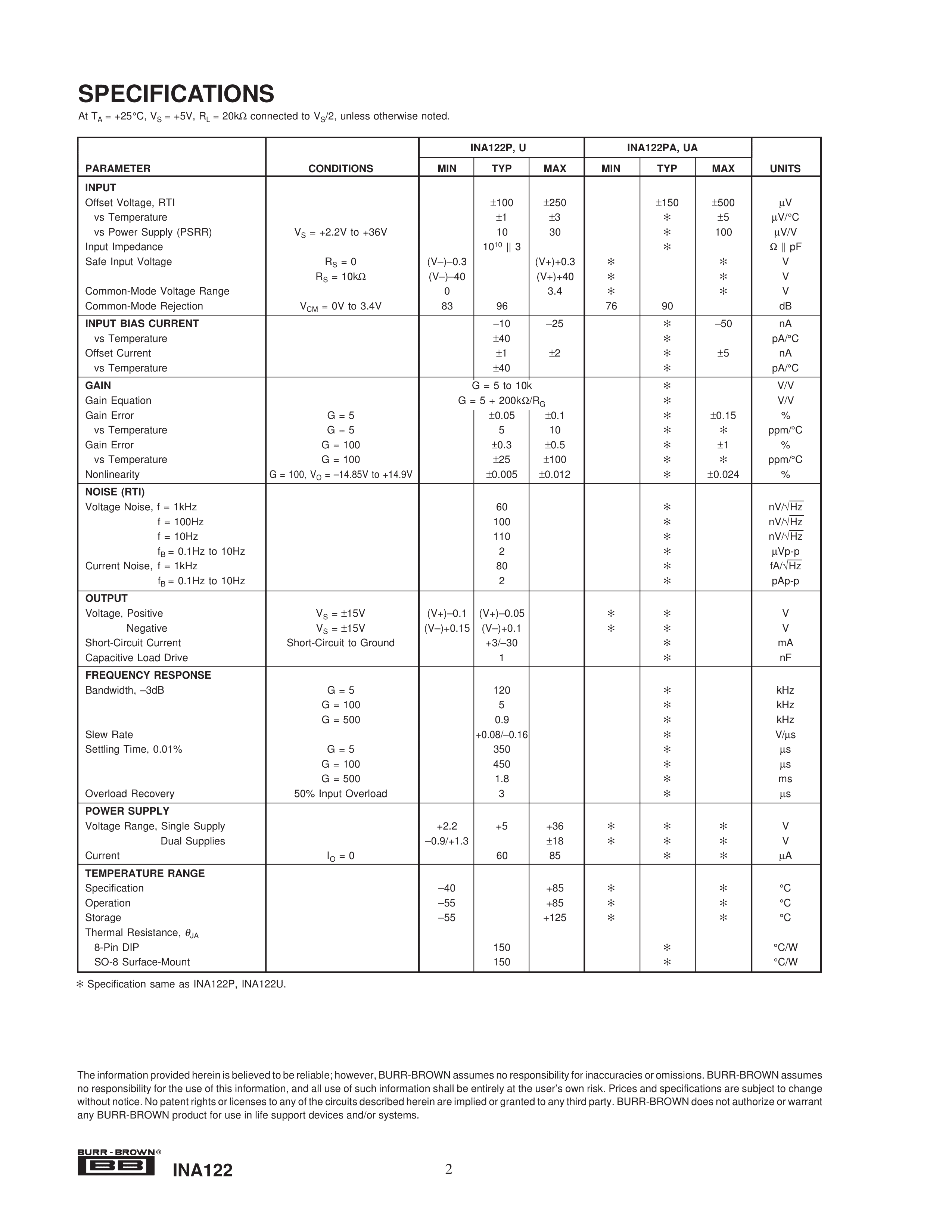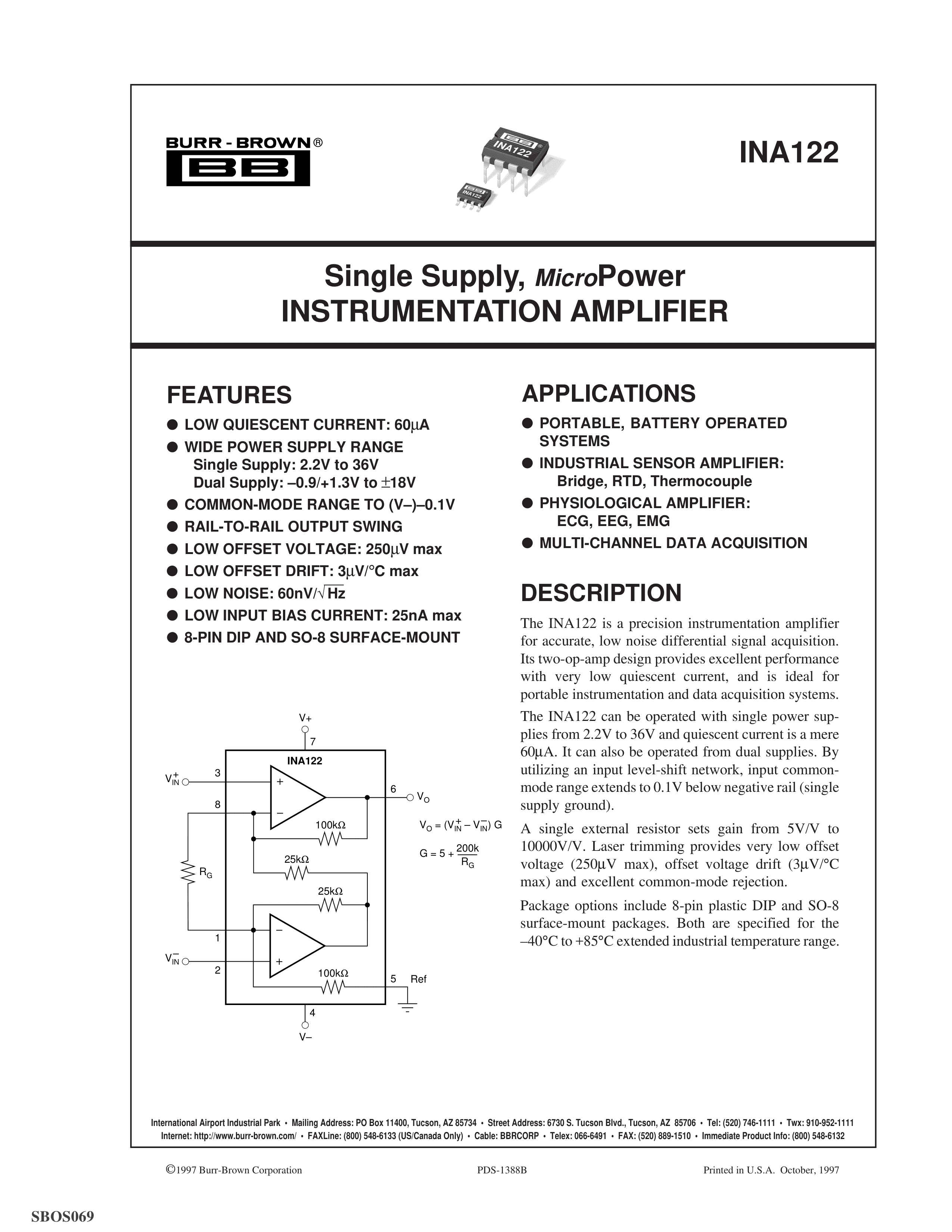 INA122UA-2K5数据手册SOP-8_150mil封装TI(德州仪器)PDF规格书,中英文下载