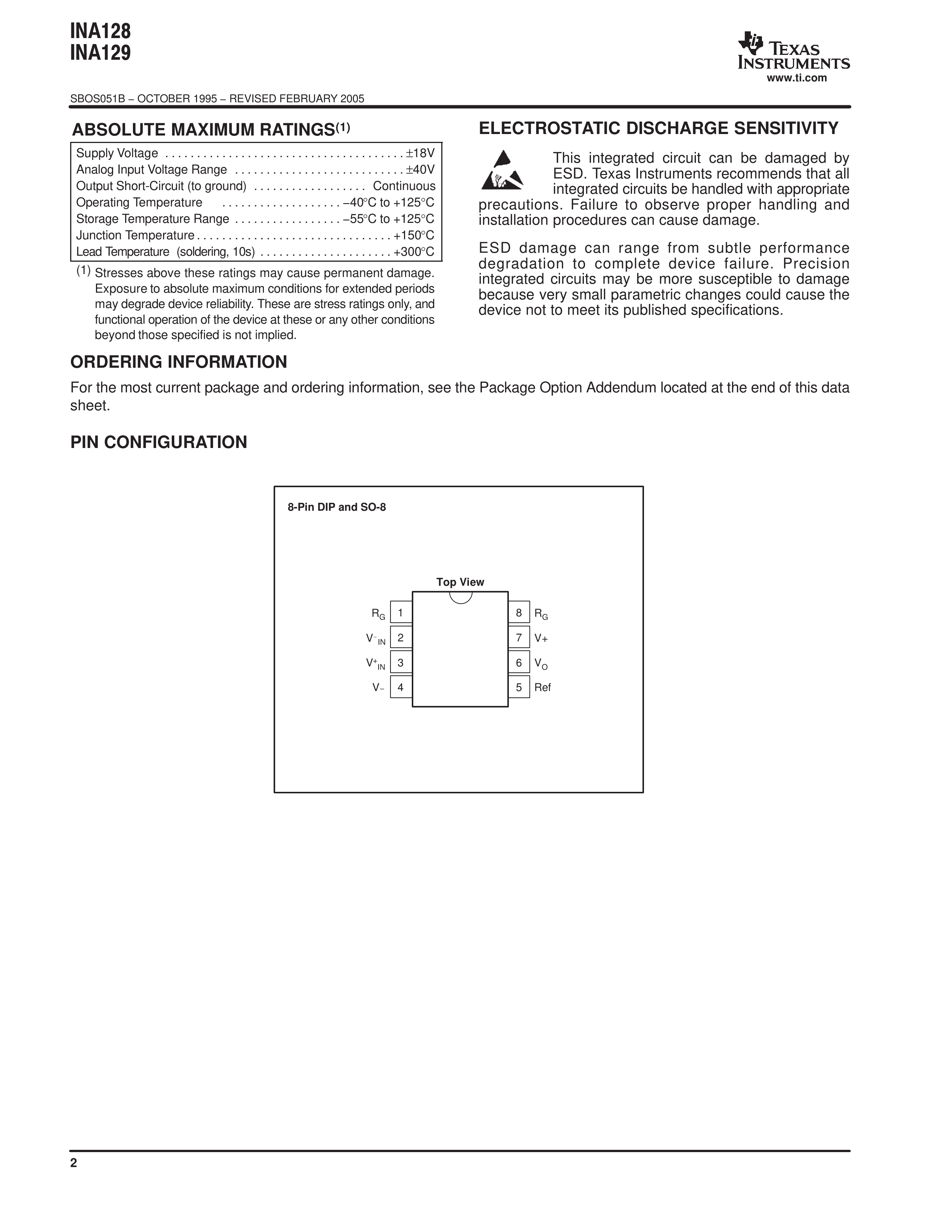 INA129UA-2K5数据手册SOIC-8_150mil封装TI(德州仪器)PDF规格书,中英文下