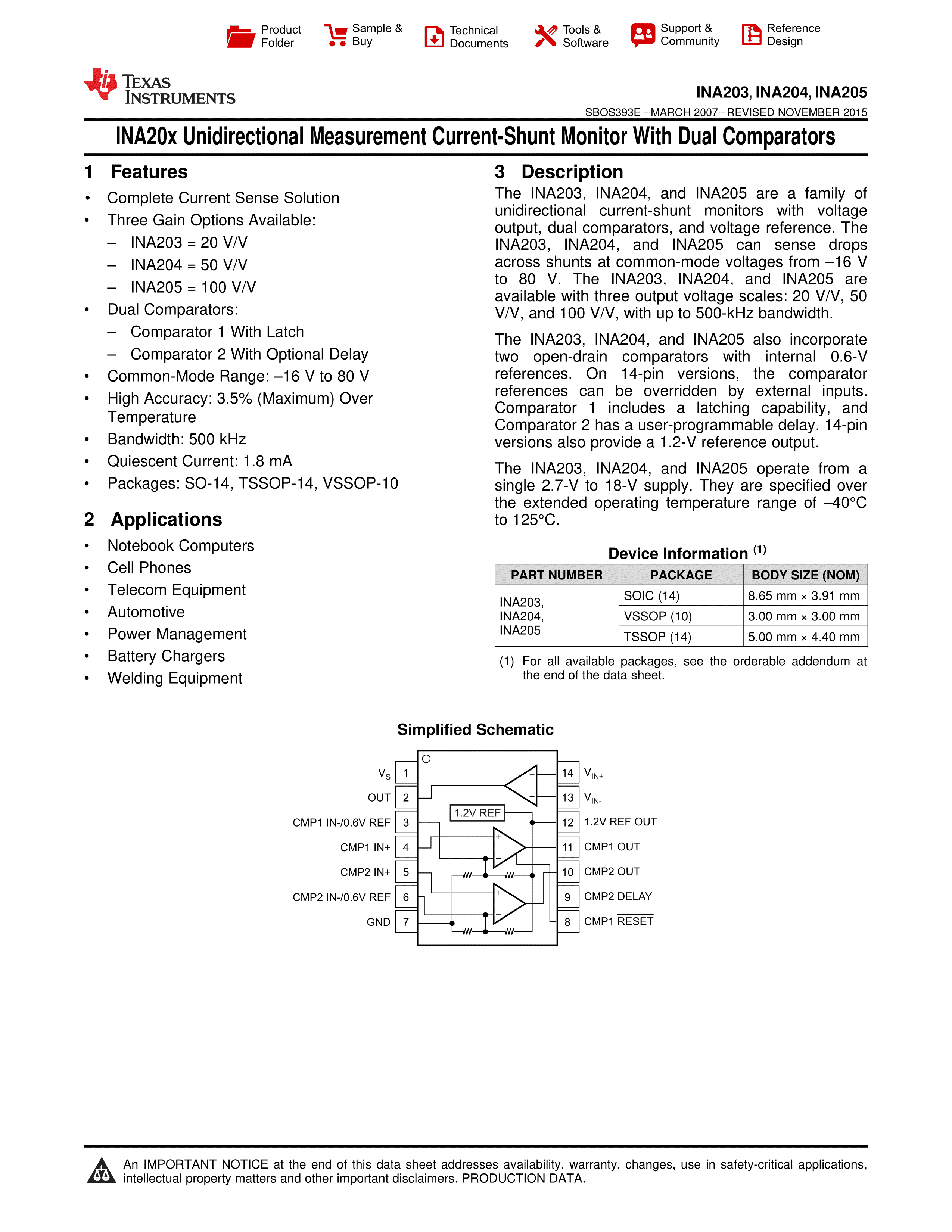 INA205AIPWR数据手册TSSOP-14封装TI(德州仪器)PDF规格书,中英文下载