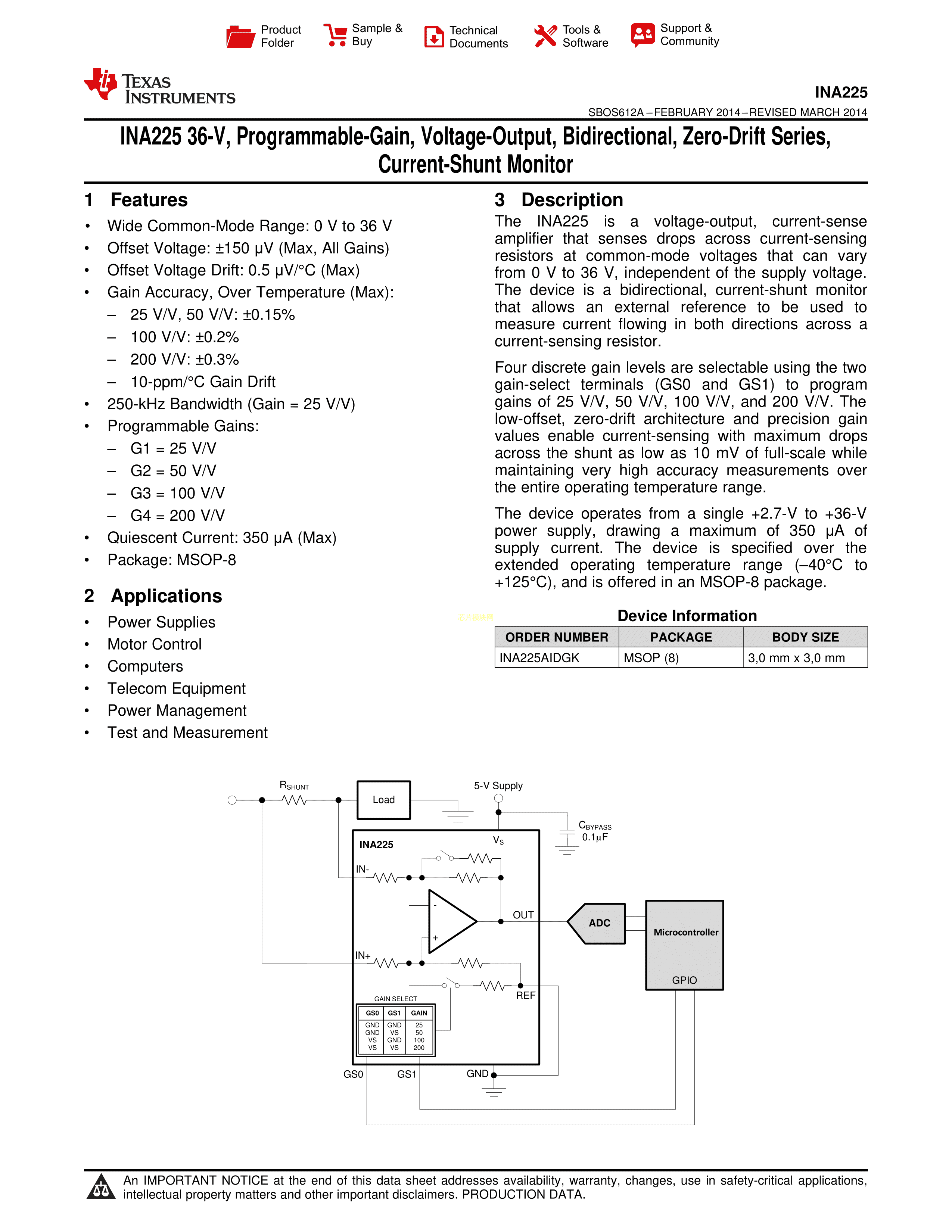 INA225AIDGKR数据手册VSSOP-8封装TI(德州仪器)PDF规格书,中英文下载