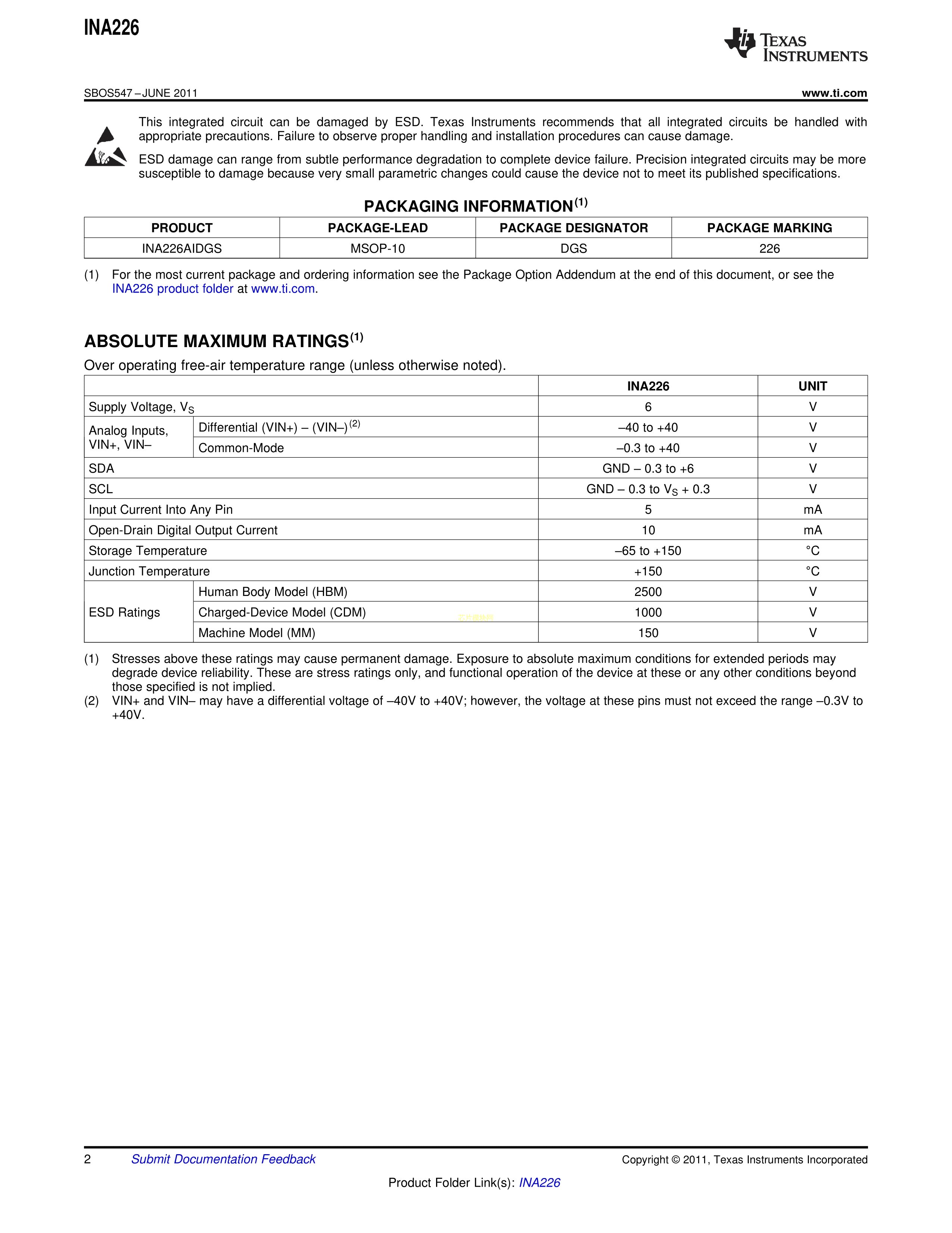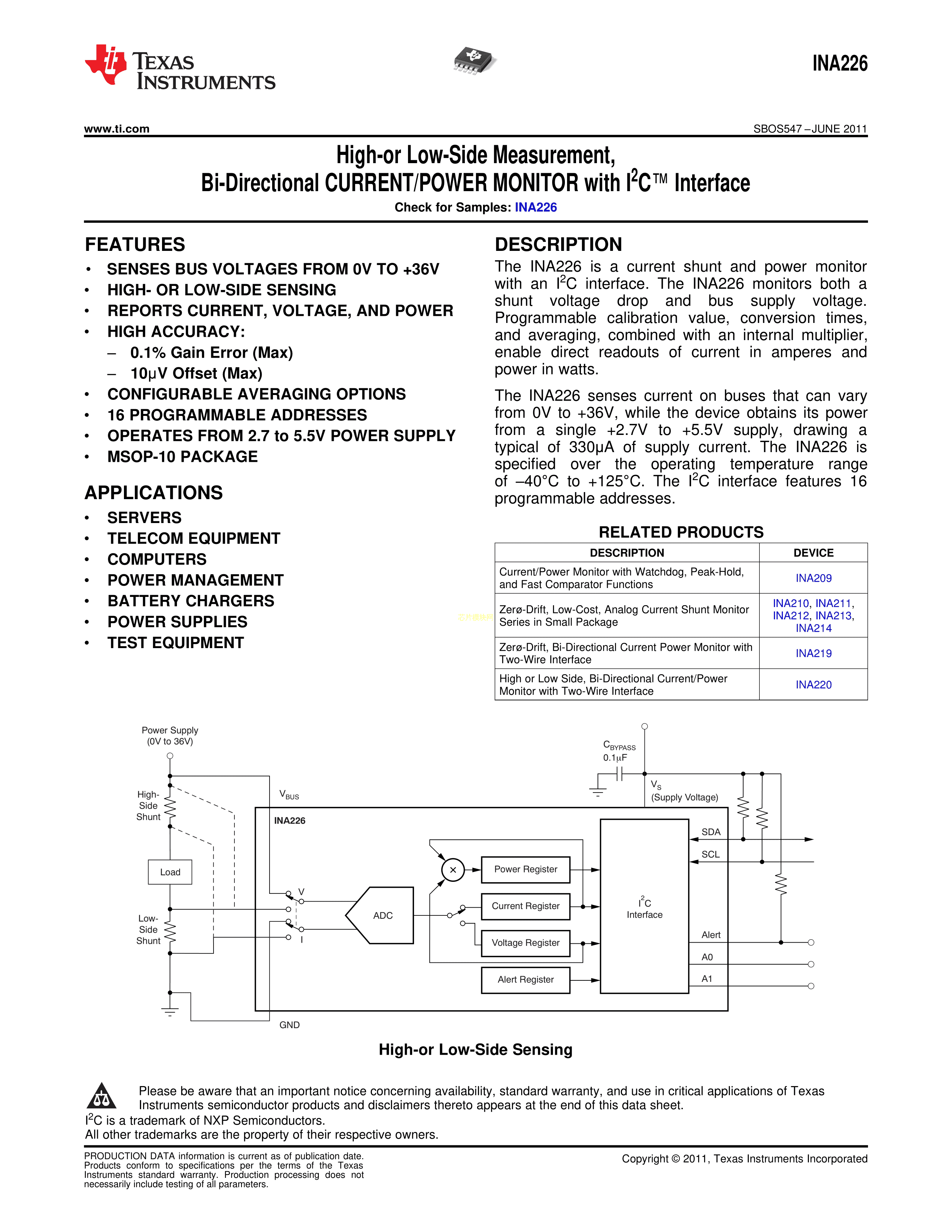 INA226AIDGSR数据手册MSOP-10封装TI(德州仪器)PDF规格书,中英文下载