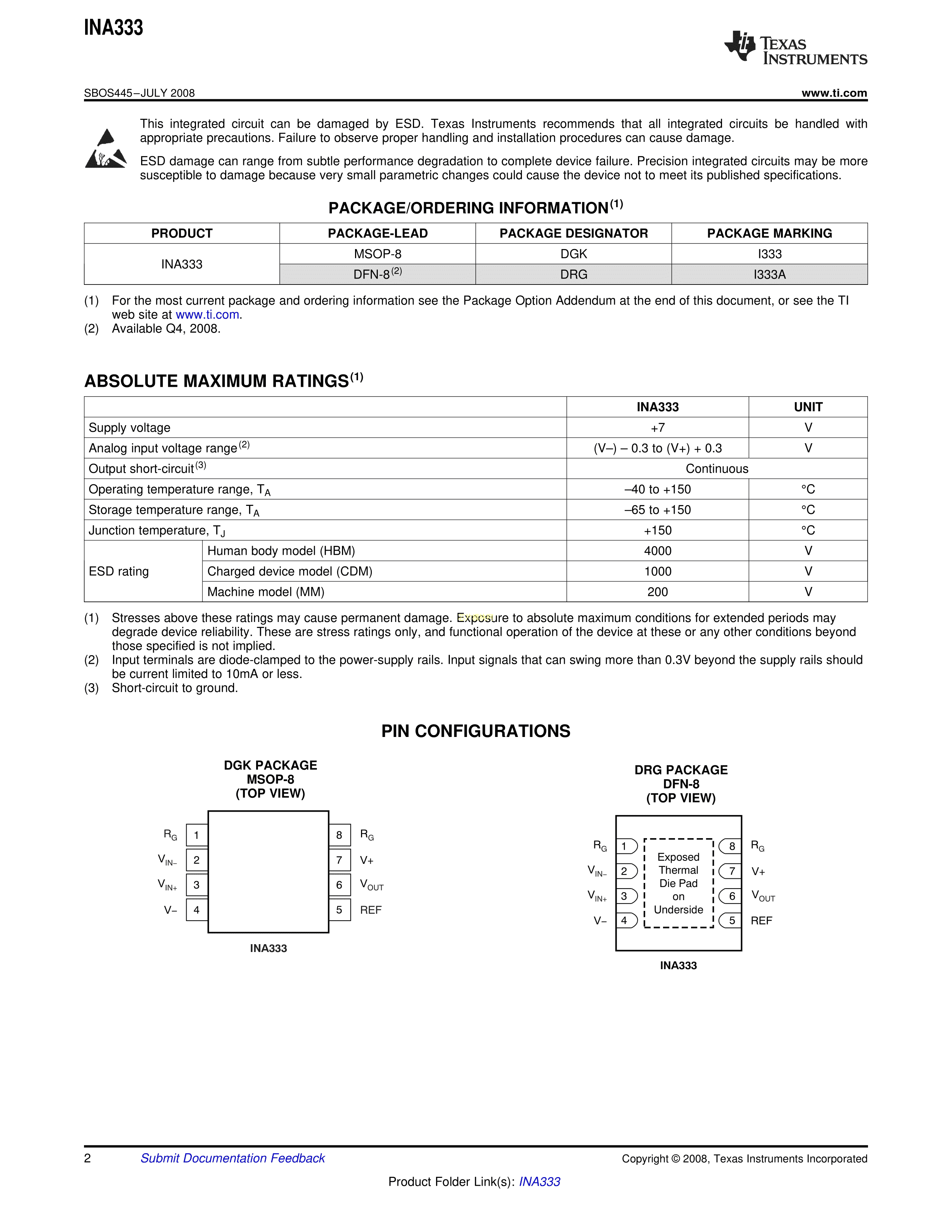 INA333AIDGKR数据手册VSSOP-8封装TI(德州仪器)PDF规格书,中英文下载