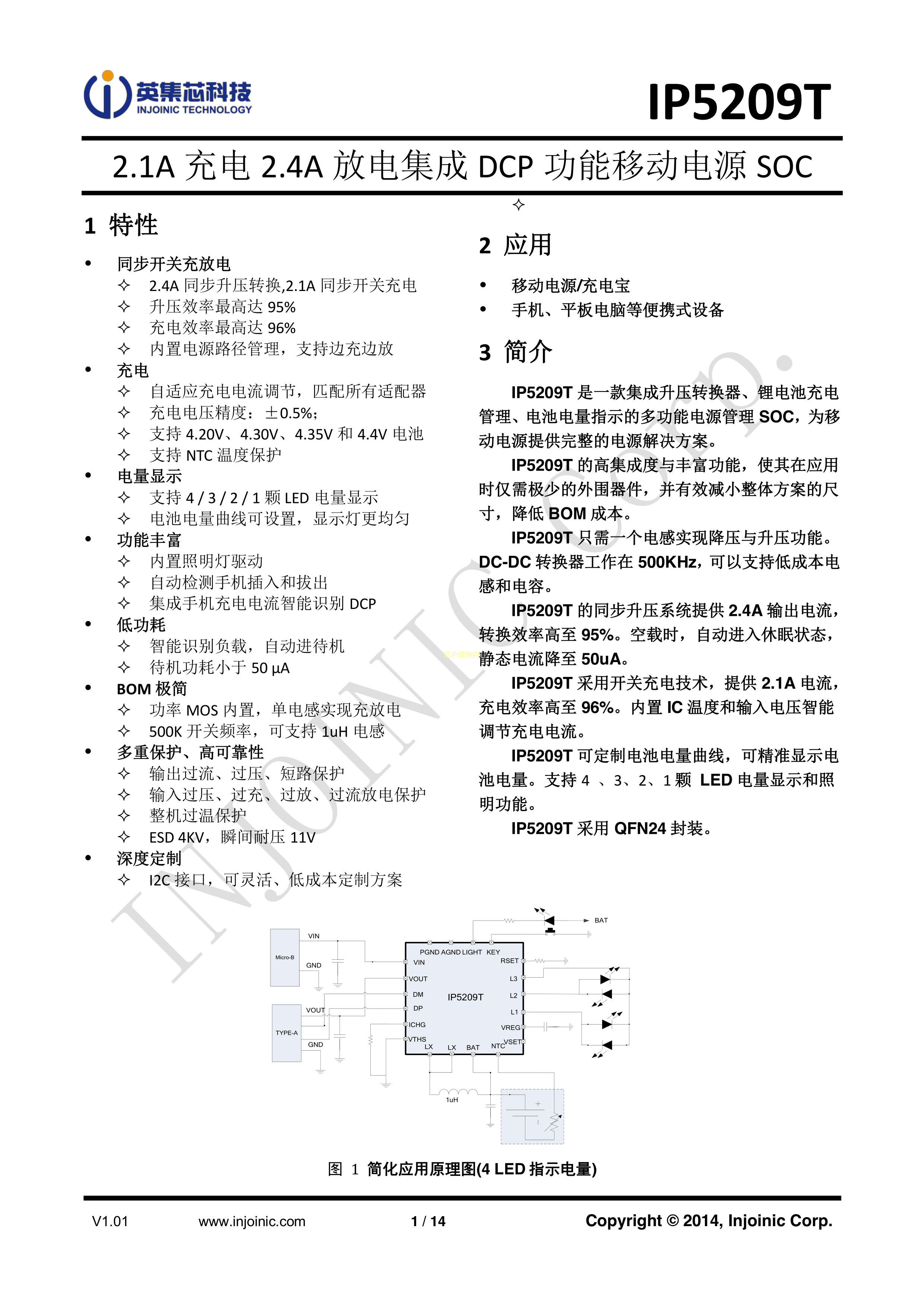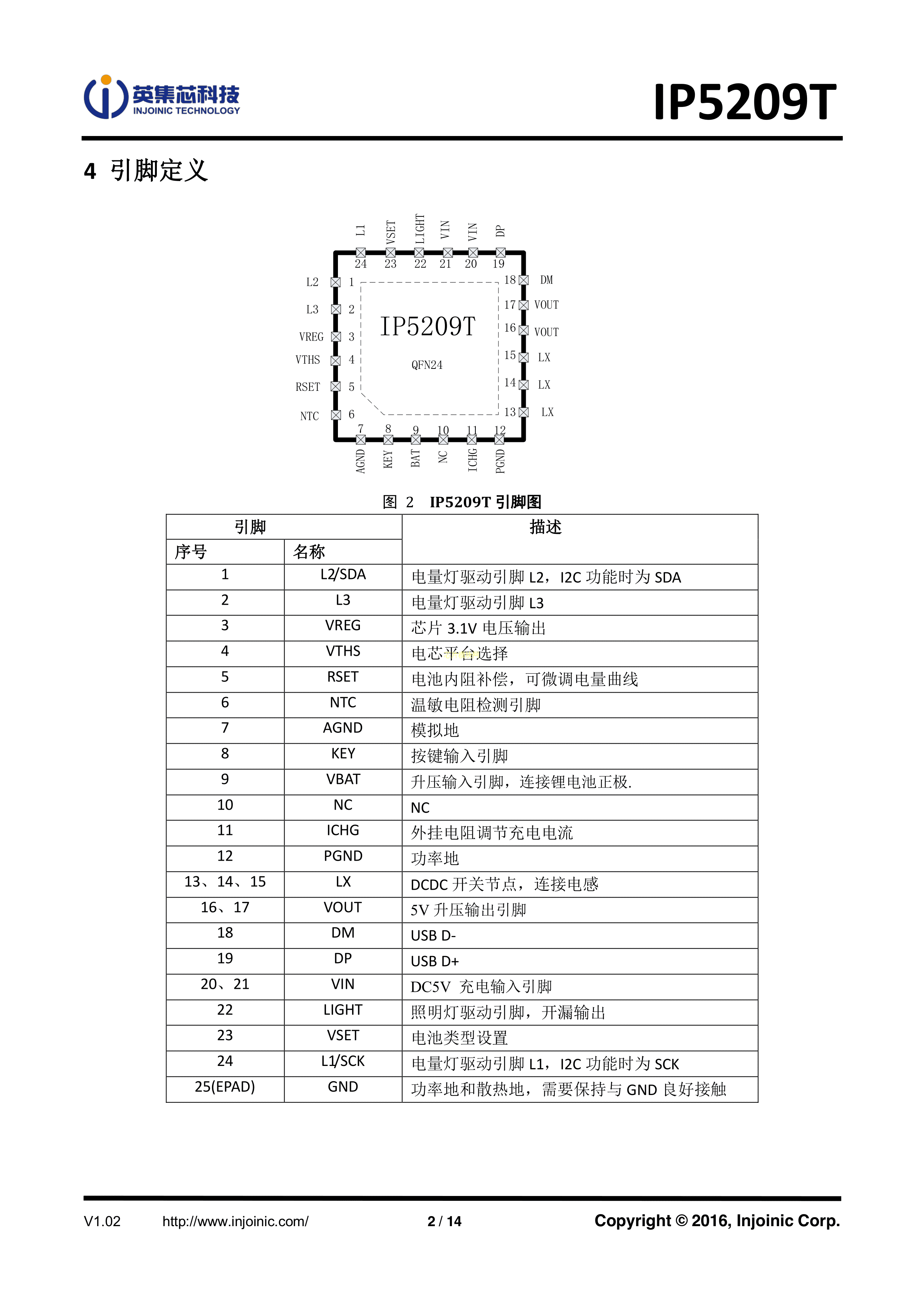 IP5209T数据手册QFN-24封装INJOINIC(英集芯)PDF规格书,中英文下载