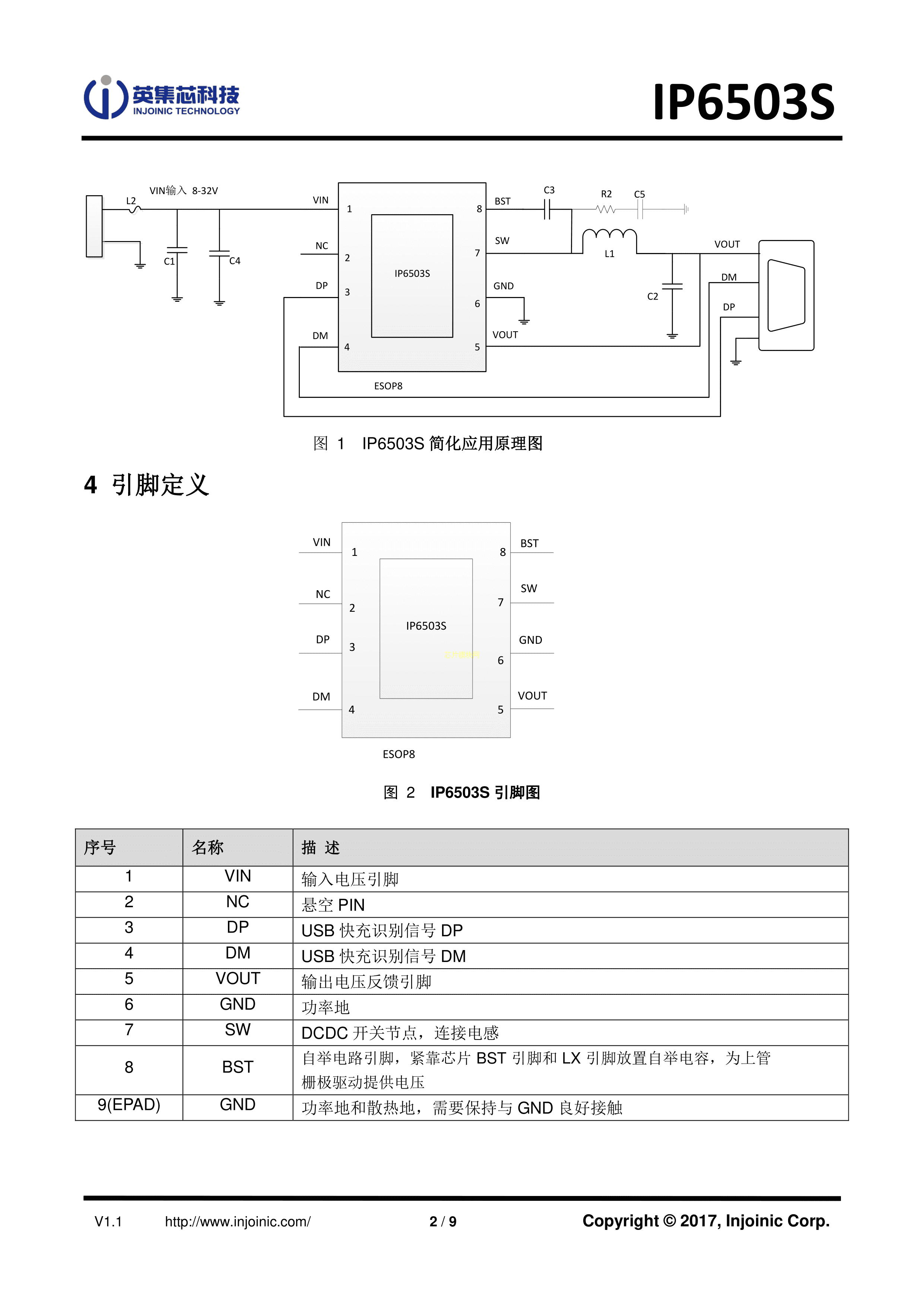 IP6503S数据手册ESOP-8L封装INJOINIC(英集芯)PDF规格书,中英文下载