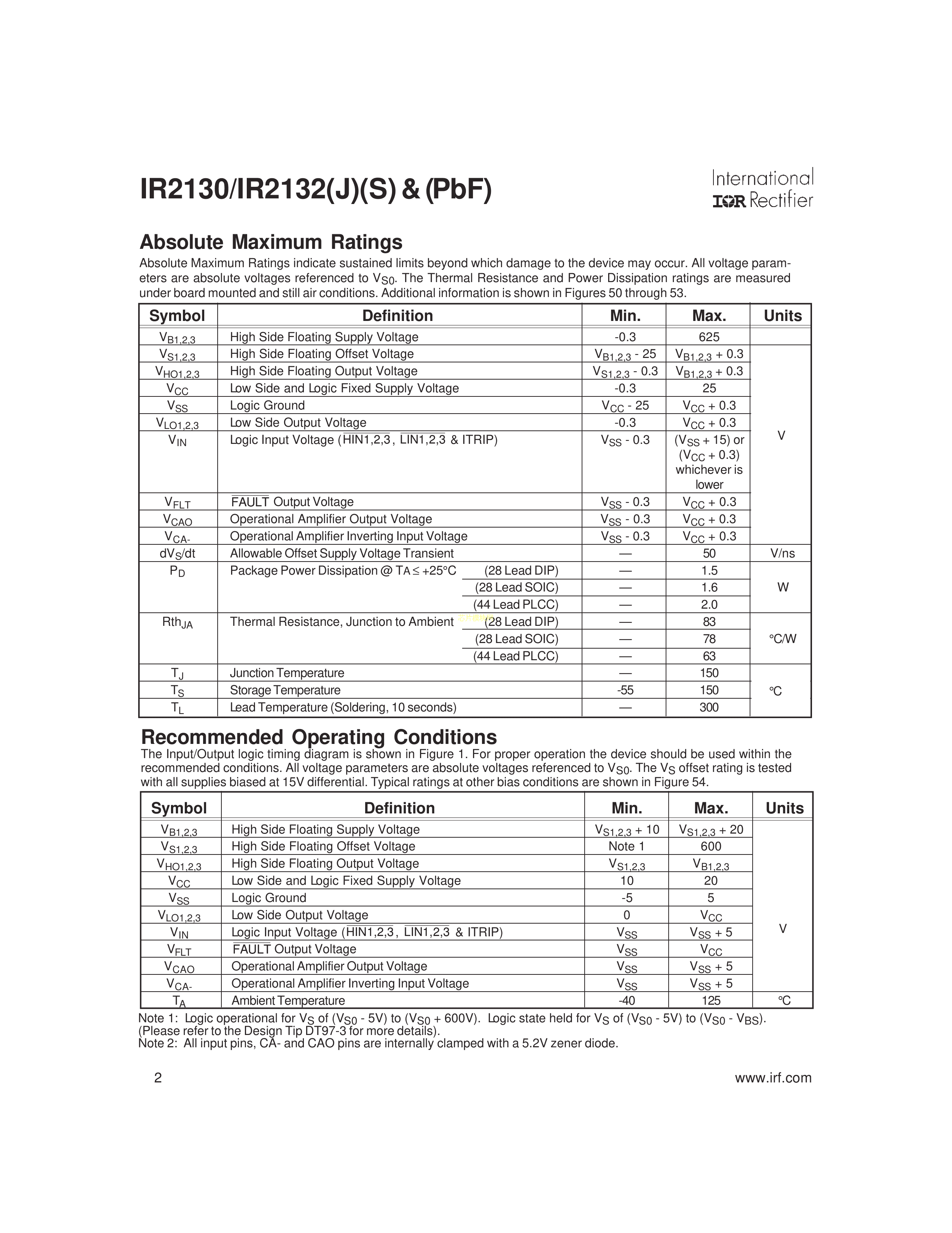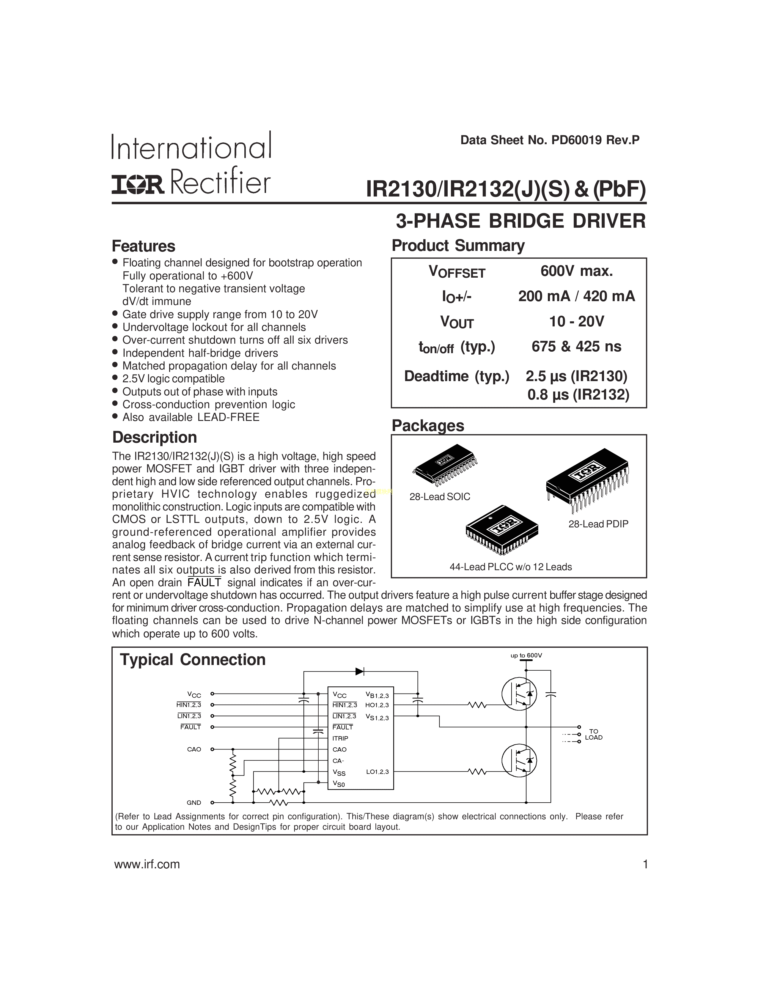 IR2130SPBF数据手册SOIC-28W封装Infineon(英飞凌)PDF规格书,中英文下载