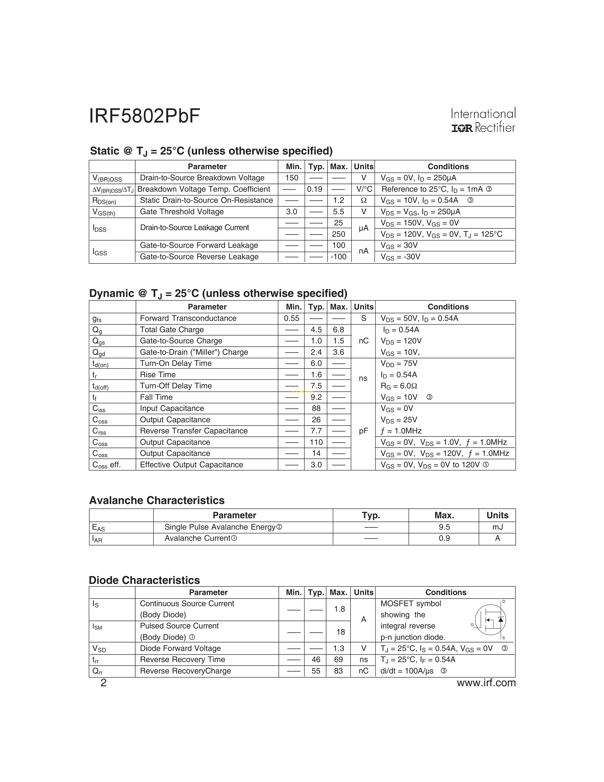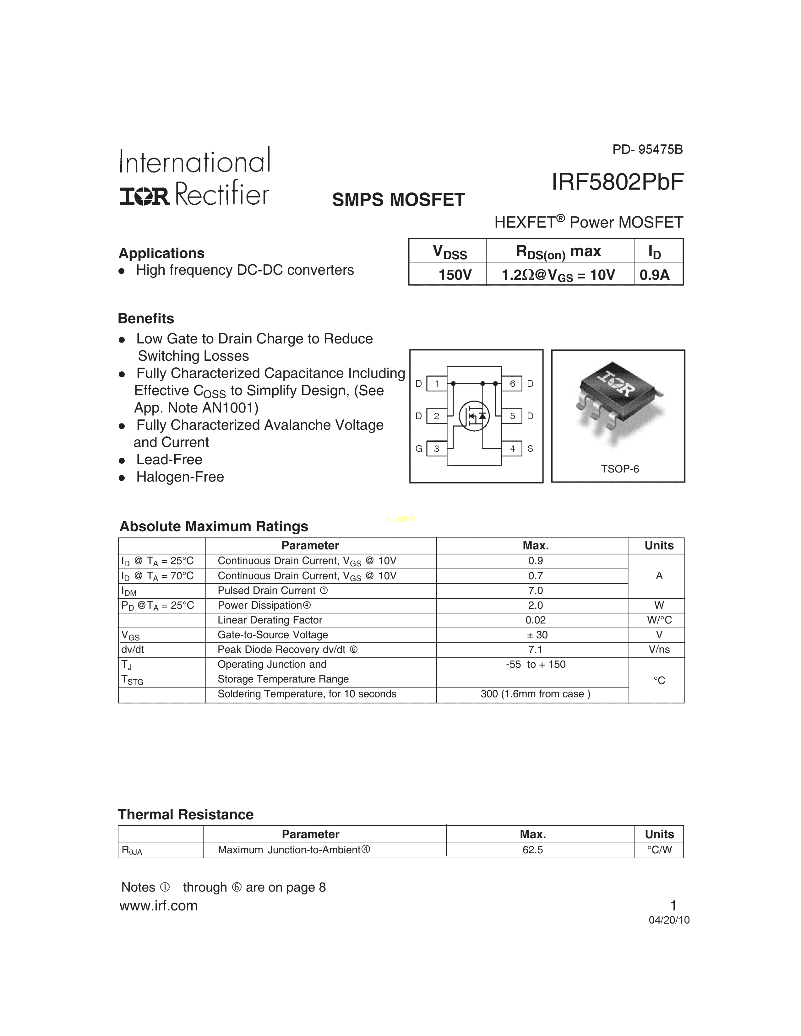IRF5802TRPBF数据手册TSOP-6封装Infineon(英飞凌)PDF规格书,中英文下载