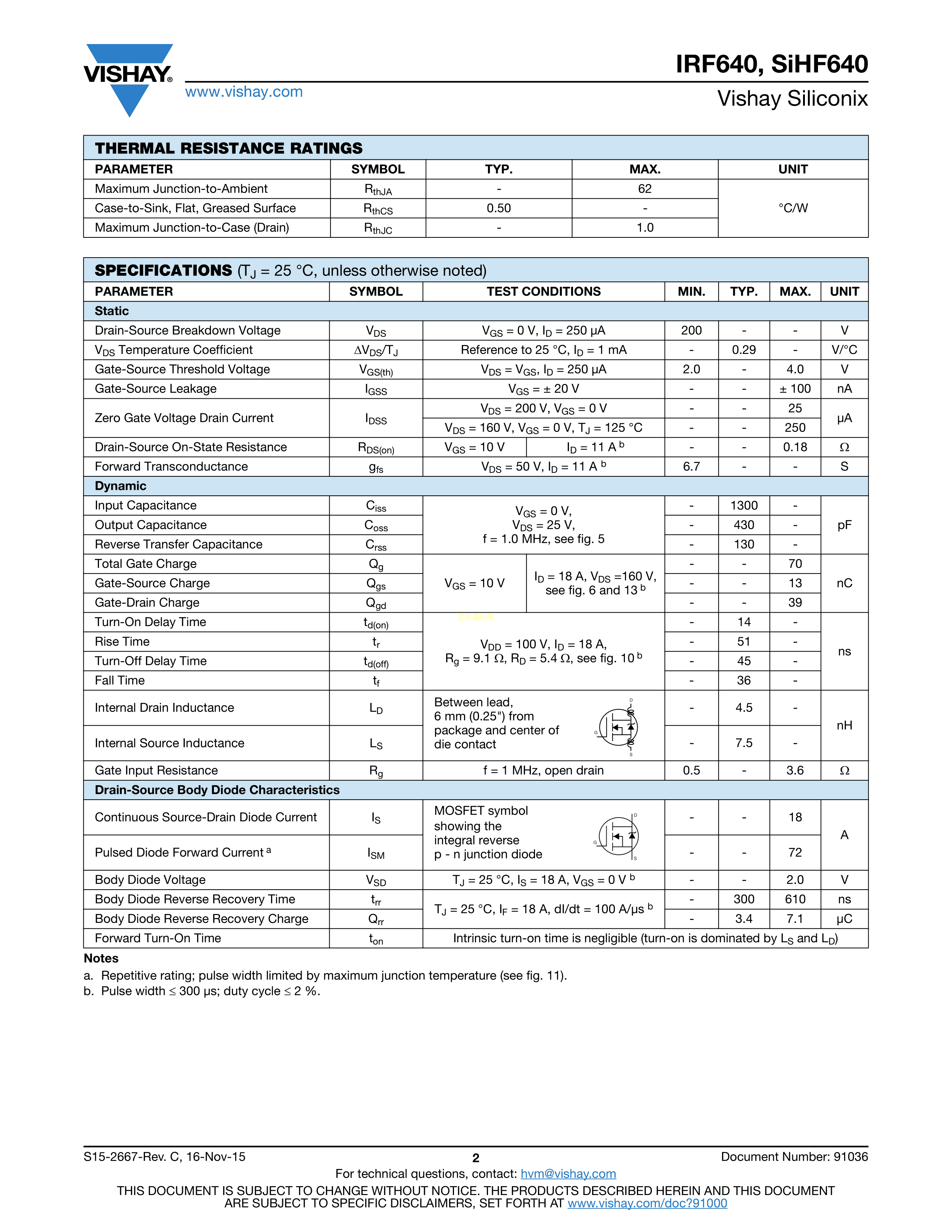 IRF640PBF数据手册TO-220AB封装VISHAY(威世)PDF规格书,中英文下载