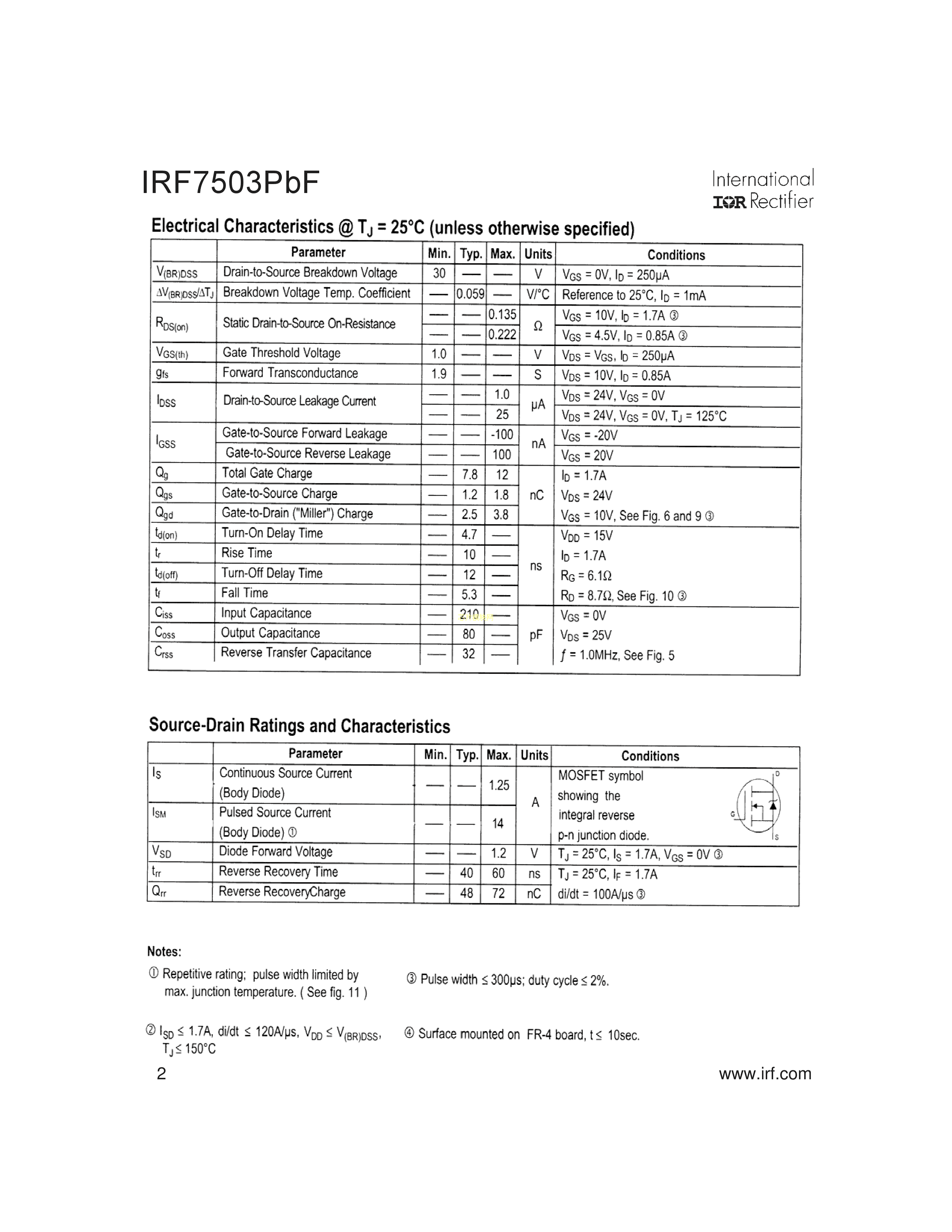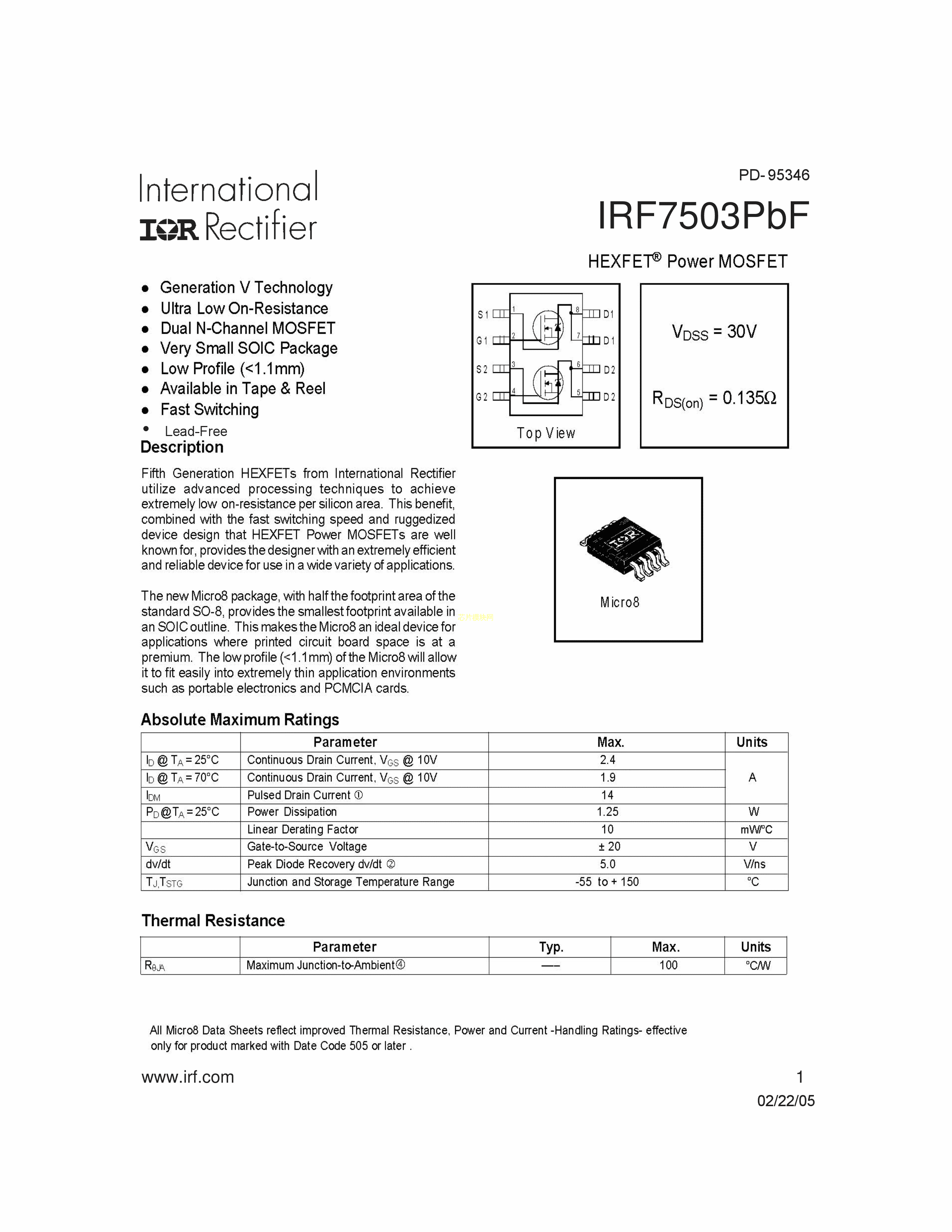 IRF7503TRPBF数据手册Micro8封装Infineon(英飞凌)PDF规格书,中英文下载