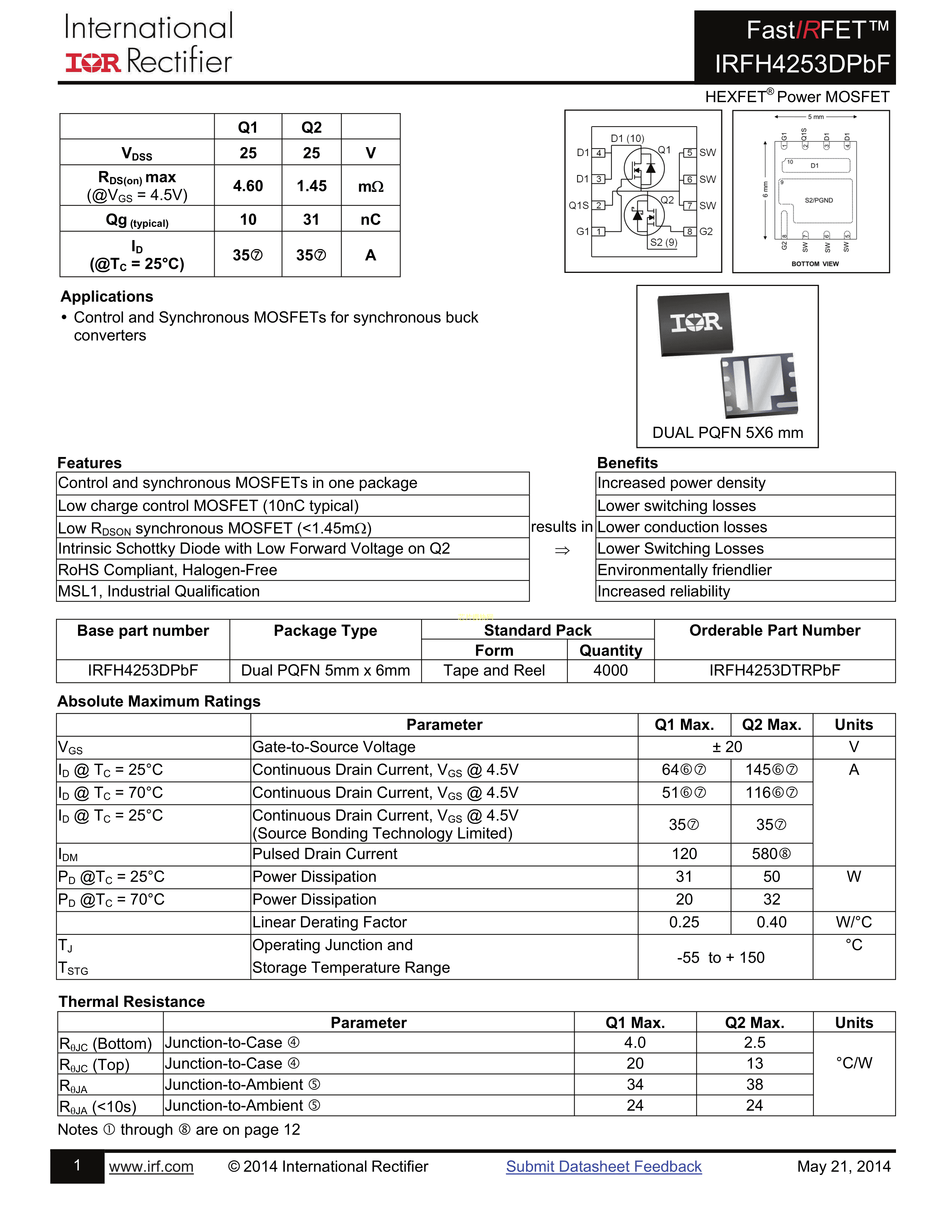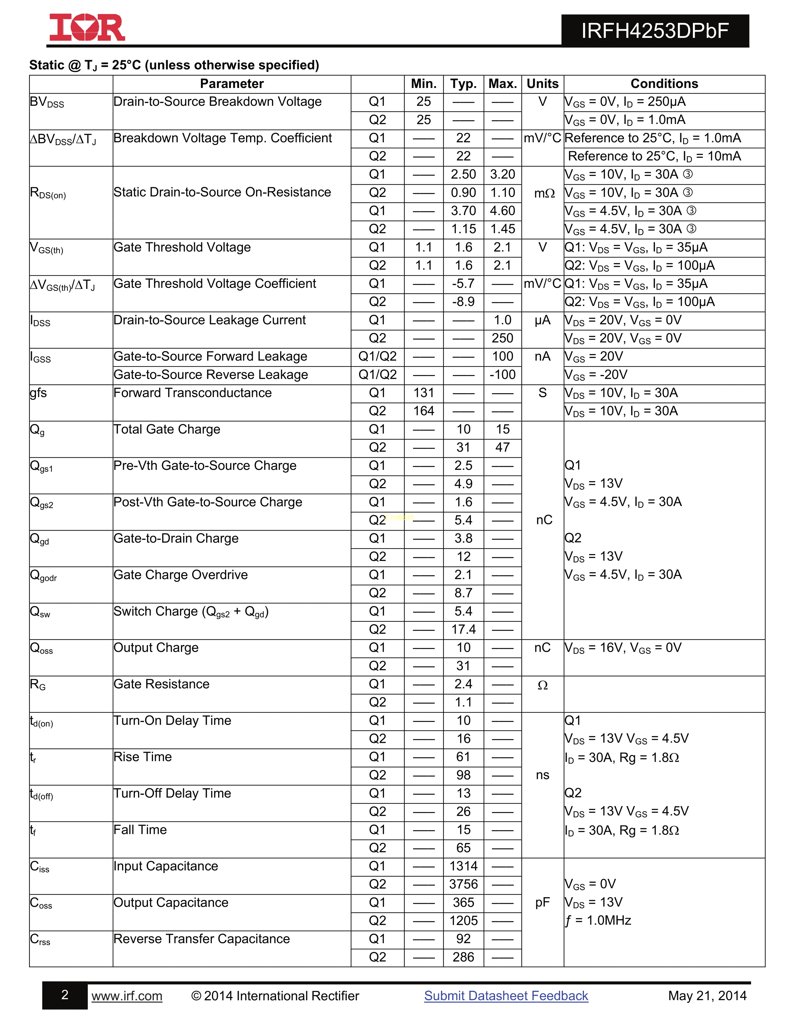 IRFH4253DTRPBF数据手册PG-TISON-8封装Infineon(英飞凌)PDF规格书,