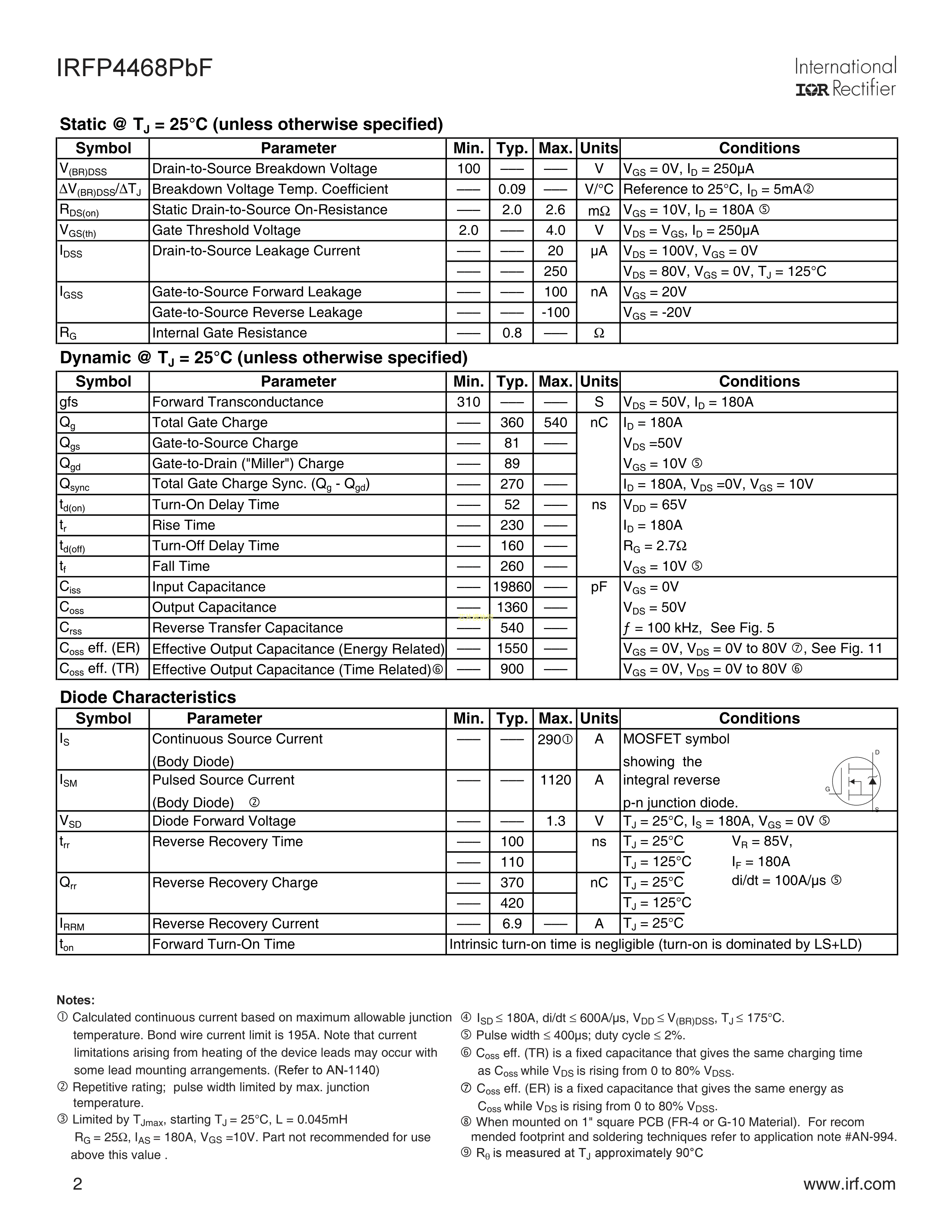 IRFP4468PBF数据手册TO-247AC封装Infineon(英飞凌)PDF规格书,中英文下载
